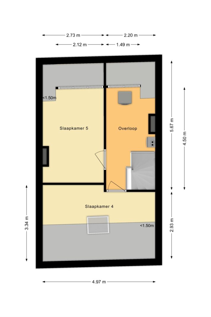 Via een vaste trap is de zolder te bereiken. Bij de overloop bevindt zich de cv-installatie en aansluiting voor de wasmachine/droger. De overloop geeft toegang tot 2 goed bemeten slaapkamers, de kamer aan de voorzijde is voorzien van een dakraam en de kamer aan de achterzijde is voorzien van een dakkapel.