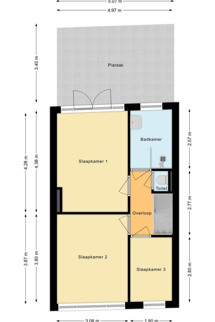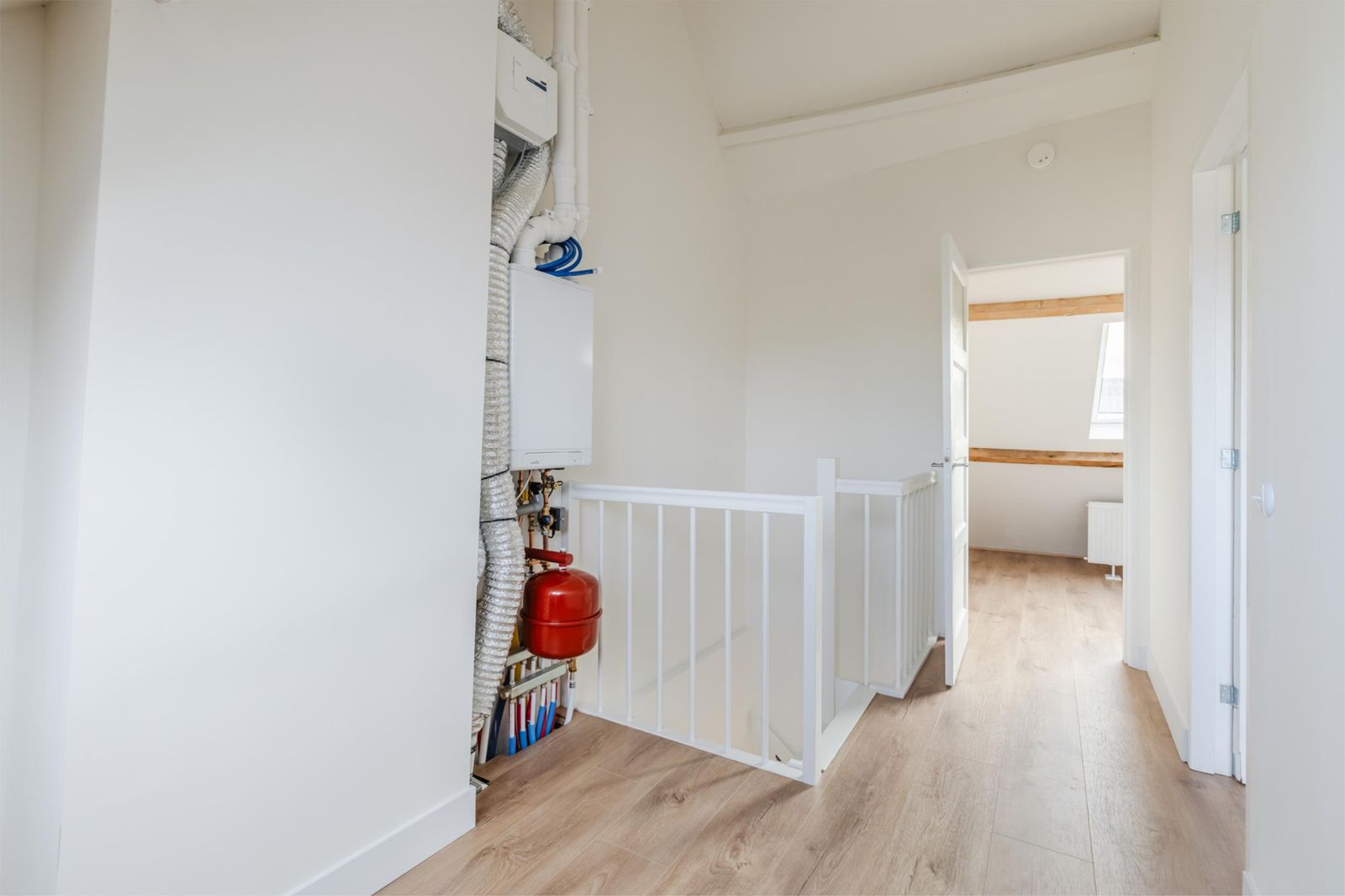 De overloop geeft toegang tot 3 goed bemeten slaapkamers, de badkamer, separaat toilet en trapopgang naar de zolder. De badkamer is voorzien van een ruime inloopdouche, wastafel en elektrische vloerverwarming.