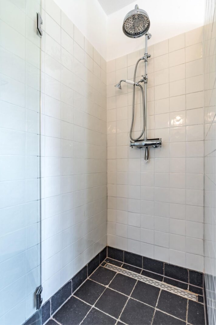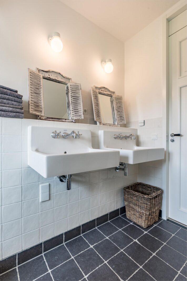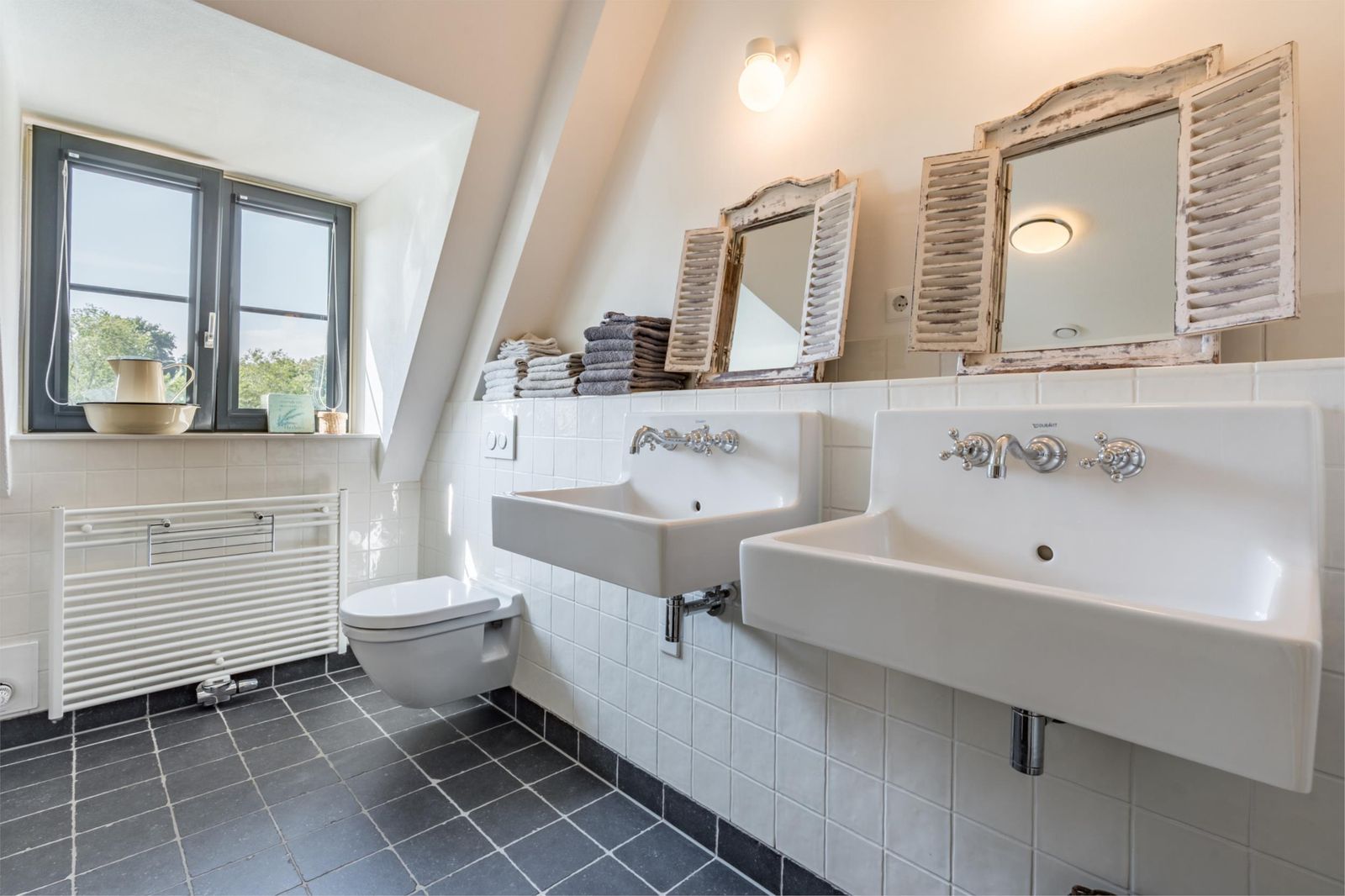 De badkamer is voorzien van een toilet, bad, twee wastafels en een doucheruimte met regendouche. Er is mechanische ventilatie aanwezig, maar er kan ook nog een raam worden opengezet (draaikiepraam).