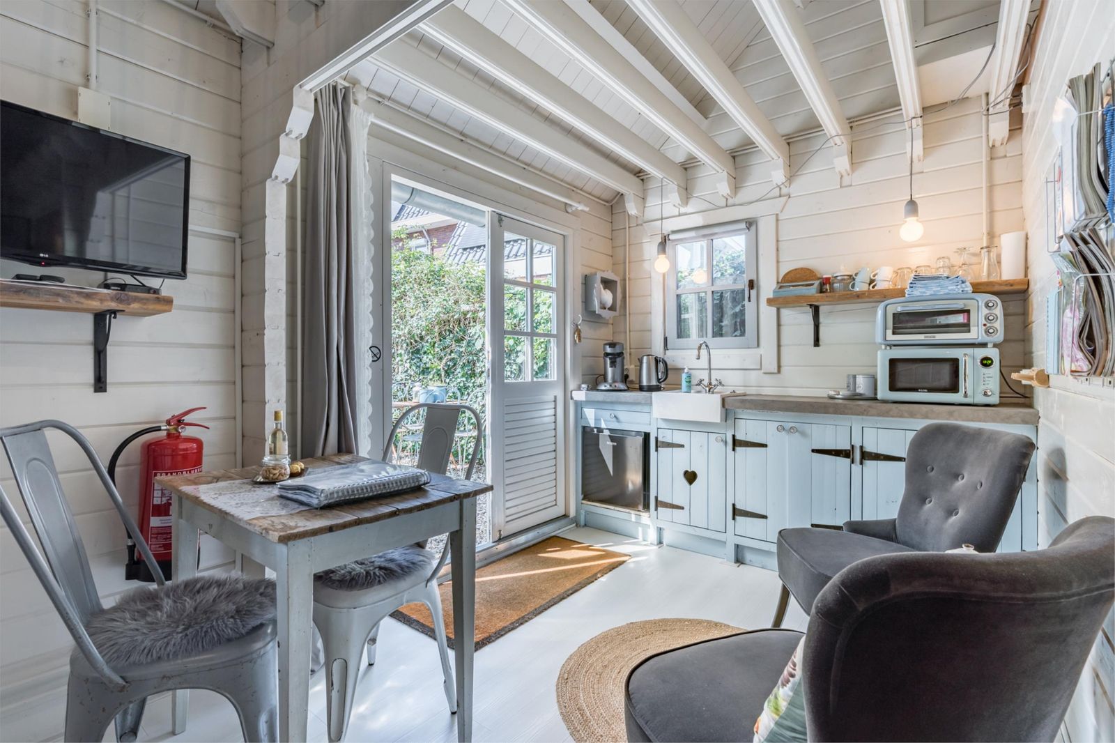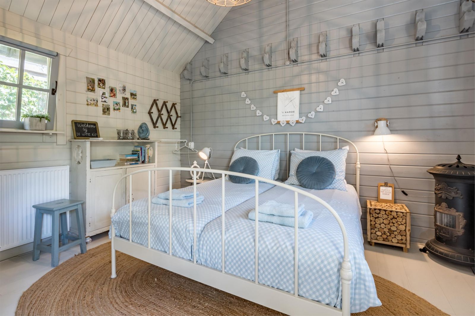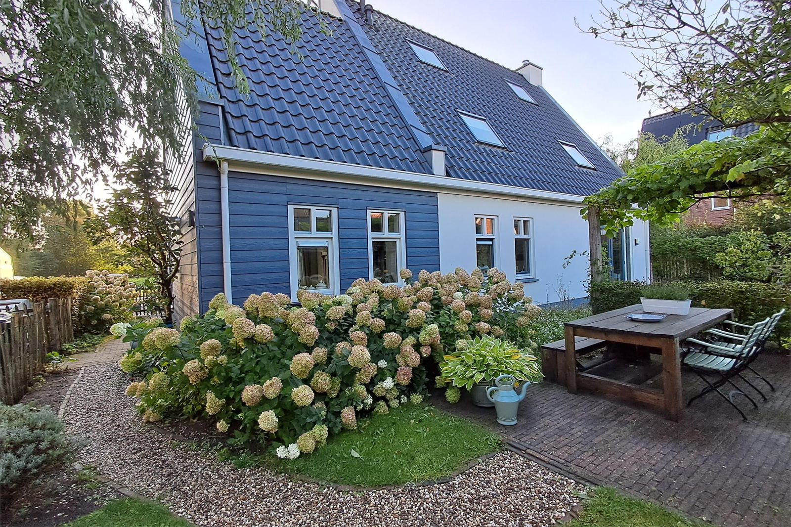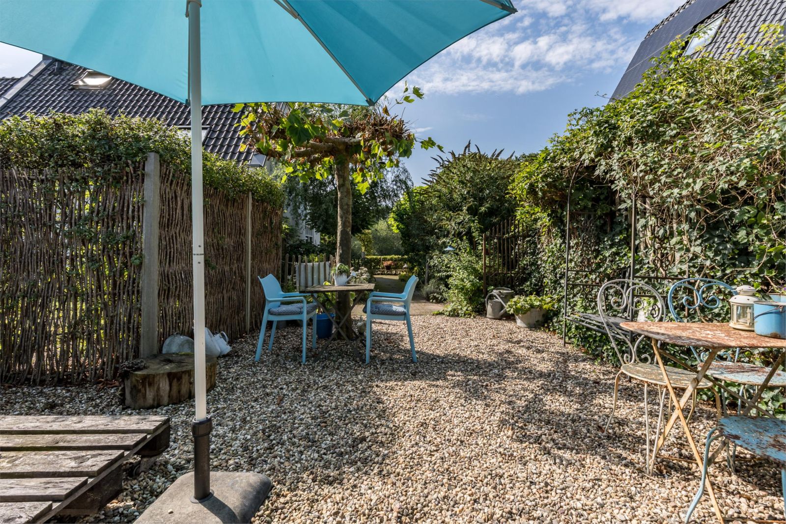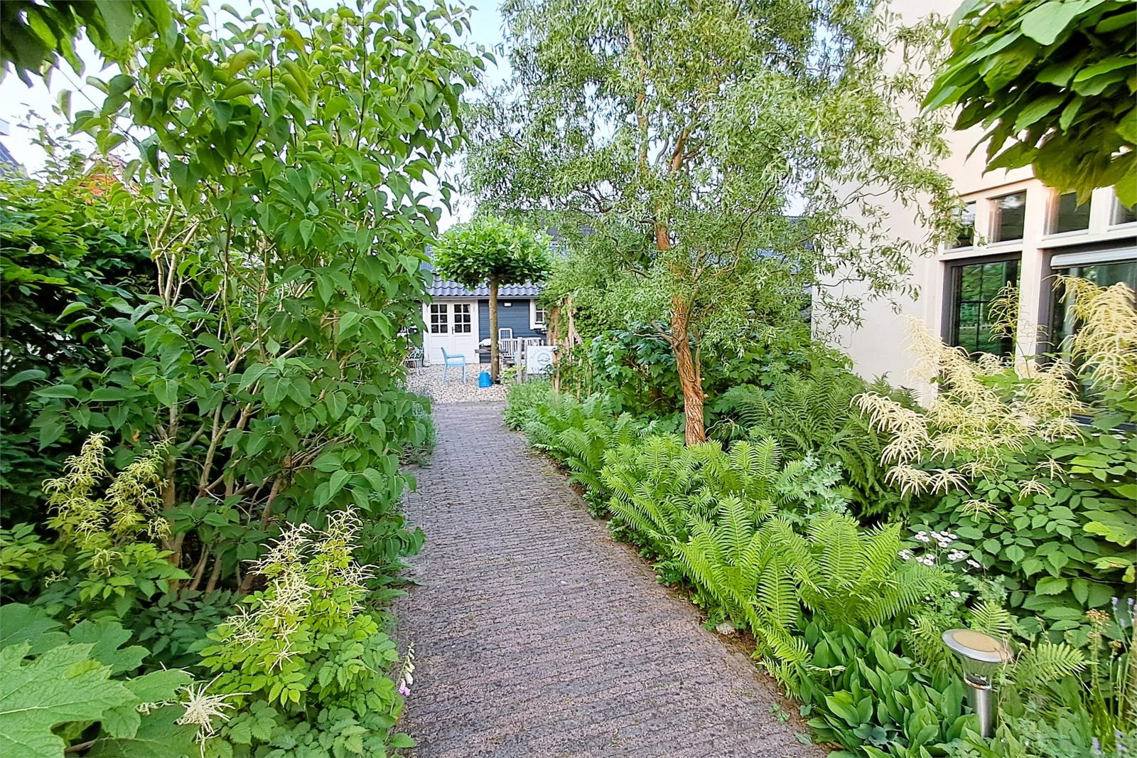 De gehele achtertuin is sfeervol opgezet met tuinkamers en heeft borders met vele bloemen. Dit zorgt voor vele vlinders, bijen, vogels en zelfs een egeltje in de tuin. De kippetjes scharrelen heerlijk rond tussen de appelbomen en daar staat ook hun kippenhok.