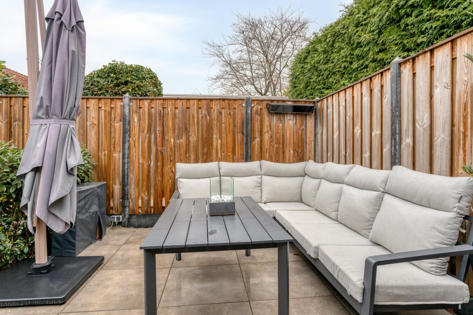 De achtertuin is gelegen op het oosten en heeft een goede bezonning tot in de avonduren. Het is een gezellige, onderhoudsvriendelijke tuin met nieuwe bestrating, kunstgras en houten schuttingen. De tuin is bereikbaar via een vrije achterom.