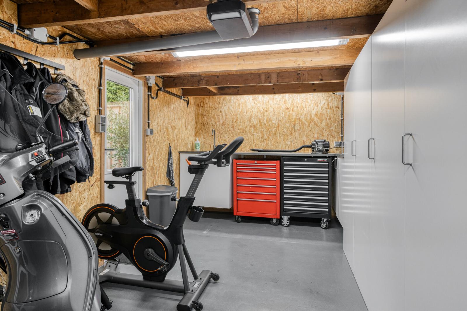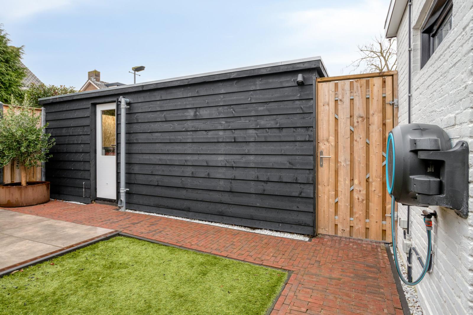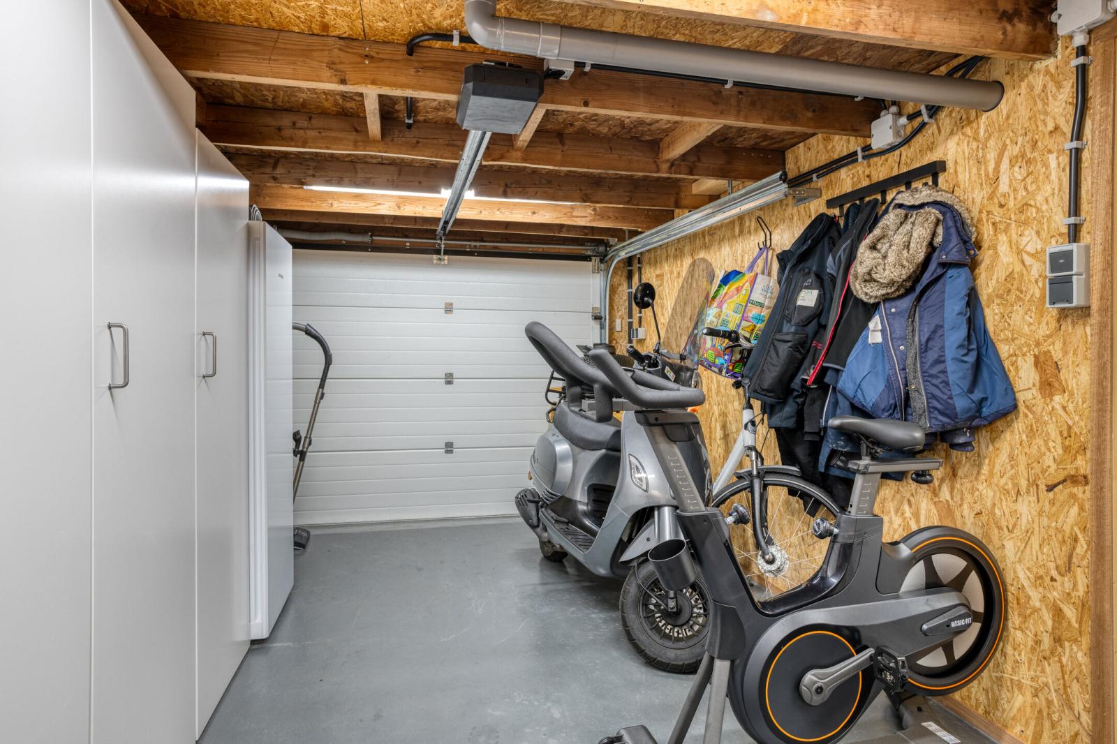 De garage is opgebouwd uit betonelementen en is recent zowel aan de binnen- als aan de buitenzijde voorzien van een nieuwe aftimmering. In 2023 is de dakbedekking vervangen en is er een elektrische deur geplaatst. Ook is een wateraansluiting aanwezig.
