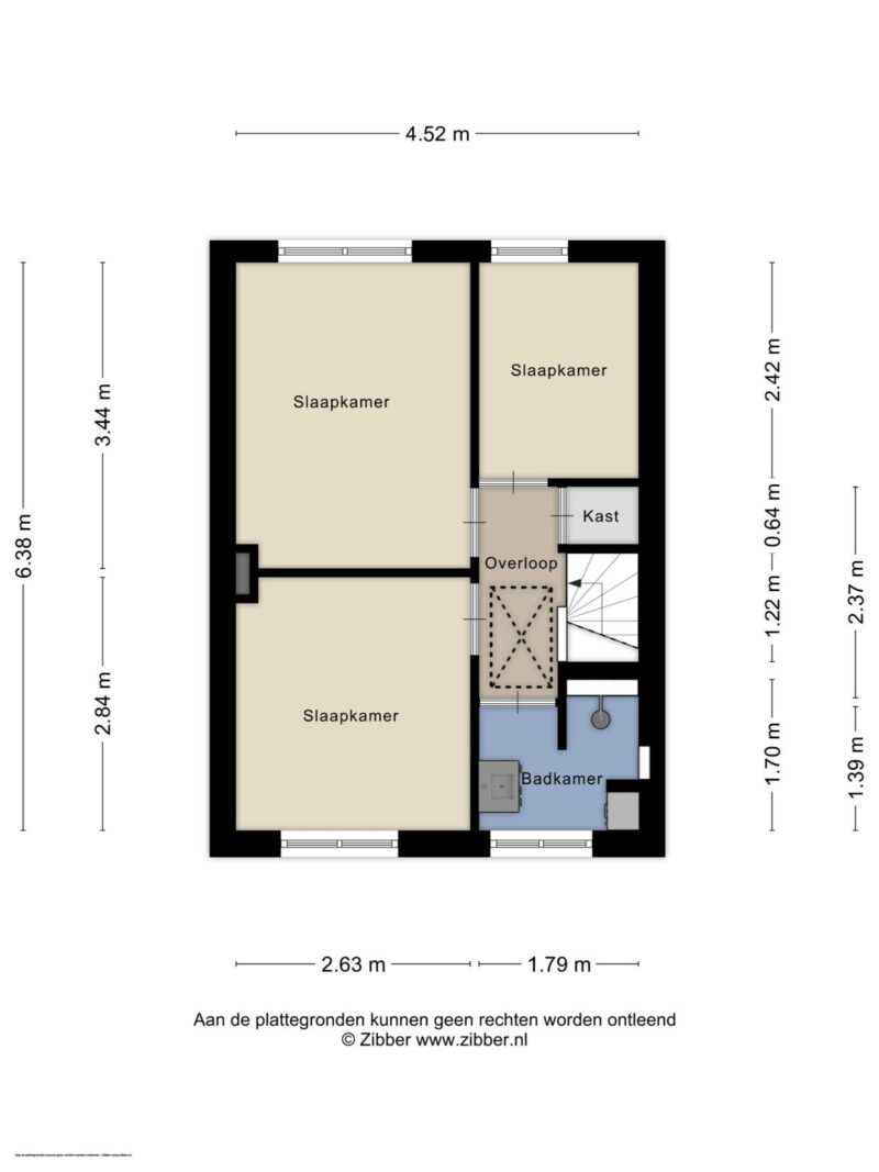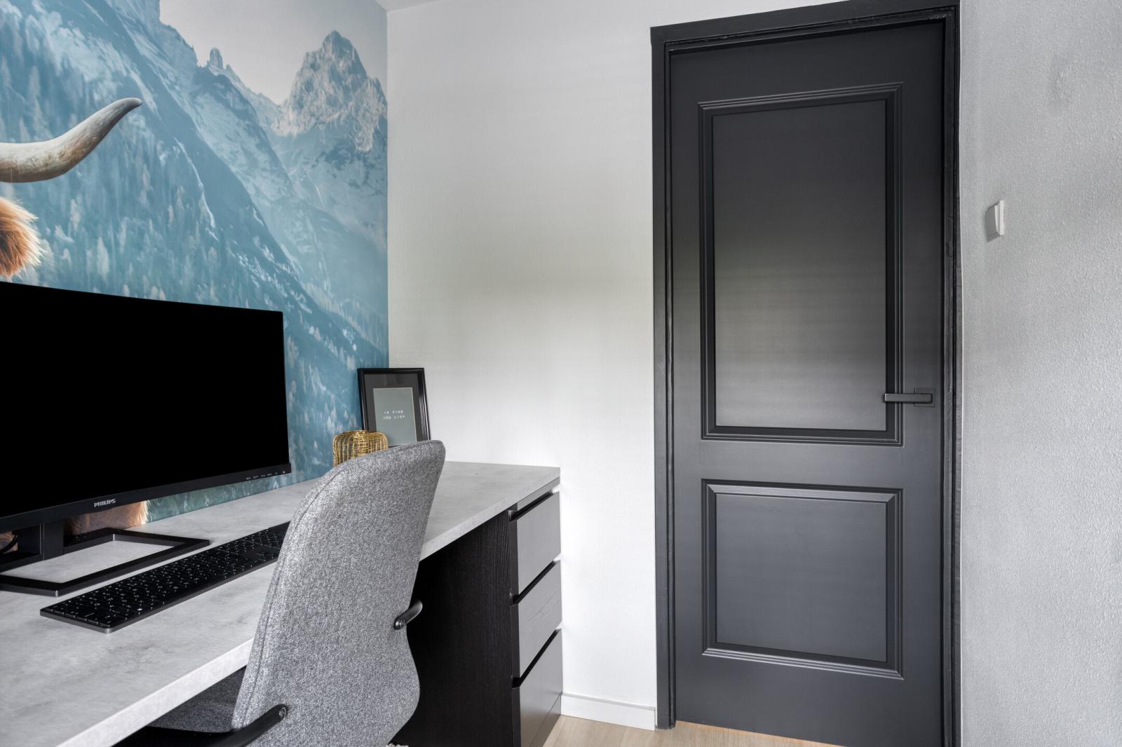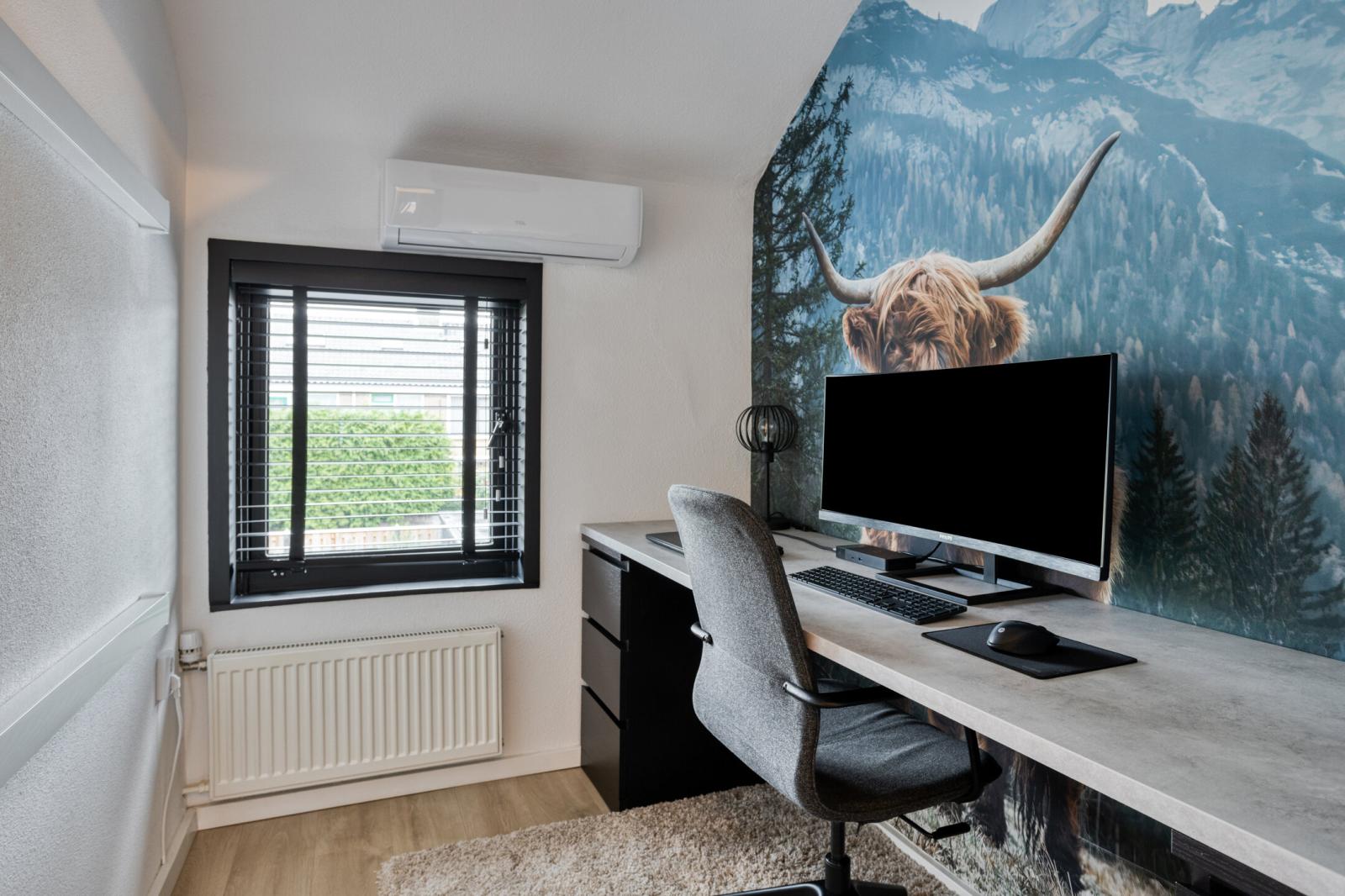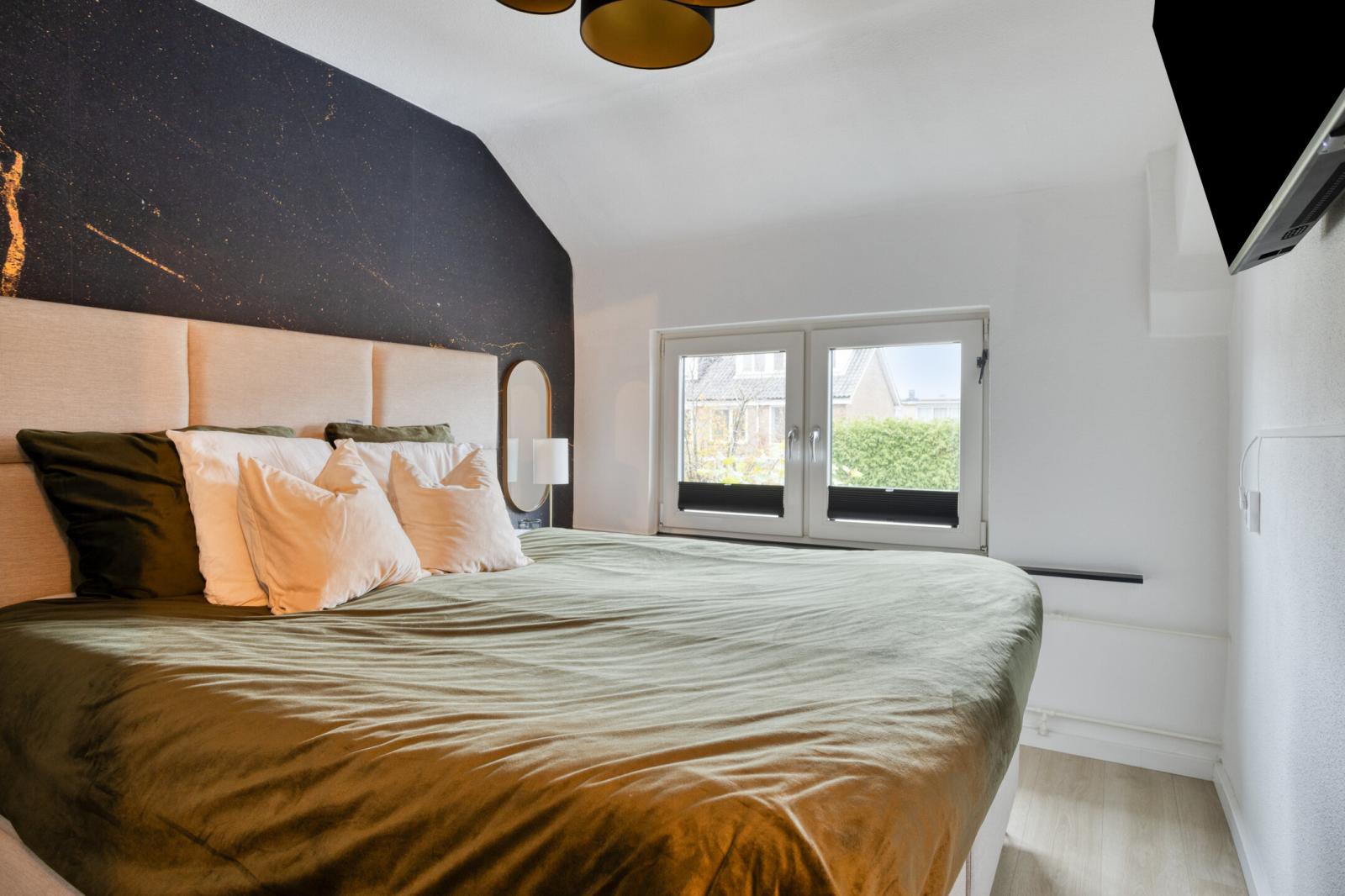 Op de eerste verdieping bevinden zich drie slaapkamers van respectievelijk ca. 3,44 × 2,63 m, 2,84 × 2,63 m en 2,40 × 1,80 m. De kleinste slaapkamer is voorzien van airconditioning met voldoende capaciteit voor de gehele verdieping. De compacte badkamer is in 2023 gerealiseerd en heeft een luxe uitstraling met een wastafelmeubel met spiegelkast en een regendouche met inbouwkraan. Op de overloop bevindt zich een vaste kast.