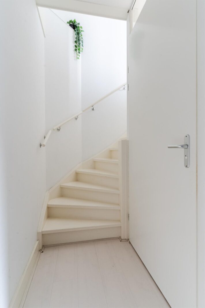 Bij binnenkomst op de begane grond stap je de entree binnen; via een trap bereik je de eerste verdieping. Daar tref je de lichte woonkamer met open keuken aan. Grote ramen zorgen voor veel lichtinval, wat de ruimte ruim en uitnodigend laat aanvoelen. De keuken is functioneel en modern van opzet.