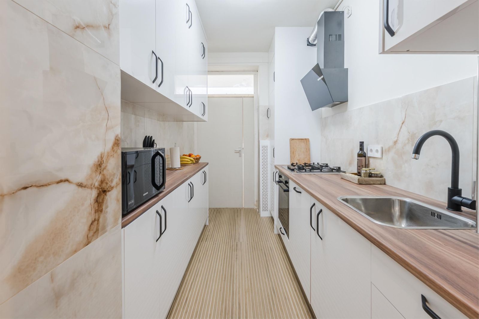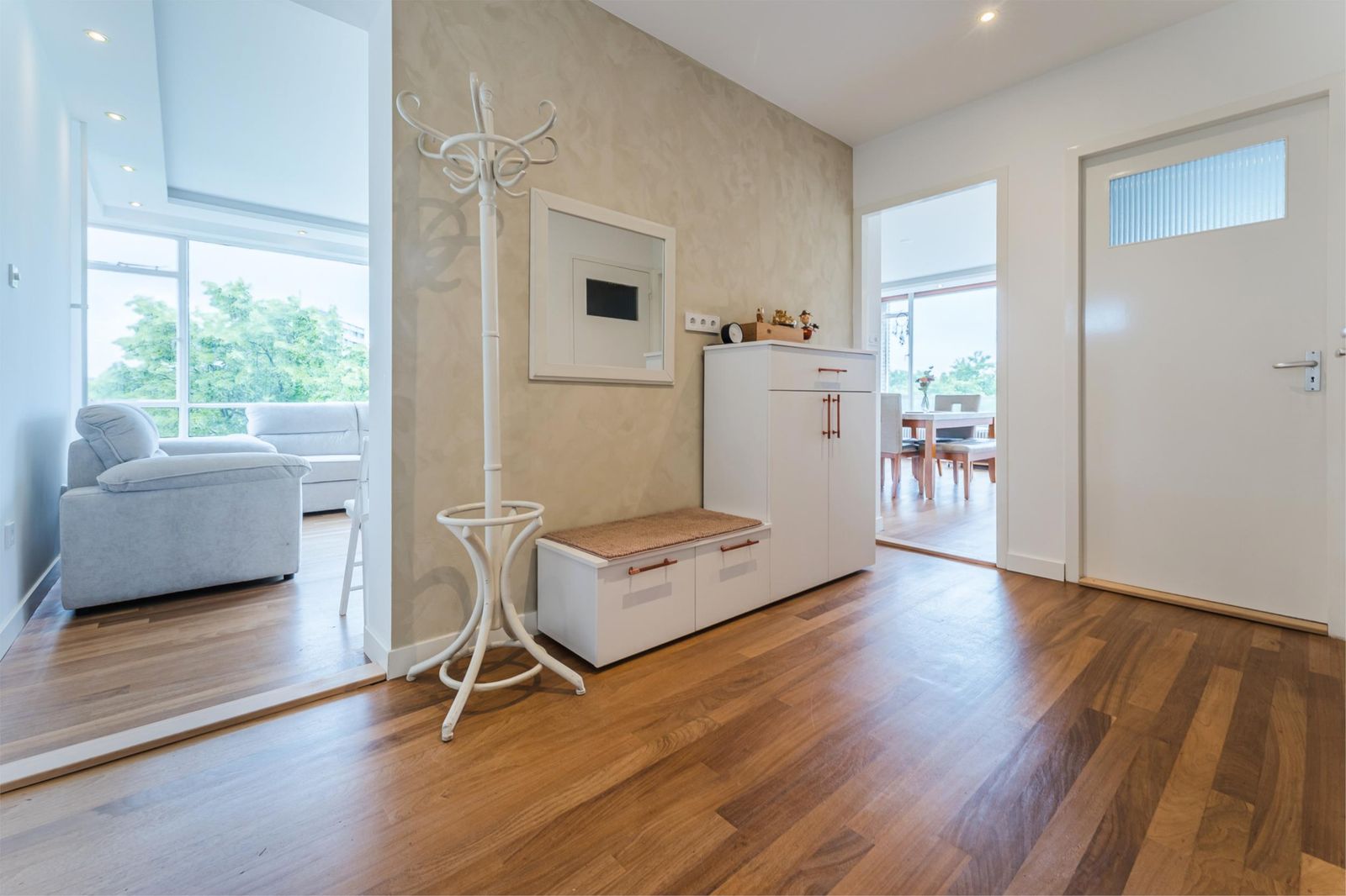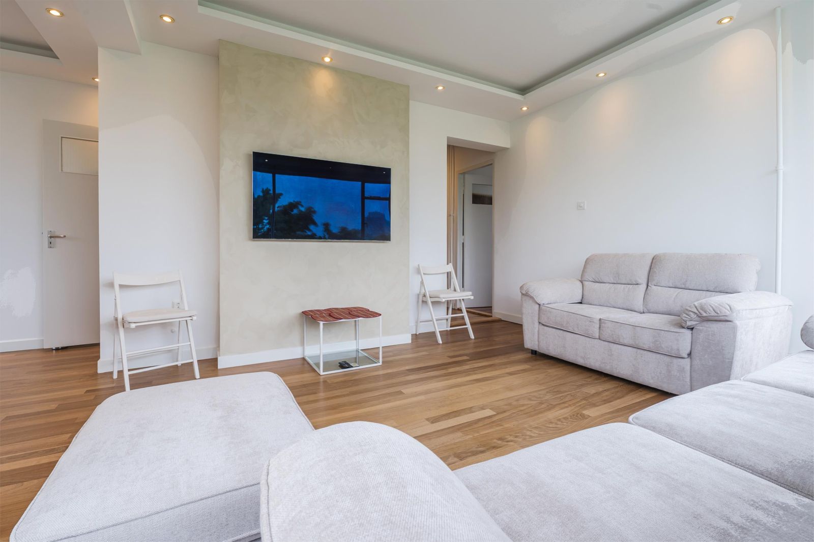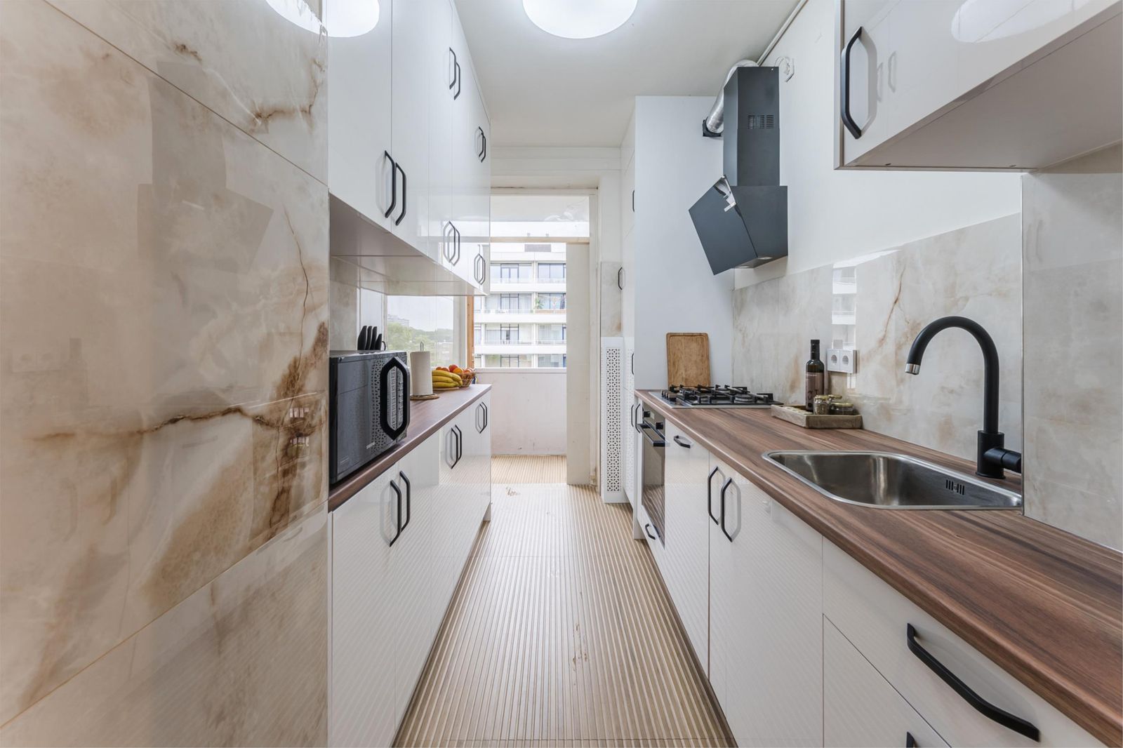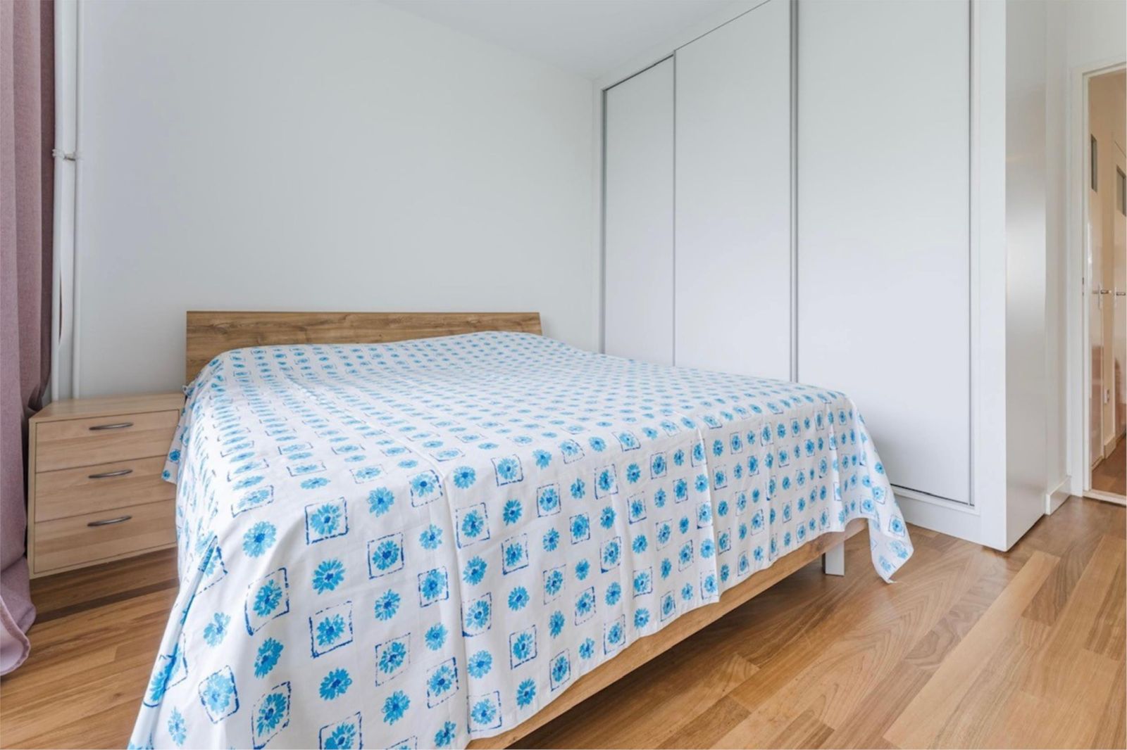 Apartment entrance, spacious hall, toilet, very light and spacious living room. The home has a beautiful wooden floor. Modern white kitchen with appliances, adjacent to a small balcony. Balcony can be closed (permit is present), which makes the kitchen bigger.