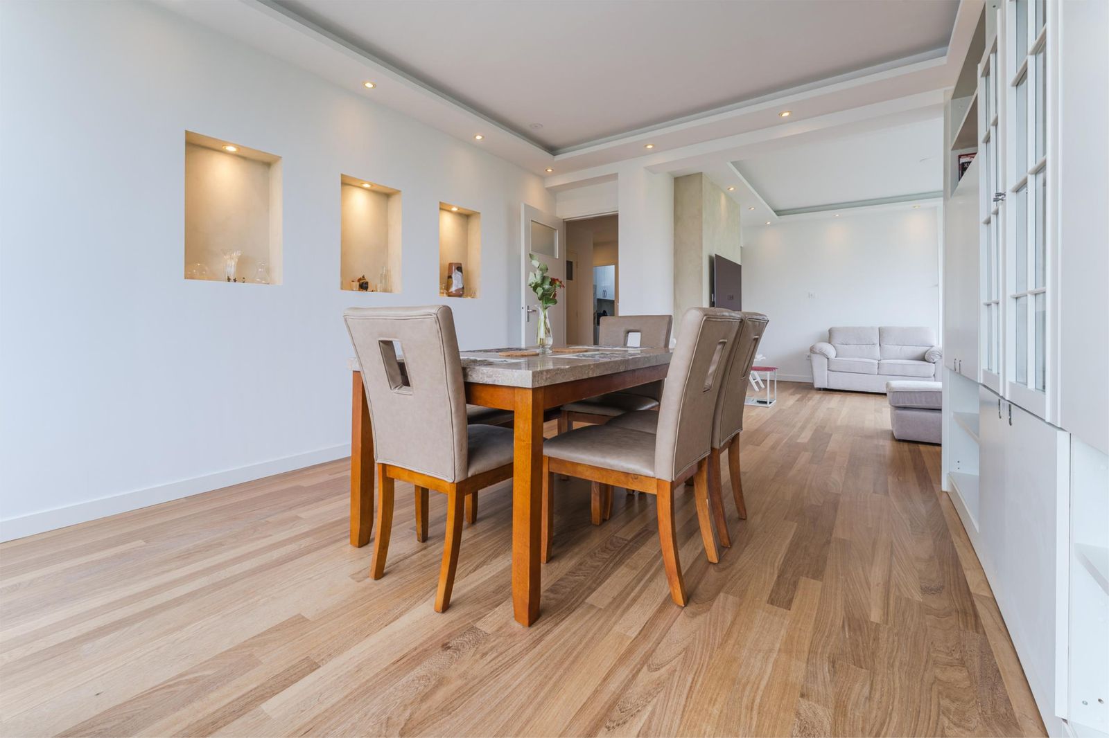 Woonkamer met brede erker uitkijkend over het groen. De seizoenen en het weer kan je hier direct beleven. De woonkamer heeft een ruime eetkamer. Een moderne badkamer met grote inloopdouche en wastafel is bereikbaar vanaf de hal, evenals een toilet.