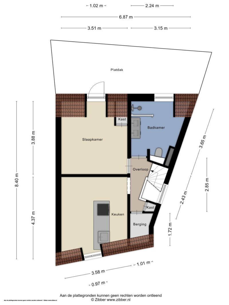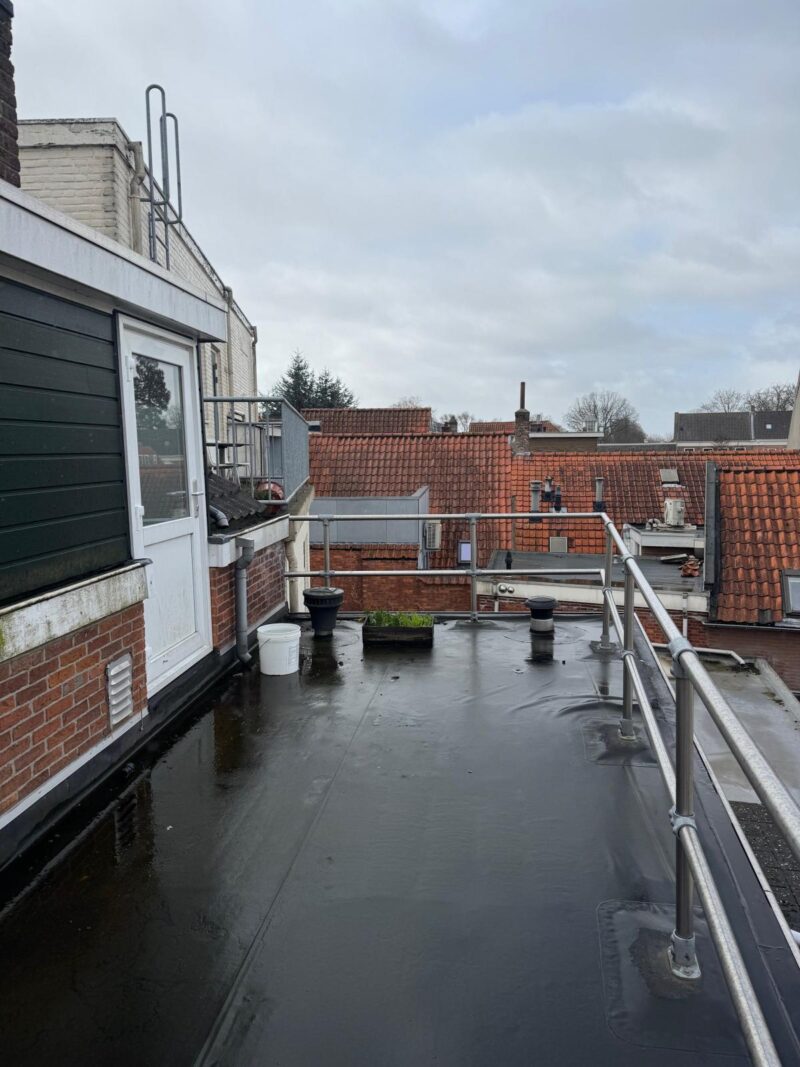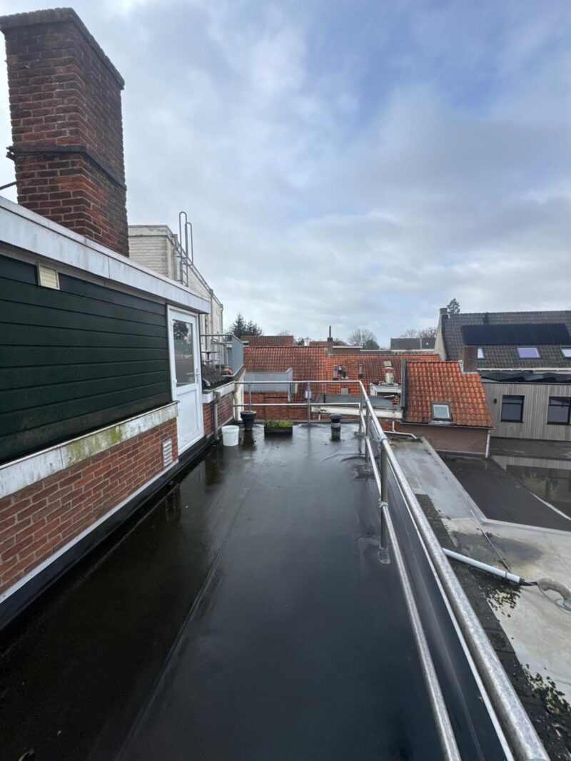 Aan de achterzijde is een royaal dakterras van ca. 16m2 waar het heerlijk toeven is.