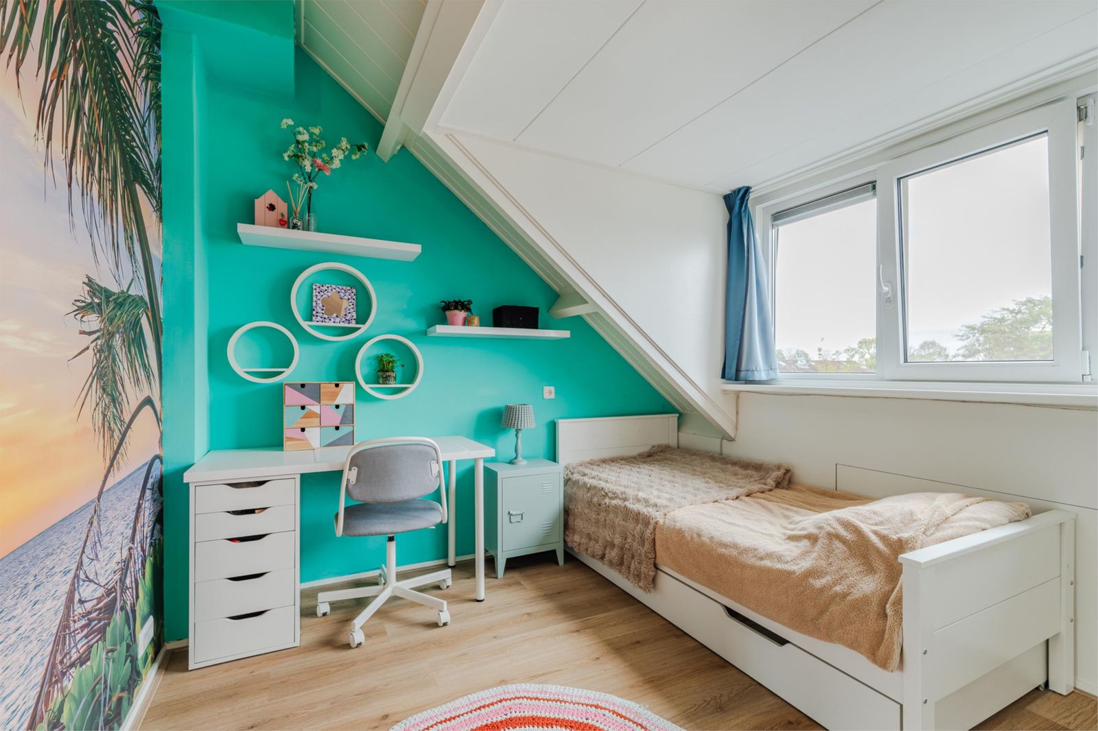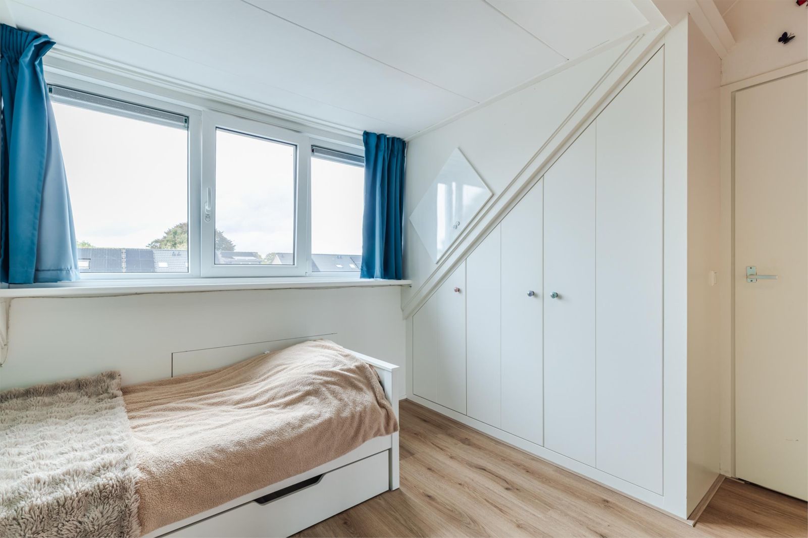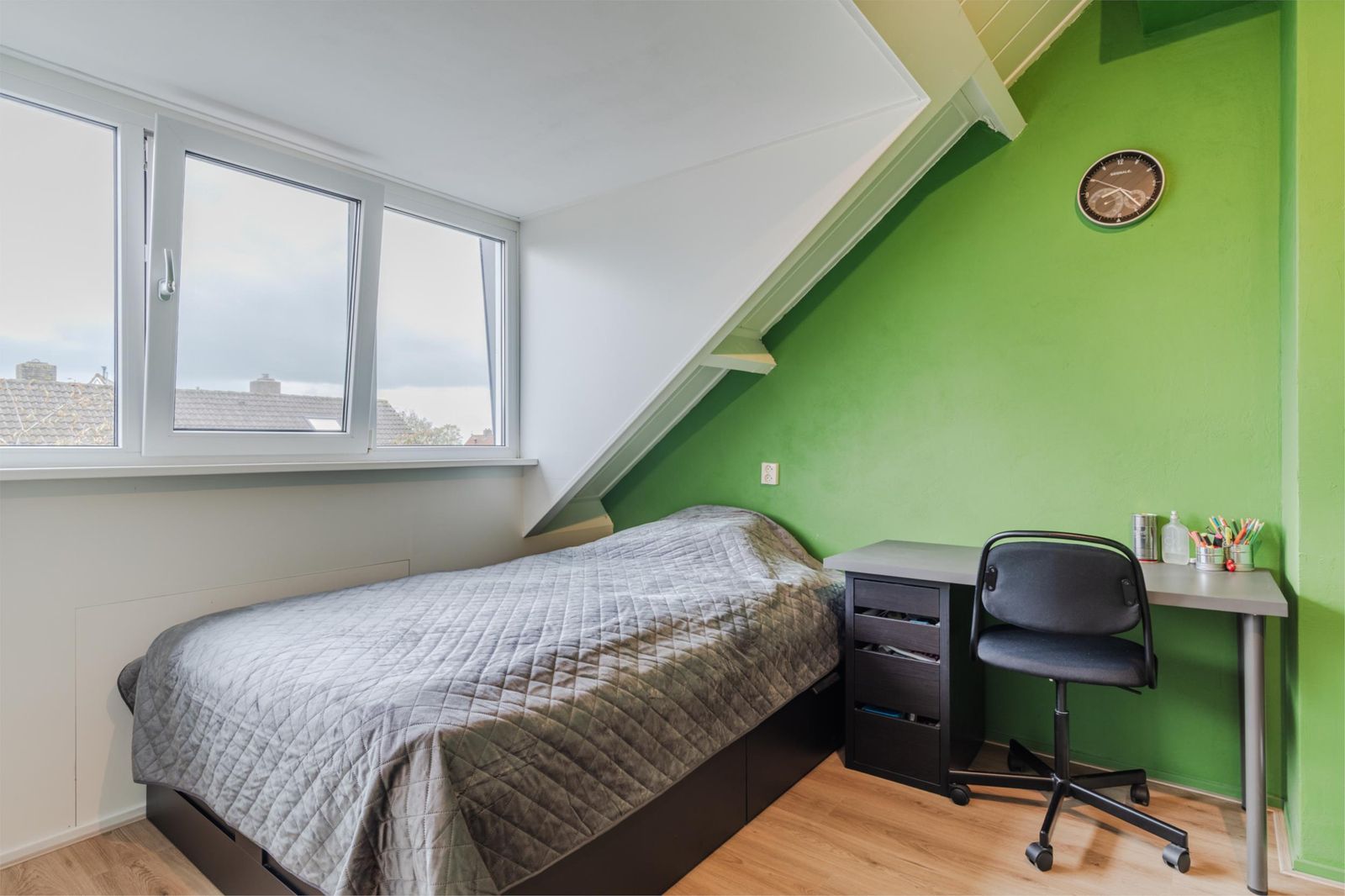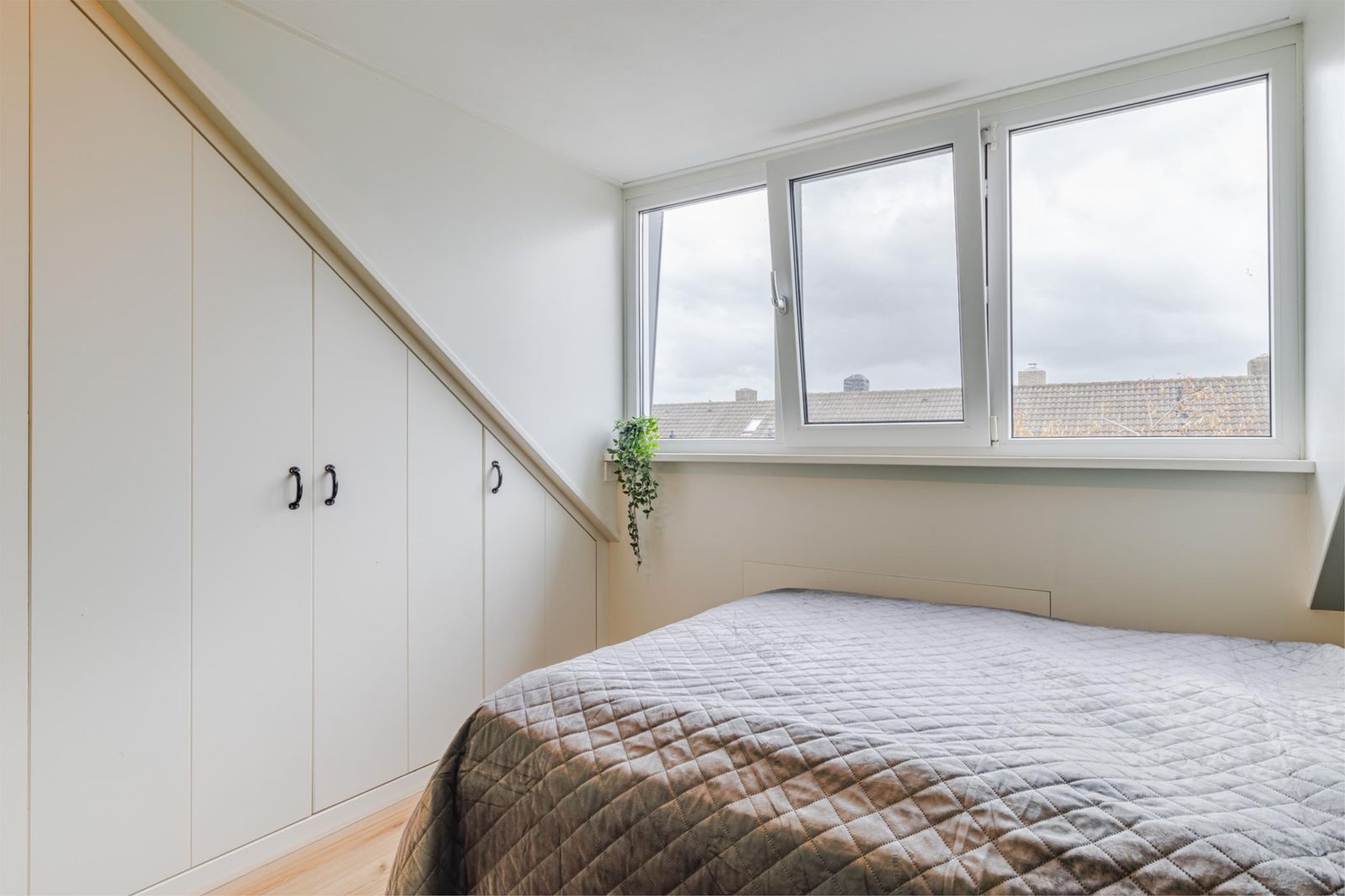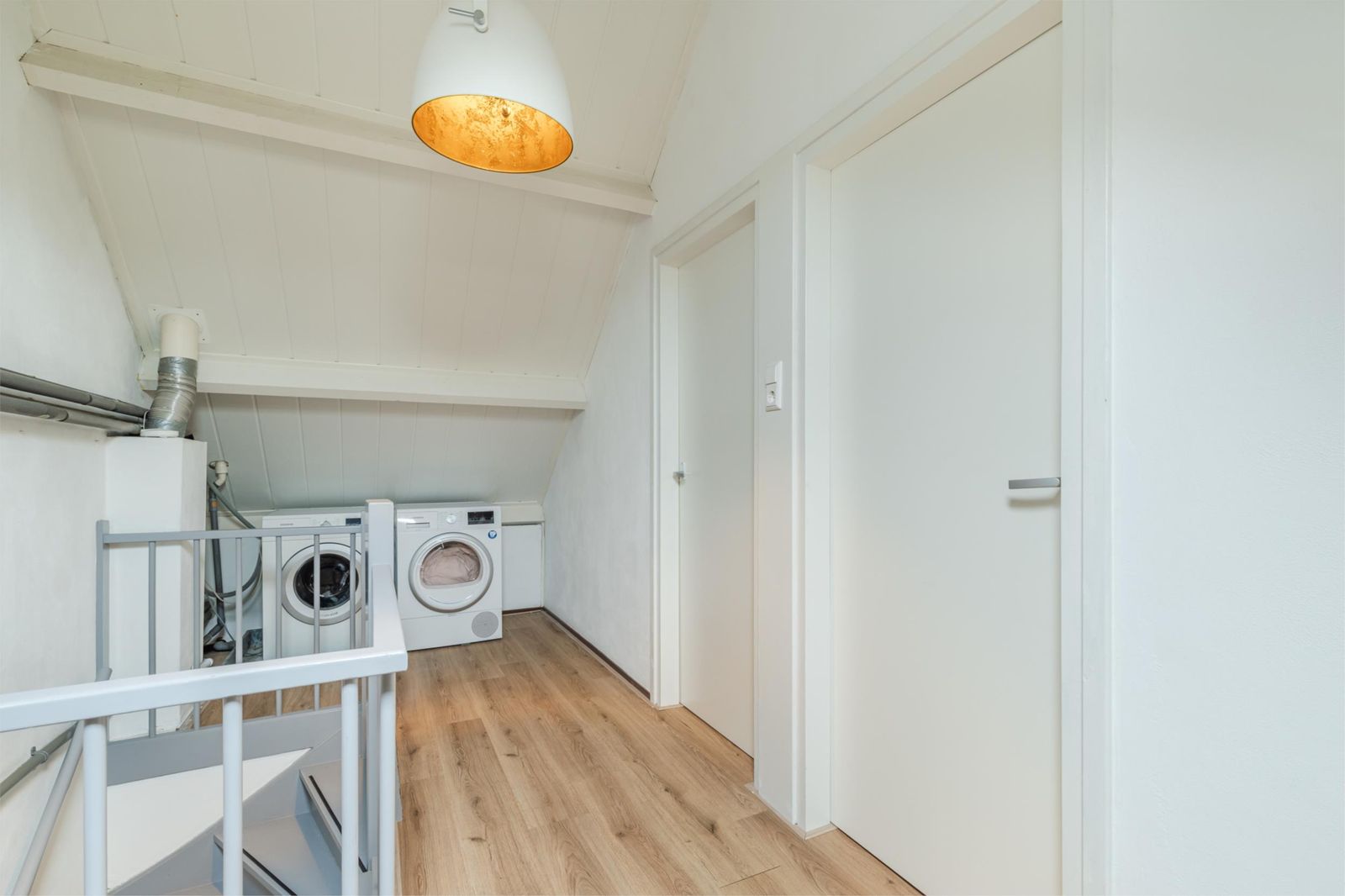 Overloop, bergruimte en twee slaapkamers met extra ruimte en daglicht dankzij de dakkapellen aan de voor- en achterzijde. Ideaal als werk-, speel- of logeerkamers. De gehele zolder is voorzien van een eikenlook laminaatvloer zonder drempels.