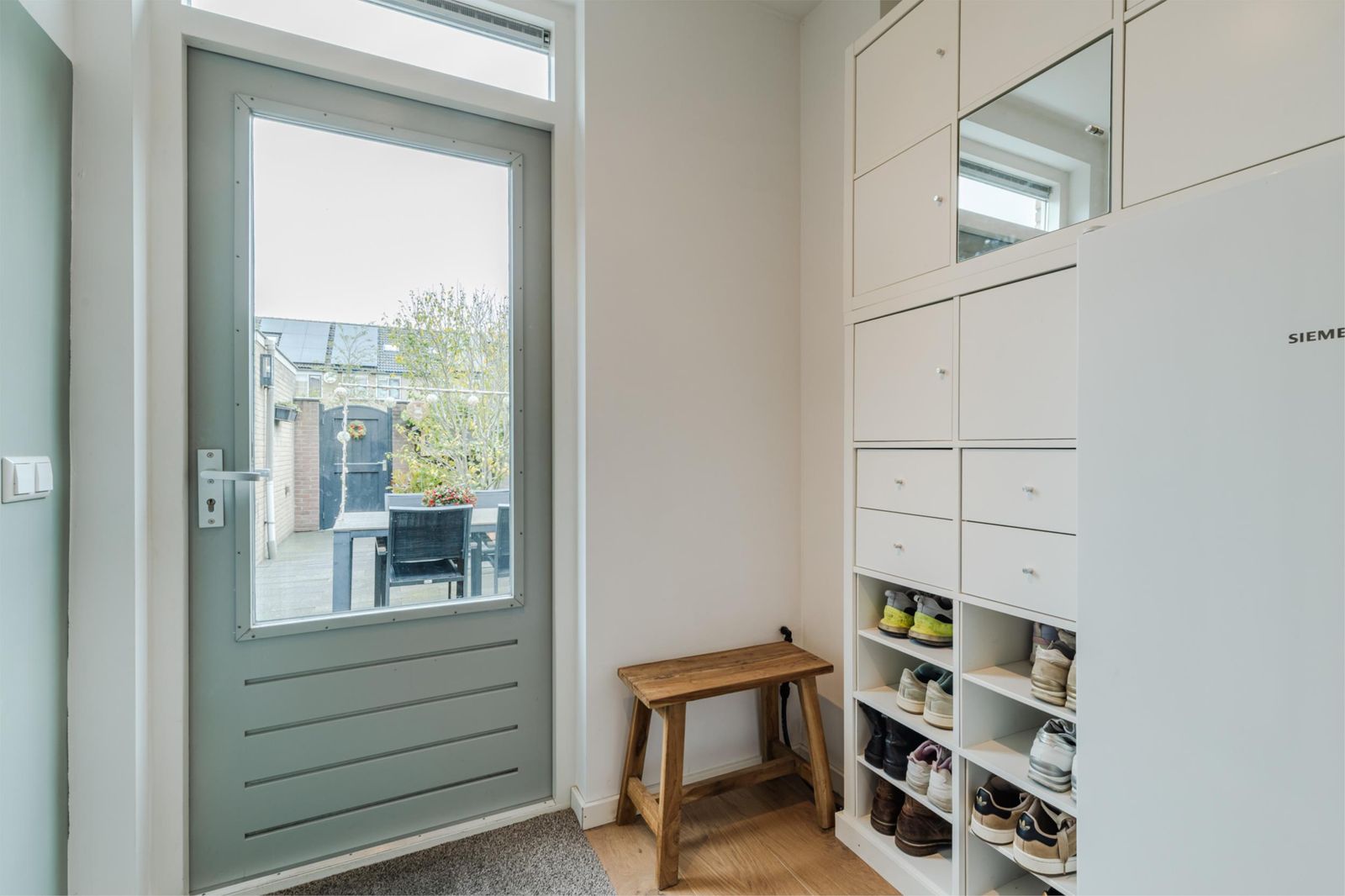 Verzorgde voor- en achtertuin met terras. De achtertuin beschikt over een stenen berging en achterom. Direct achter de tuin bevinden zich openbare parkeerplaatsen, waardoor je altijd in de buurt kunt parkeren.