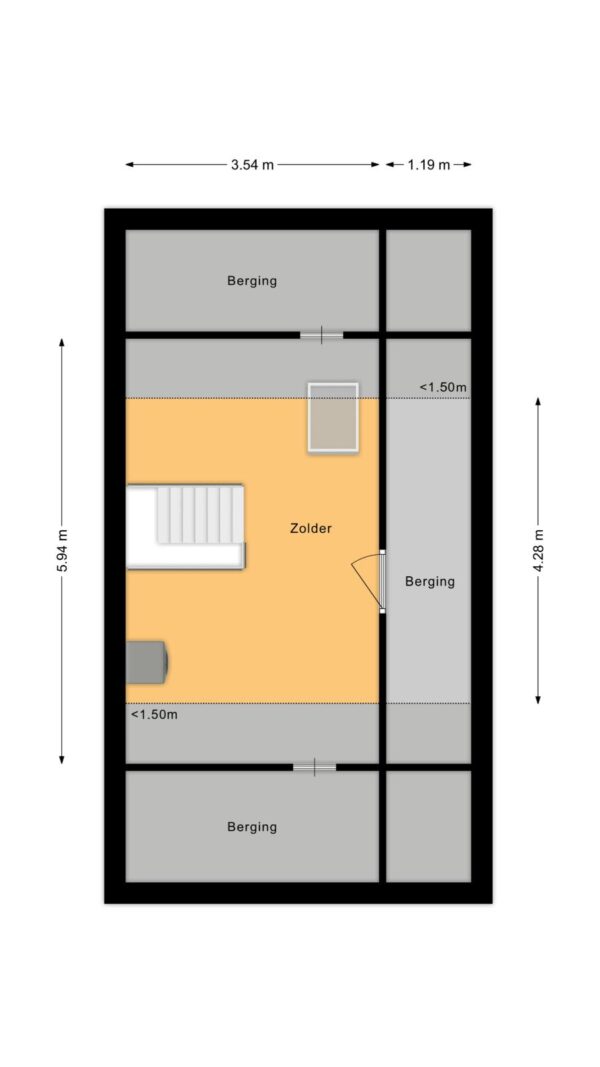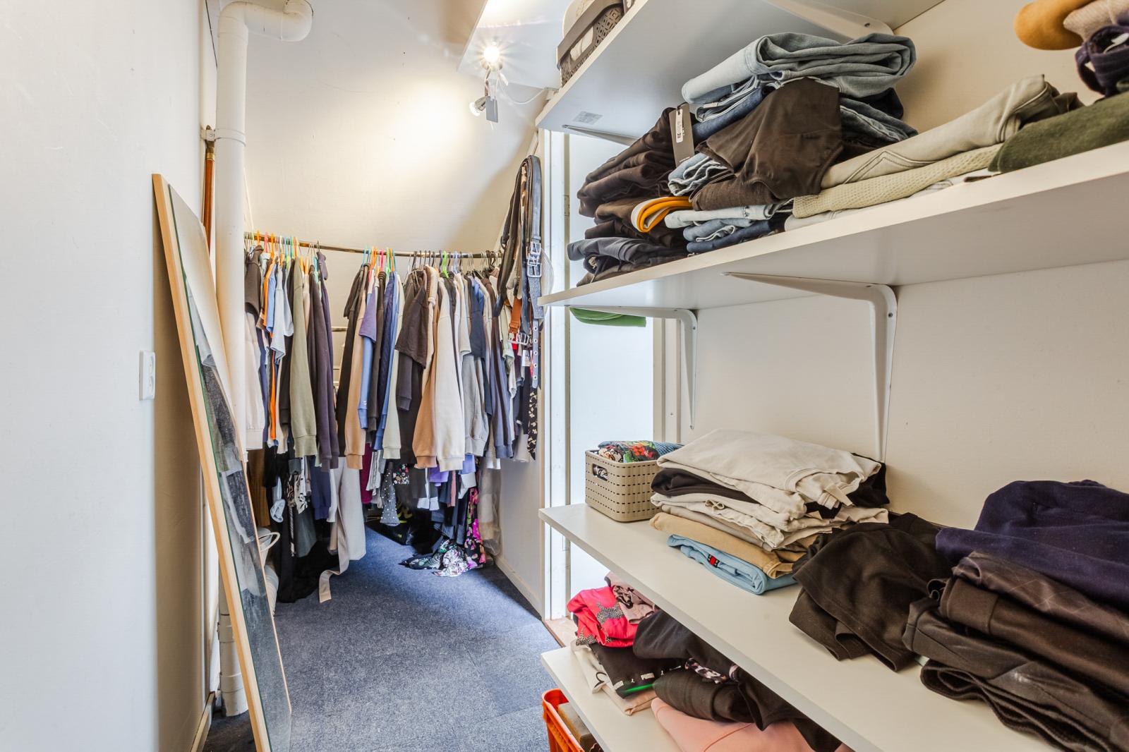 Middels een vaste trap te bereiken zolderverdieping met dakraam en een extra vaste inloopkast. Tevens vindt u op deze verdieping de elektrische boiler, wasmachine en droger aansluiting en de mechanische ventilatie unit.