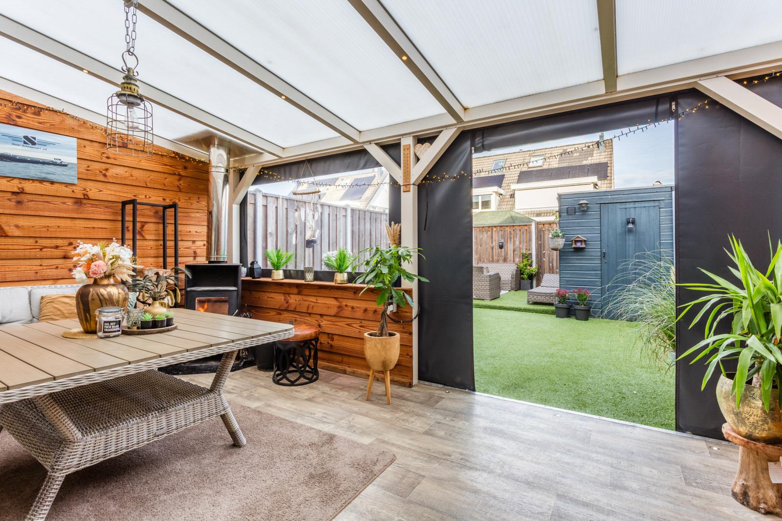 De geweldige buitenruimte is een echte eye-catcher. U heeft de beschikking over een afsluitbare, verwarmde veranda met een sfeervolle houtkachel, waardoor u ook in de koudere maanden kunt genieten van uw tuin. De verzorgde achtertuin is perfect voor zonnige dagen en biedt voldoende ruimte voor een speelplaats voor de kinderen of een gezellige barbecue met vrienden.