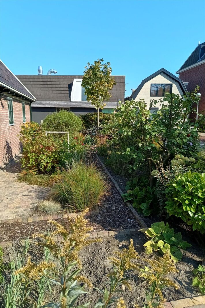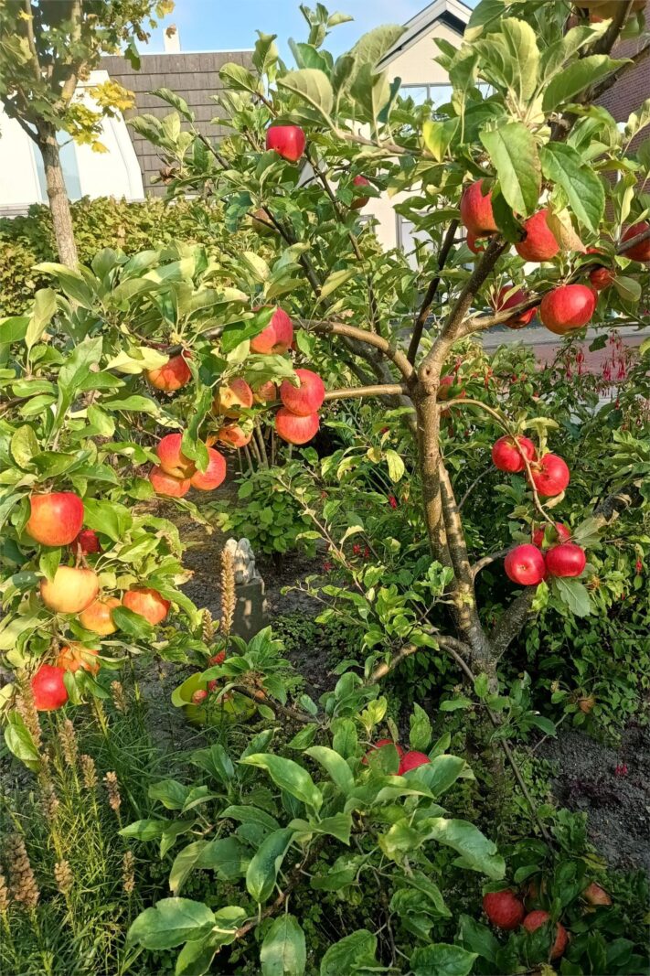 De beplanting bestaat uit fruitbomen (appel, peer, vijg, pruim), struiken (diverse bessen), winterharde planten en bloemen. Er is tevens een kruidencirkel aangelegd met diverse kruiden (o.a. munt).