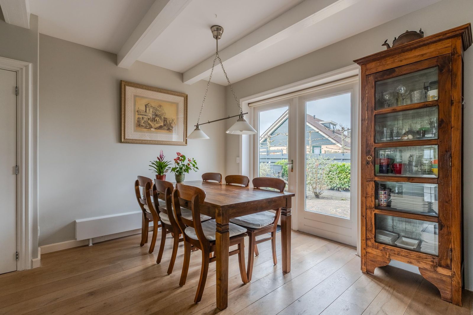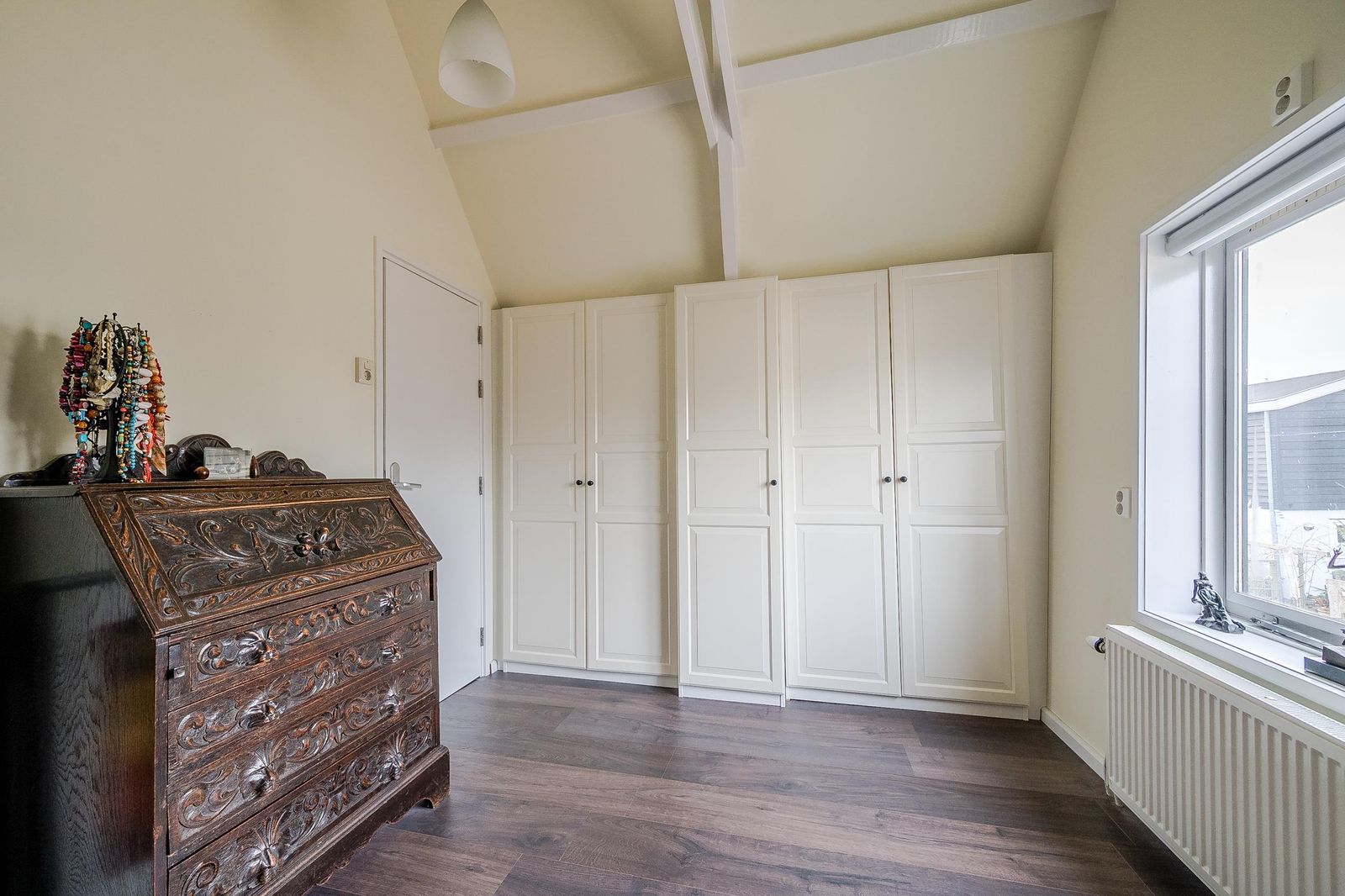 De eetkeuken biedt naast de aanrecht opstelling plaats voor een grote eettafel, een meterkast en dubbele openslaande deuren naar de achtertuin. Een grote inloopkast voorzien van praktische legplanken en een extra deur naar de achtertuin maken het geheel compleet.