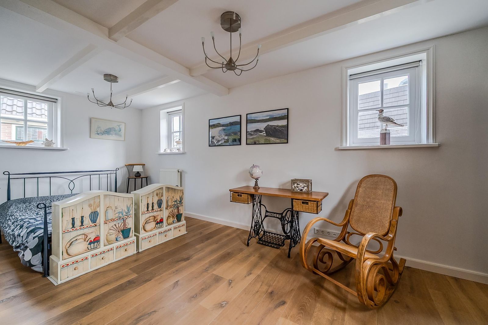 Het kleine raampje in de woonkamer herinnert aan de bedstee die hier ooit heeft gestaan. De originele bedstee uit dit huis is nog te bewonderen in het Regthuis Museum in het aangrenzende dorp Oudkarspel.