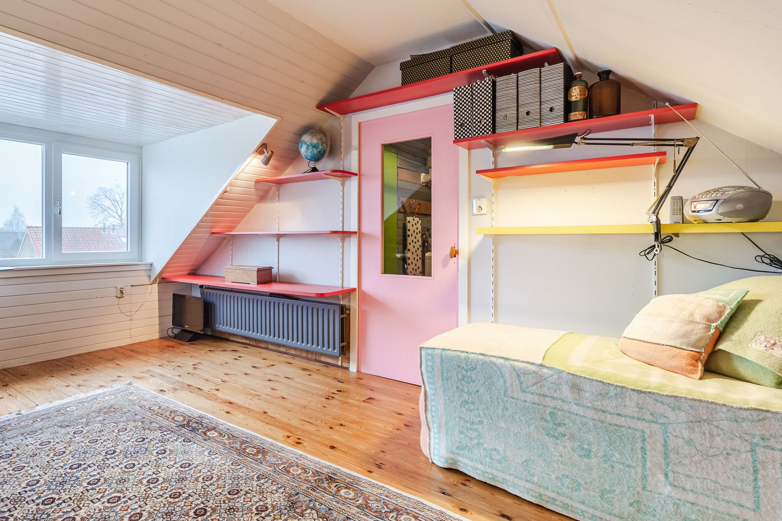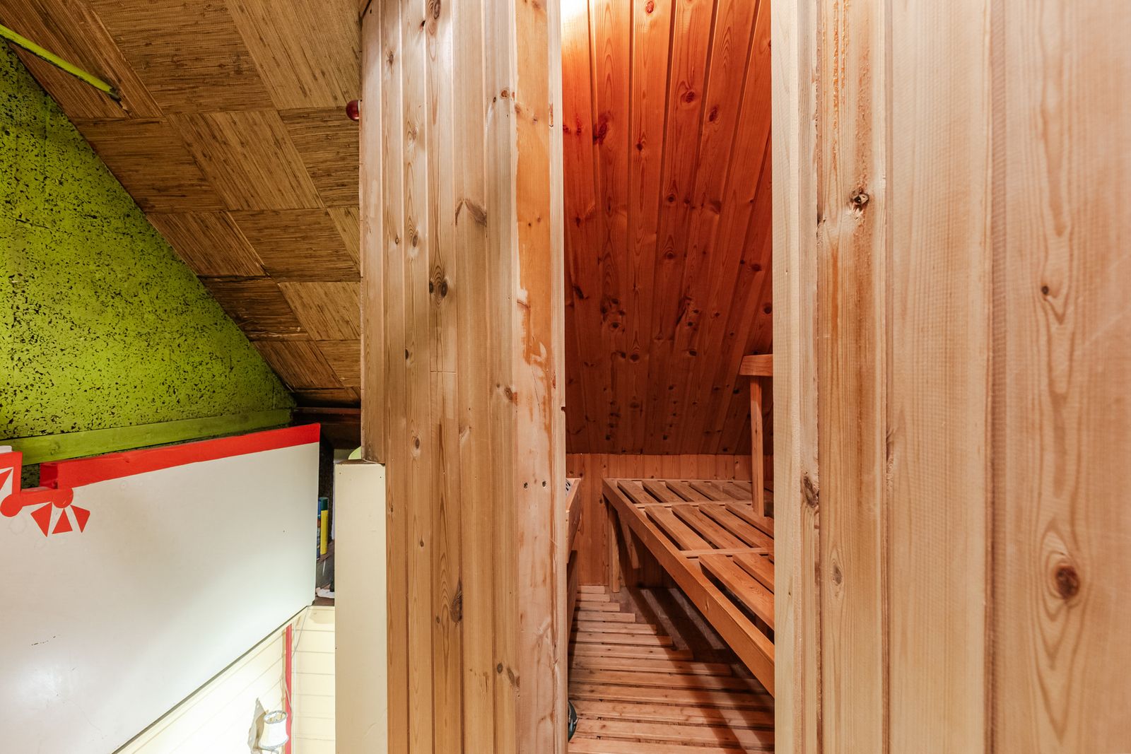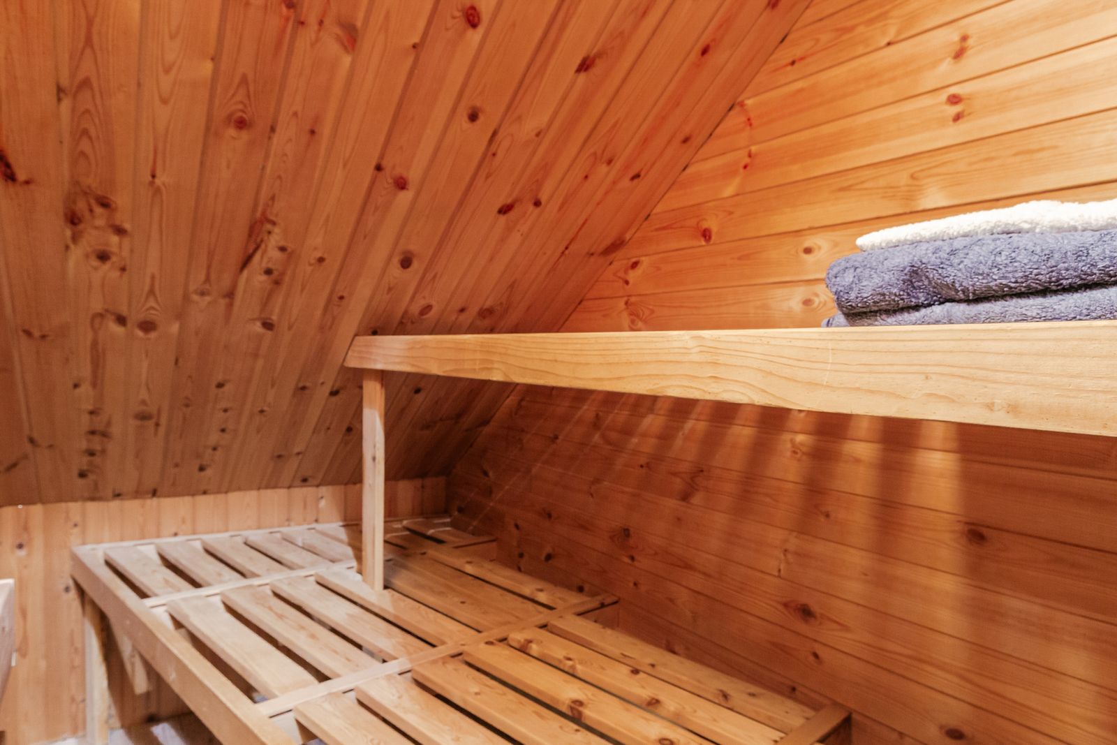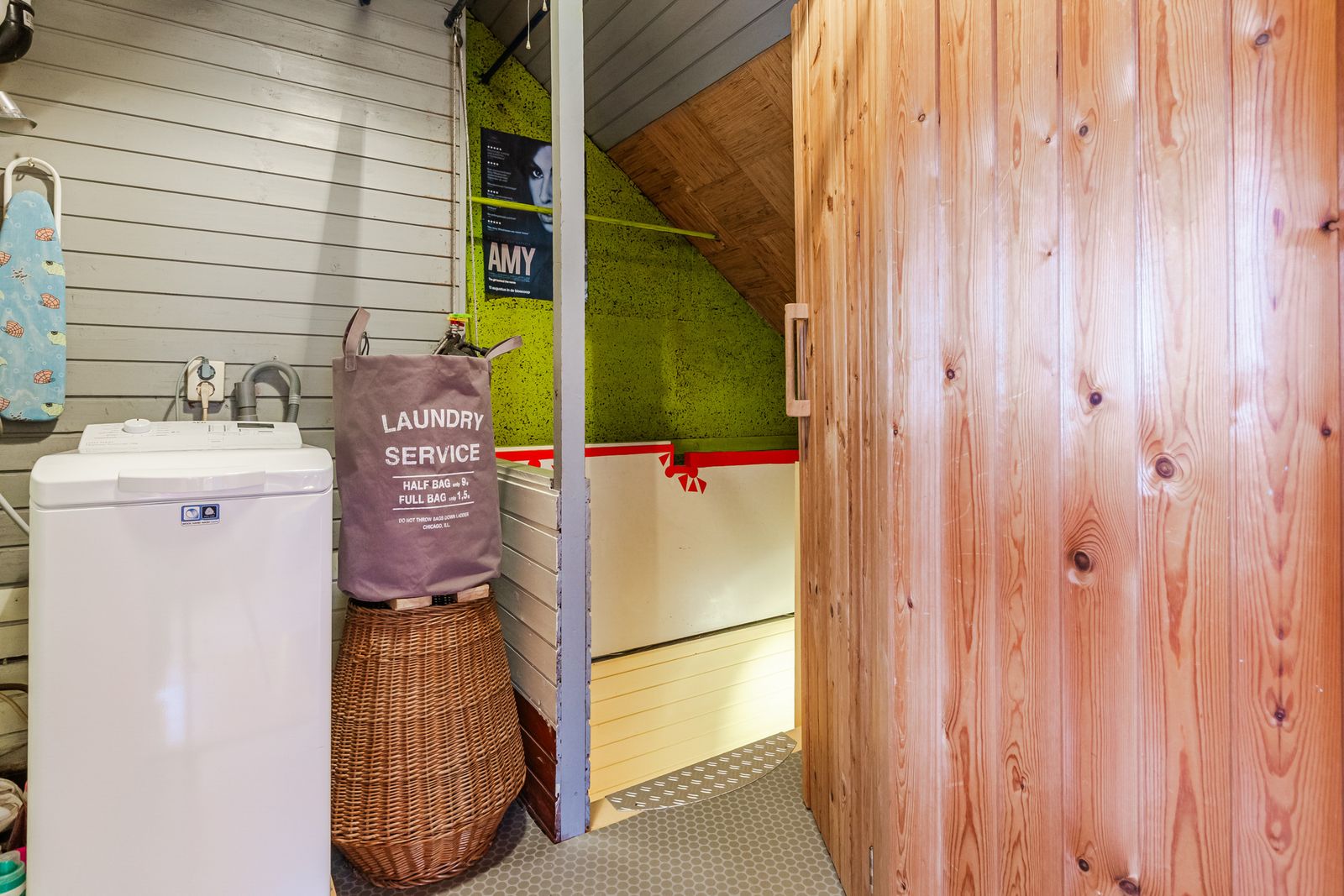 Via een vaste trap bereik je een ruime slaapkamer met dakkapel (2018). Op de overloop is de toegang tot de sauna en de aansluiting voor de wasmachine.