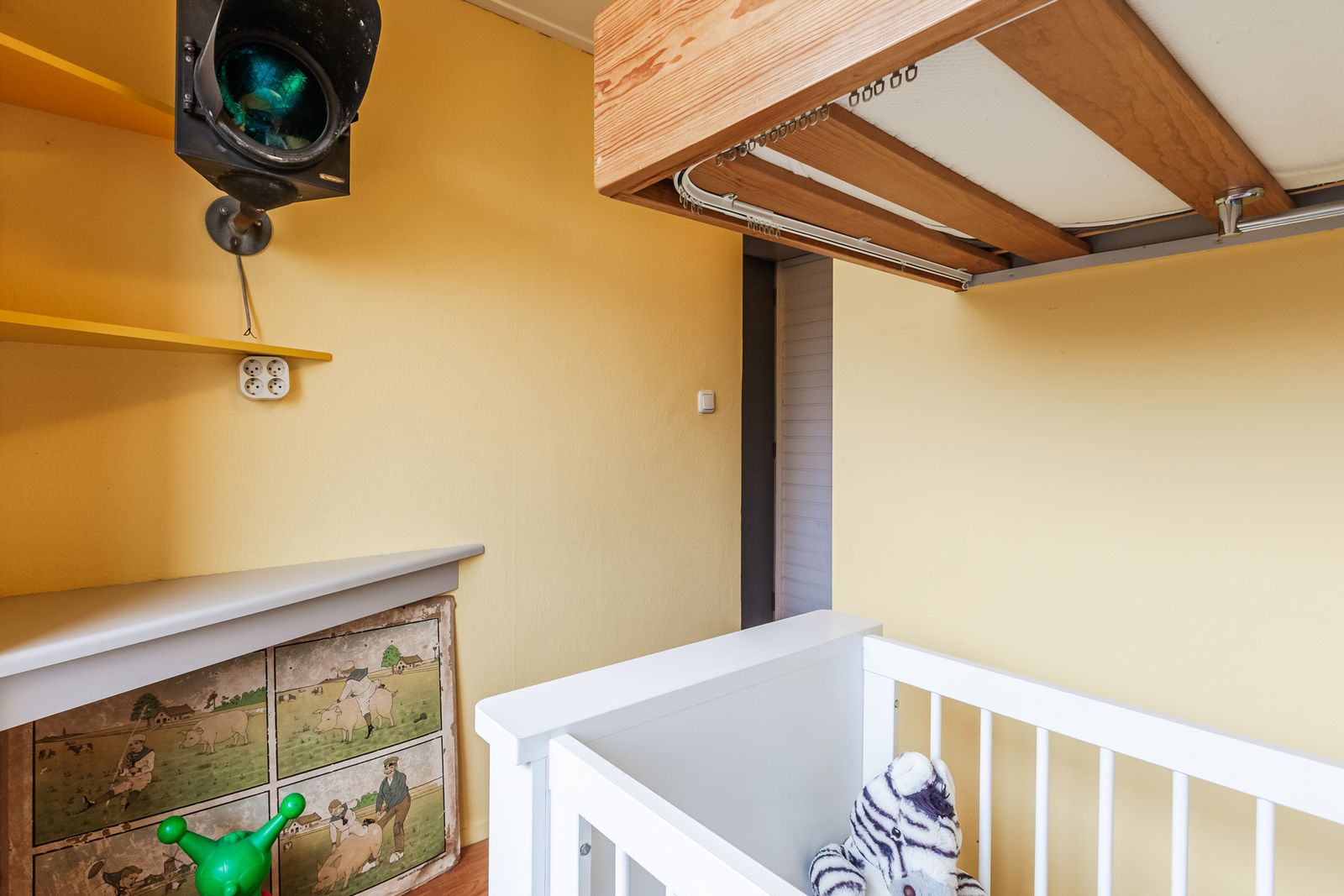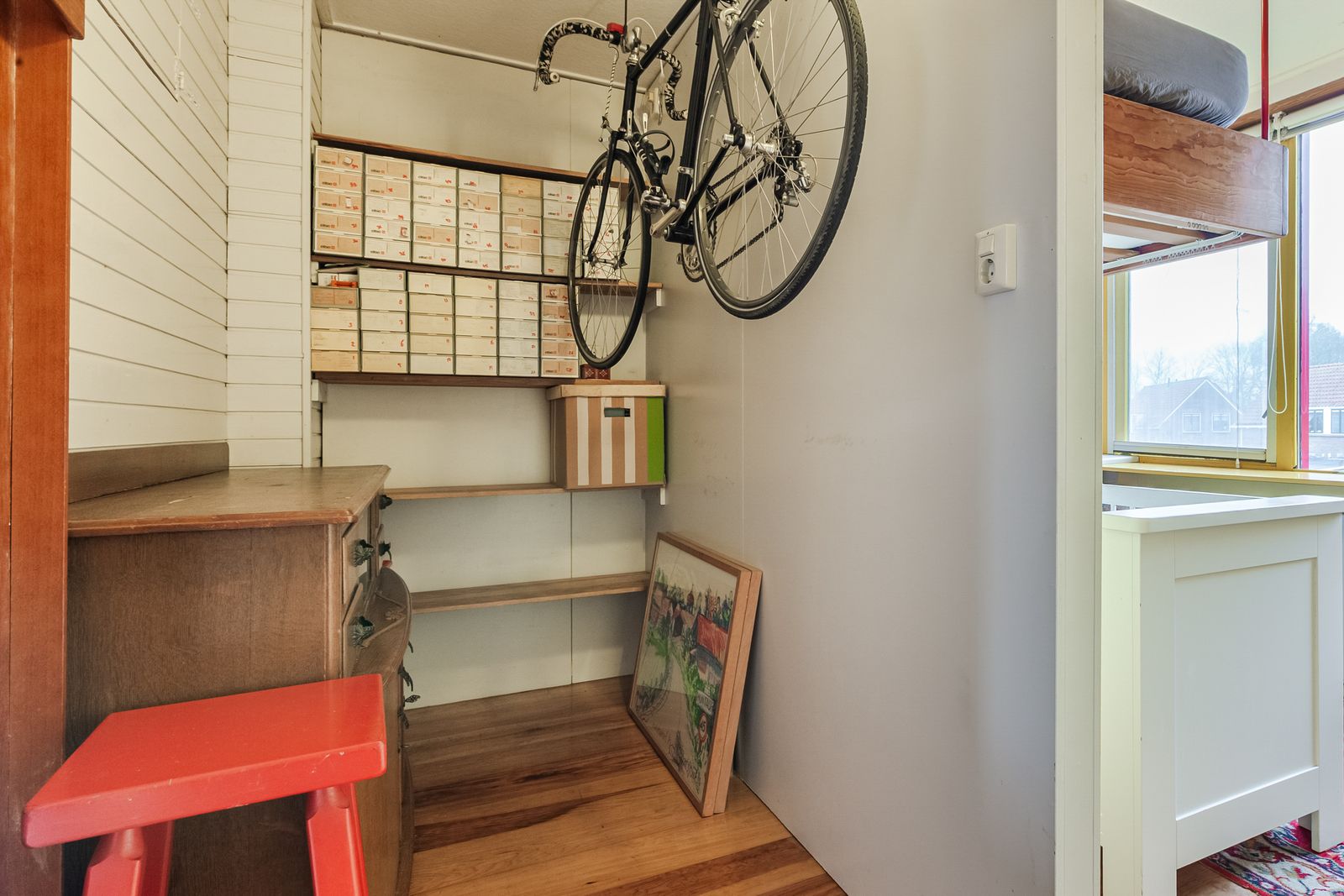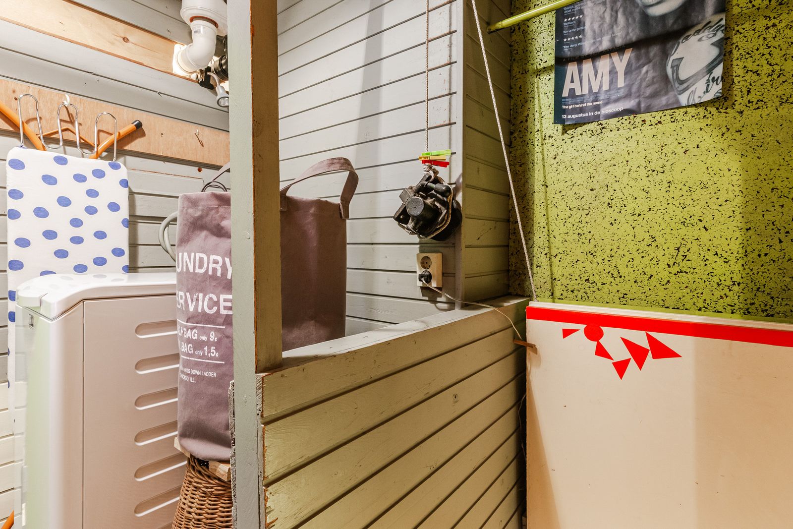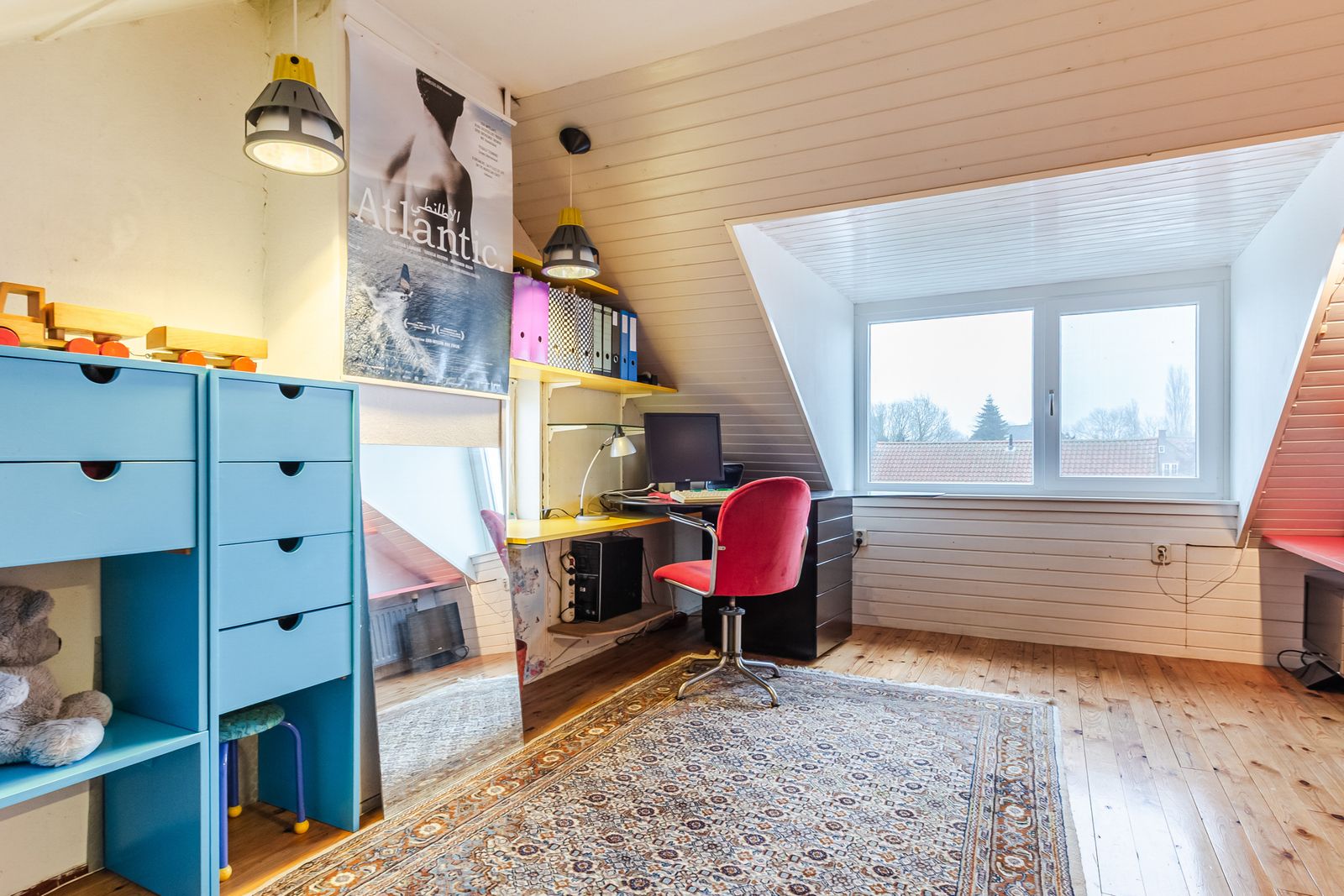 Via een vaste trap bereik je een ruime slaapkamer met dakkapel (2018). Op de overloop is de toegang tot de sauna en de aansluiting voor de wasmachine.