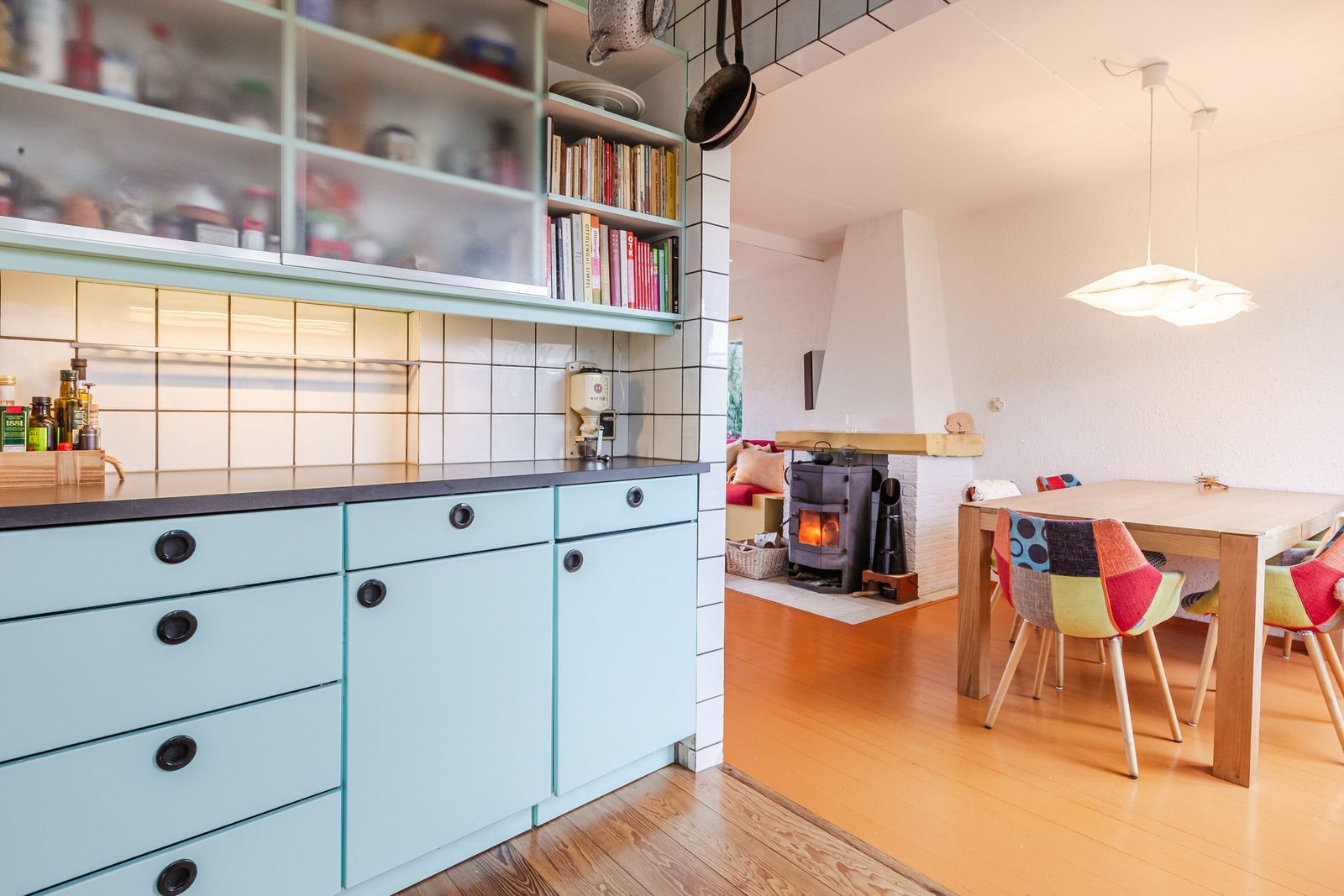 De grote ramen brengen volop daglicht binnen en de open keuken is in 2022 voorzien