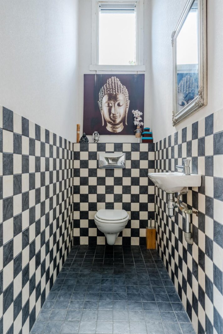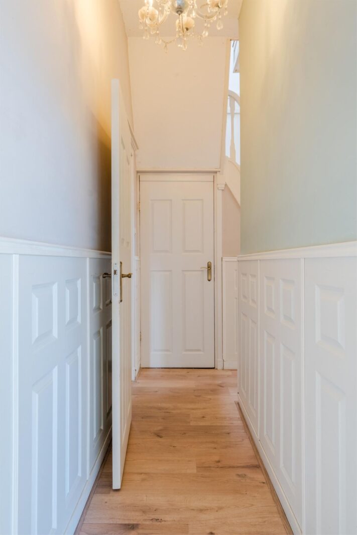 Daarnaast vindt u op de begane grond een prachtige kamer met visgraatvloer en eigen entree – ideaal als kantoor, atelier of praktijkruimte. Ook is er een ruime bijkeuken en een stijlvol toilet.