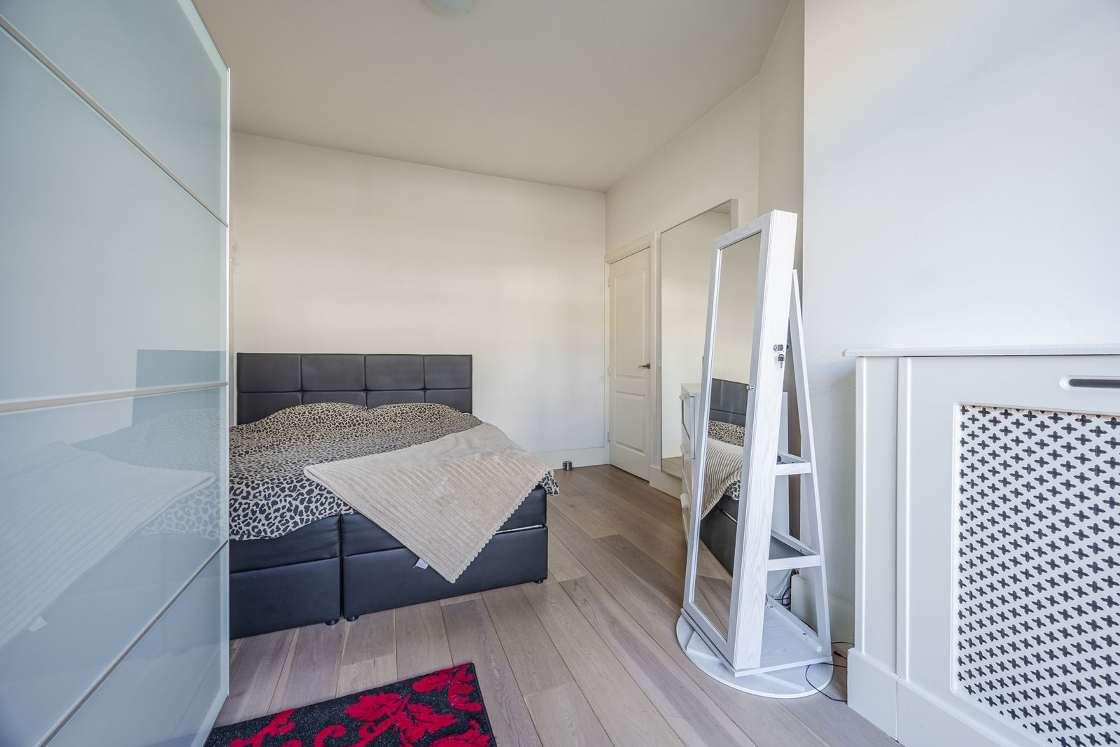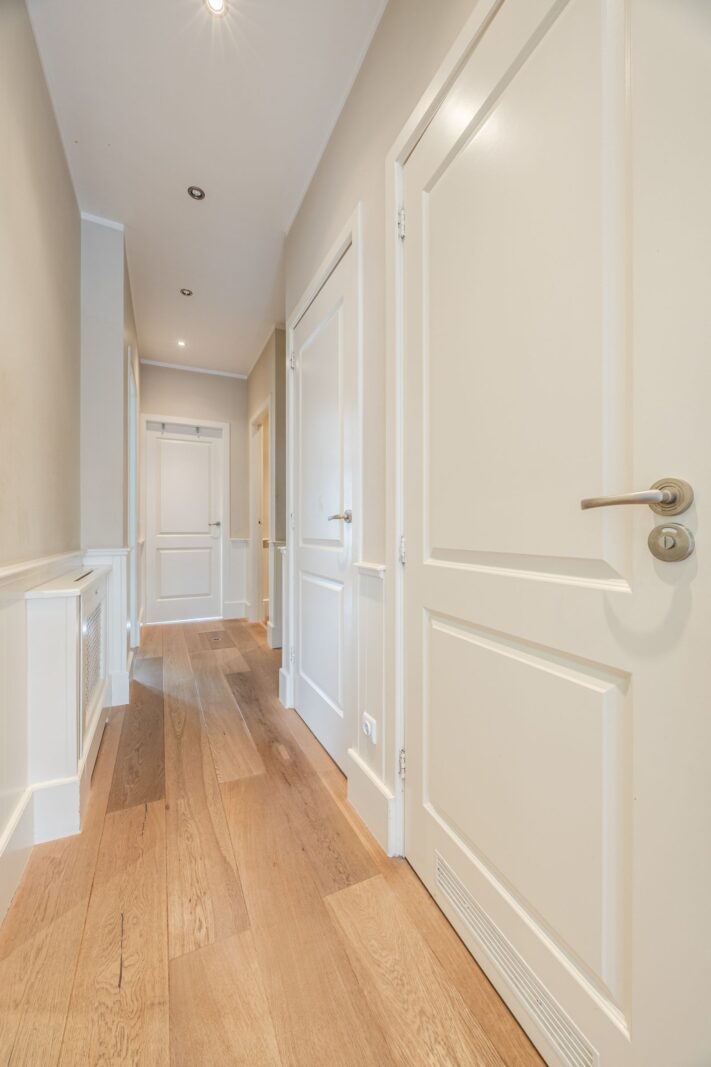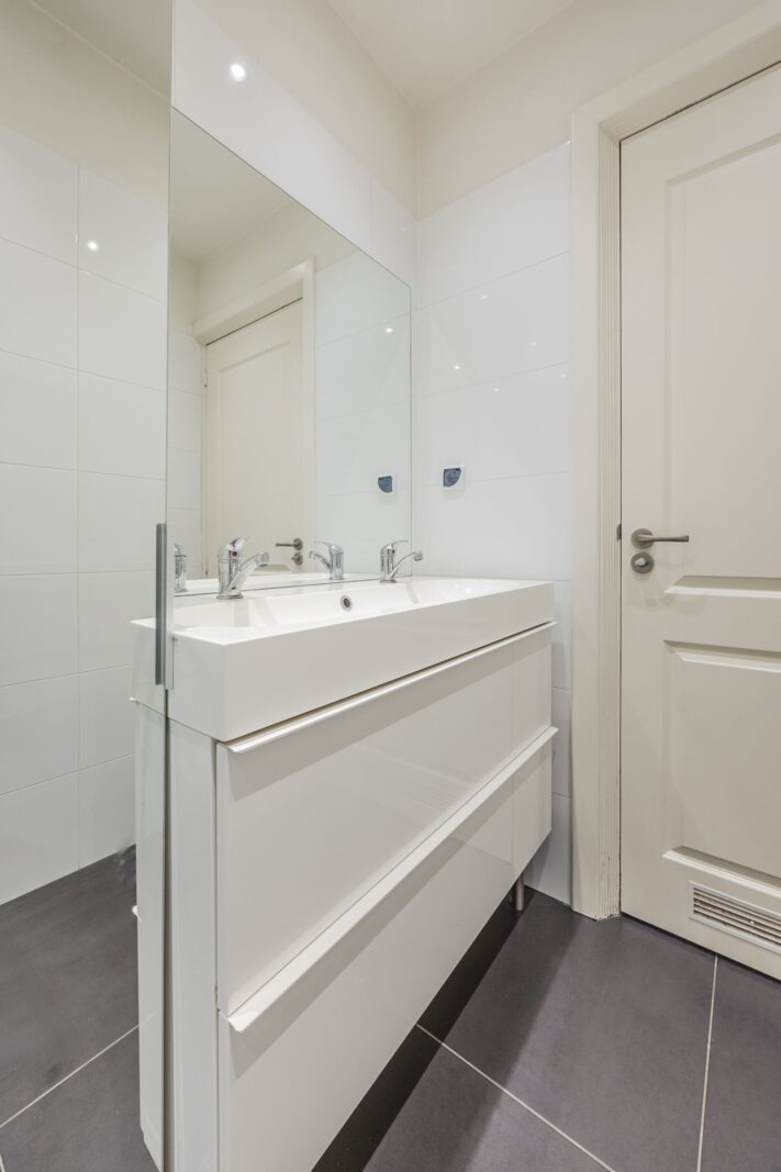 Voorkamer (ca. 3.35 x 2.90). Ruime achterkamer (ca. 4.20 x 3.50/2.80) met schuifpui naar het gevelbrede balkon (ca. 7.10 x 1.00) gelegen op het westen — hier geniet u heerlijk van de middag- en avondzon. Achter-zijkamer (ca. 4.45 x 2.60) met toegang tot de wasruimte met wasmachine- en drogeraansluiting en eveneens toegang tot het balkon. Moderne, licht betegelde badkamer (ca. 3.25 x 1.50) voorzien van douchecabine, wastafelmeubel en handdoekradiator. Eigen fietsenberging achter het complex.