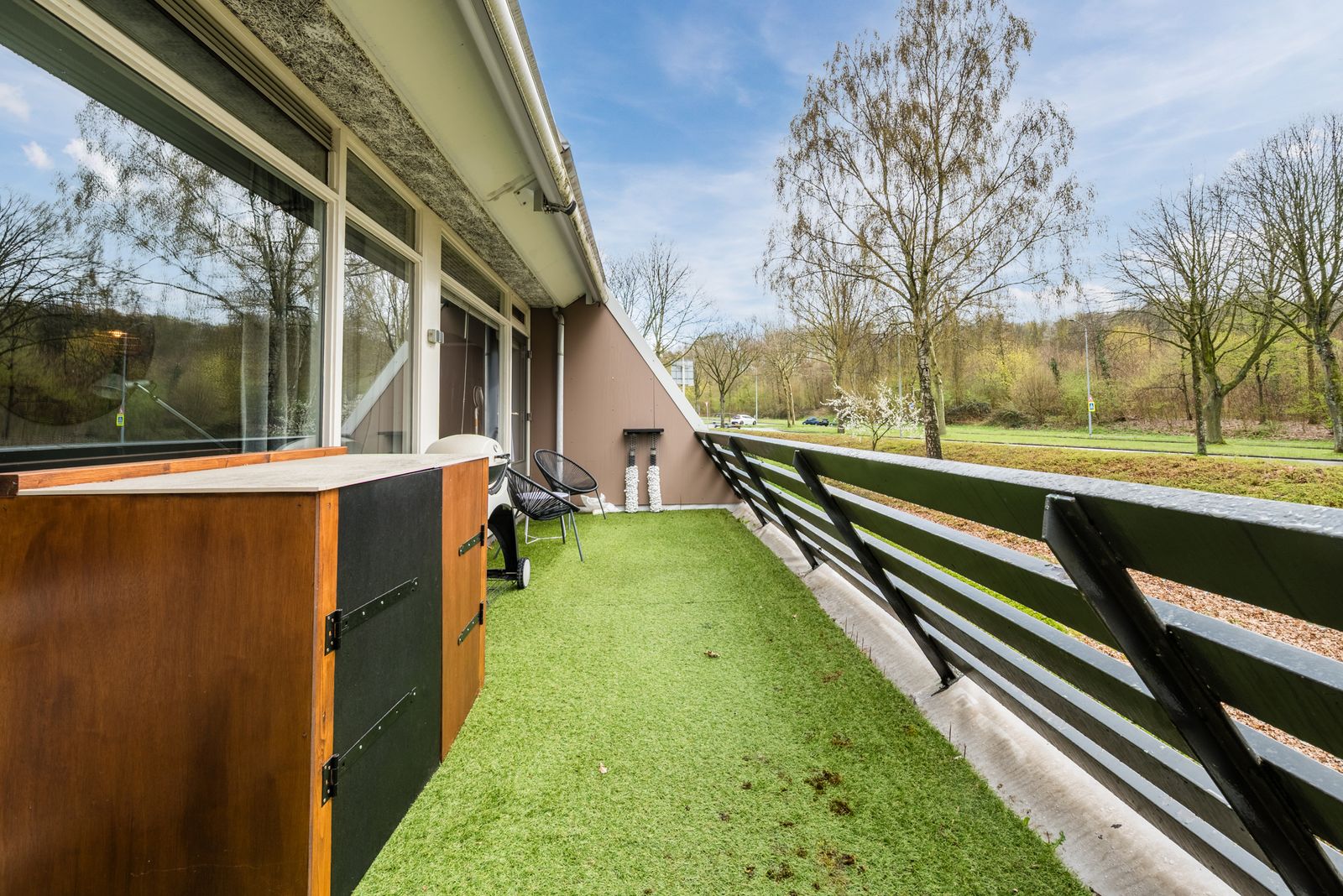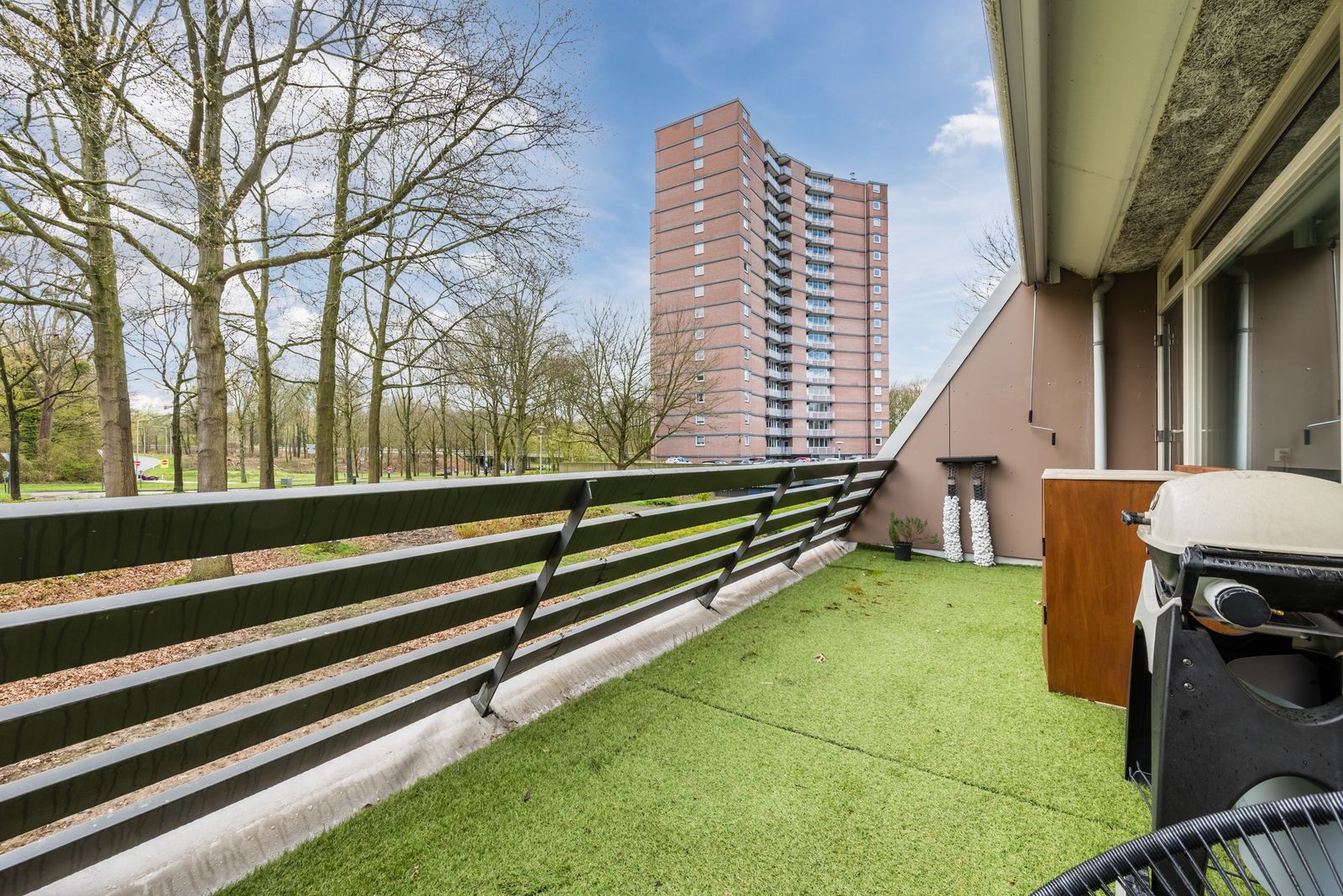 Dit zonnige balkon is groot ca. 20 m² en is gelegen op het zuiden.