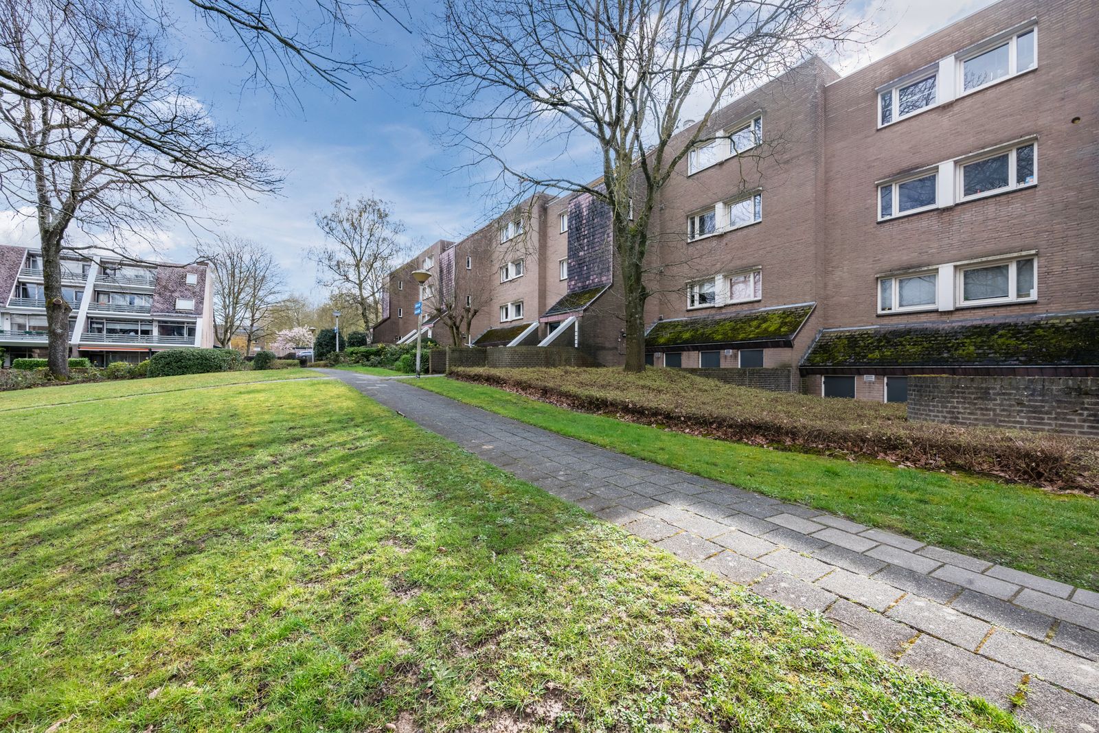Gezamenlijke entree met intercom, brievenbussen en privé parkeerplaats.