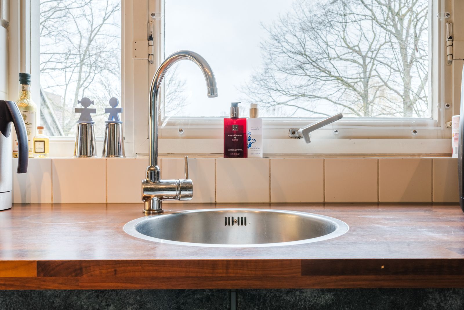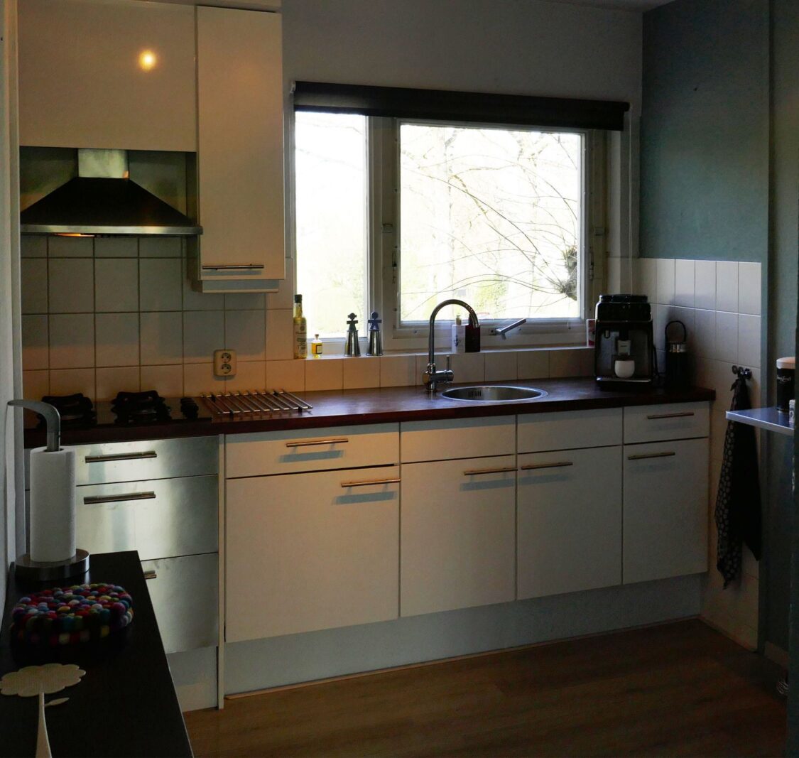 De keukeninstallatie beschikt ook over voldoende kast- en bergruimte.