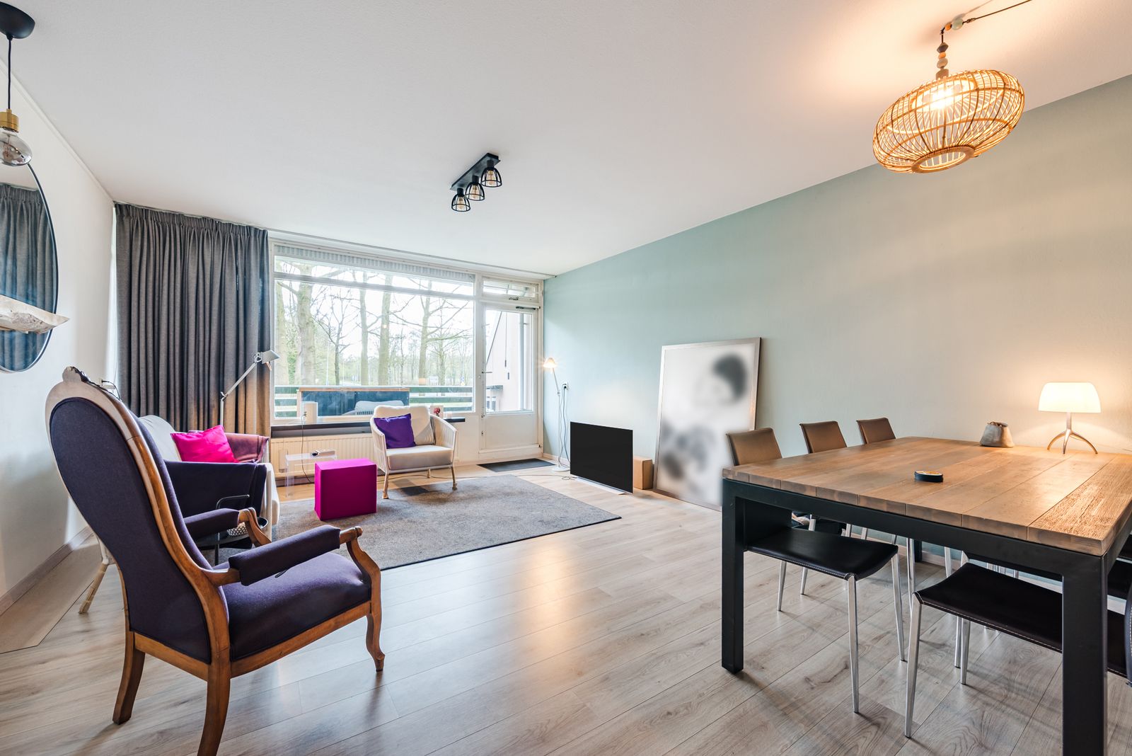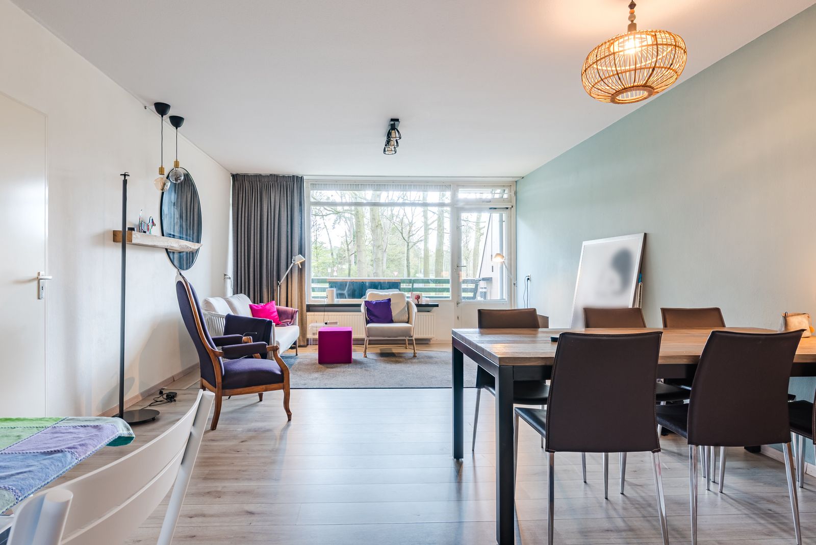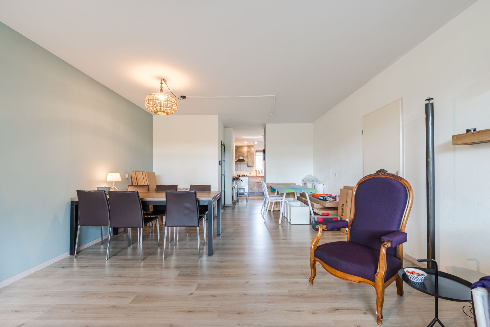De ruime doorzon woonkamer met open keuken is ca. 43 m² en het gehele appartement is voorzien van een mooie laminaatvloer.