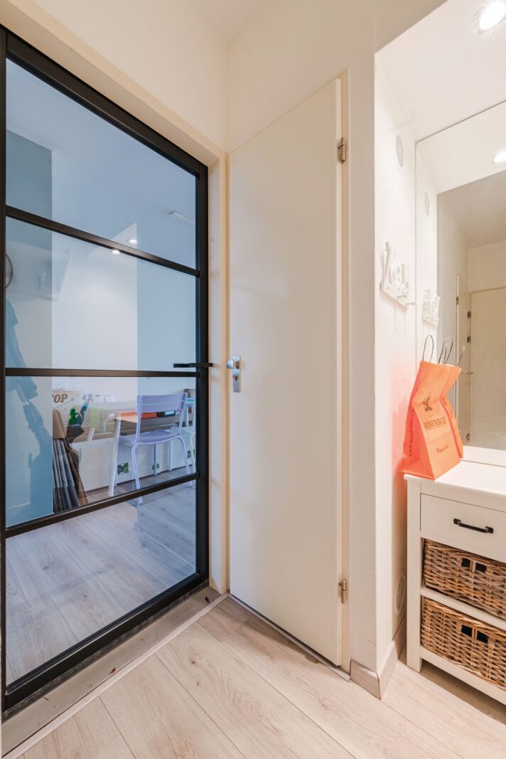 Entree. Hal met meterkast en bergkast alwaar de HR Cv-installatie (huur) is gesitueerd.