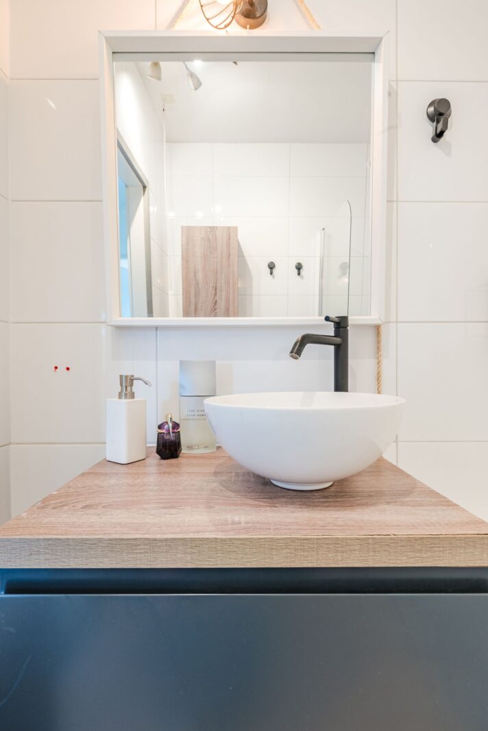 Tevens is hier gesitueerd de badkamer met ligbad en badmeubel.
