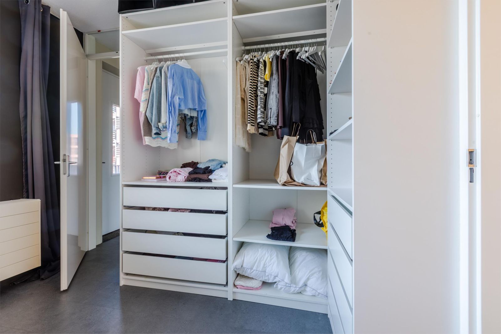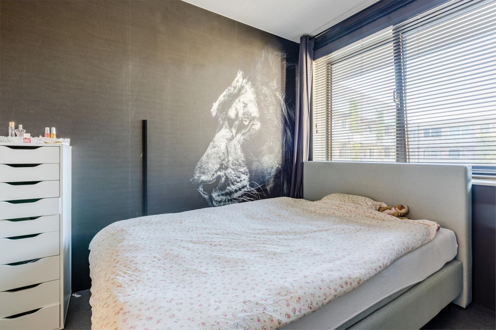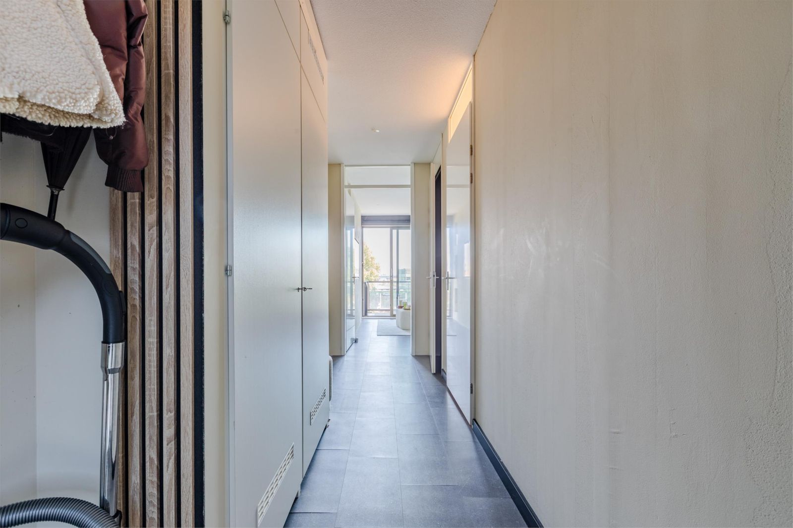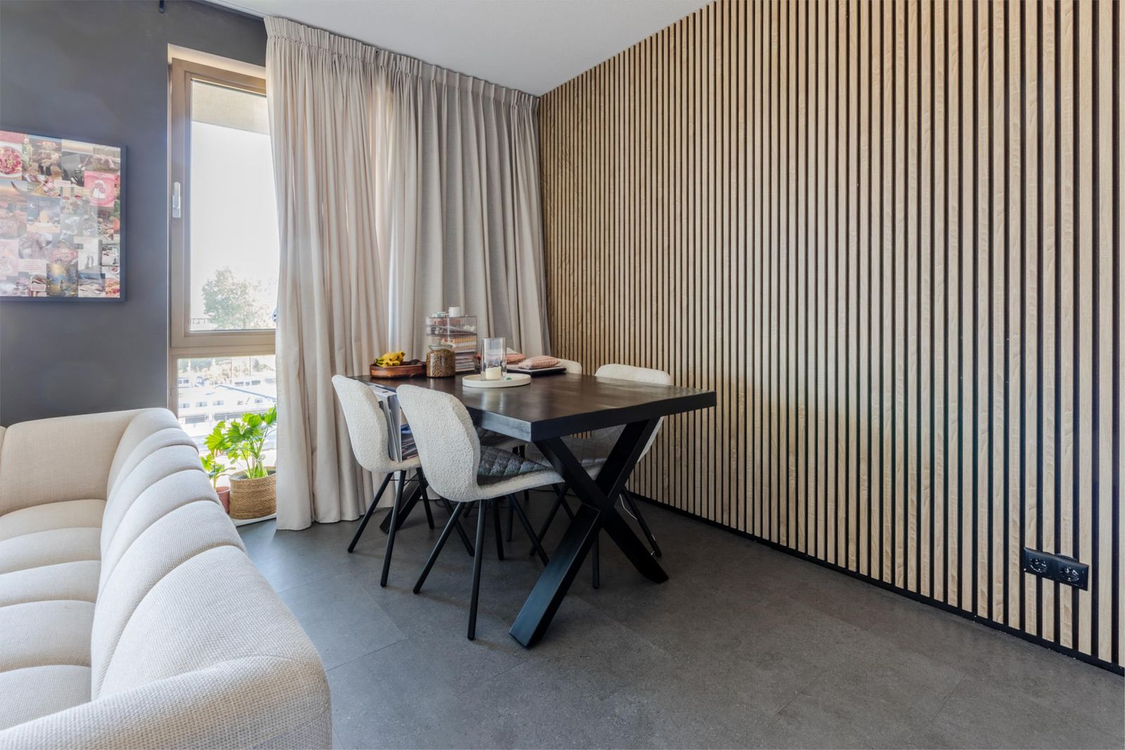 De woonkamer met open keuken strekt zich uit over de volledige breedte van het appartement. Grote raampartijen zorgen voor veel licht en een fantastisch uitzicht. De openslaande deuren leiden , naar een ruim balkon: een heerlijke plek voor je ochtendkoffie of een ontspannen avond.