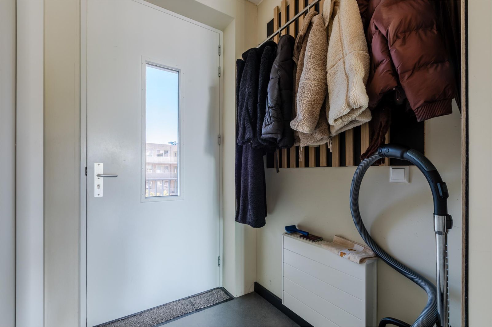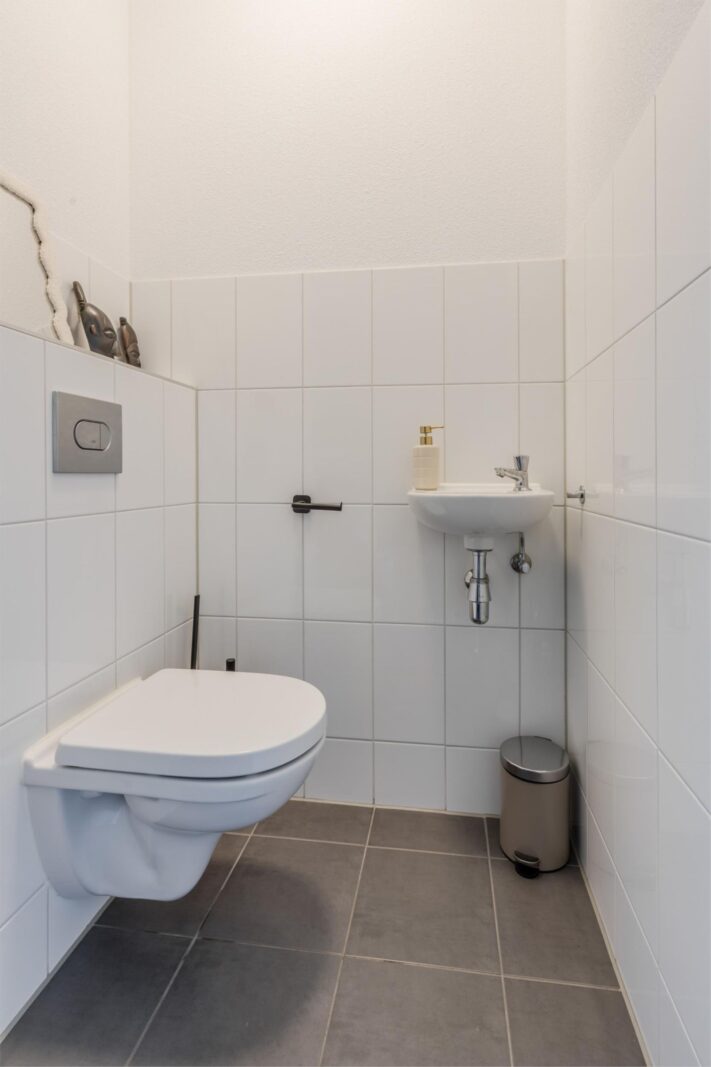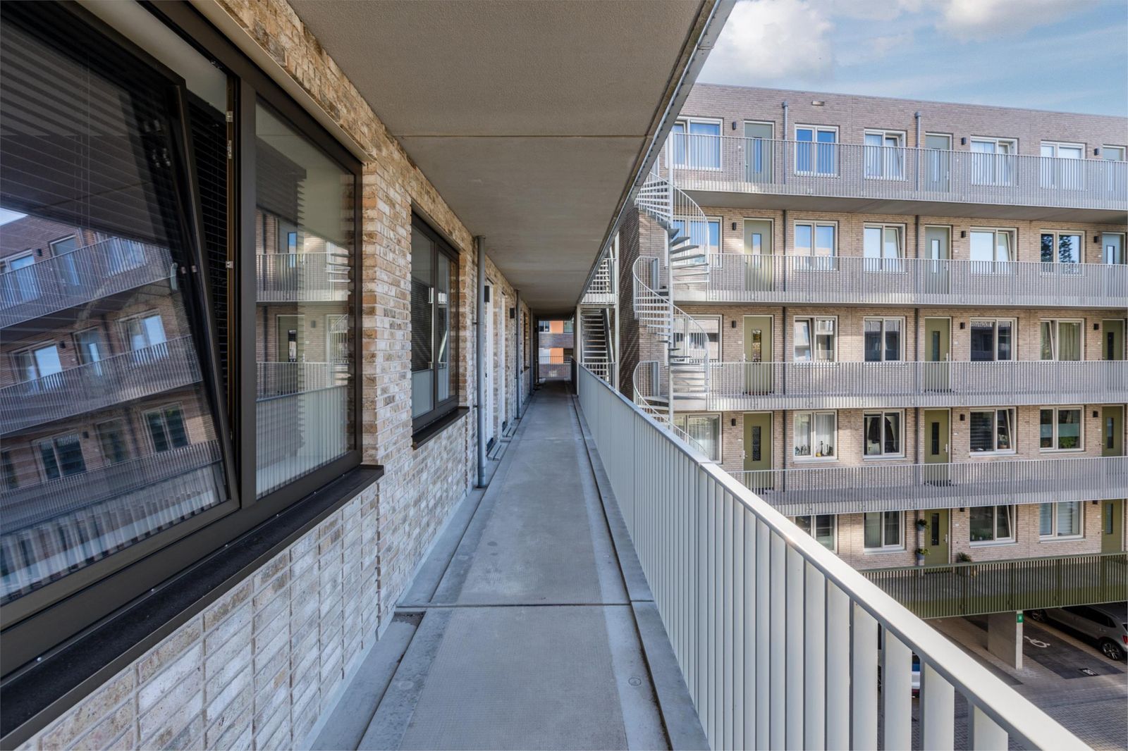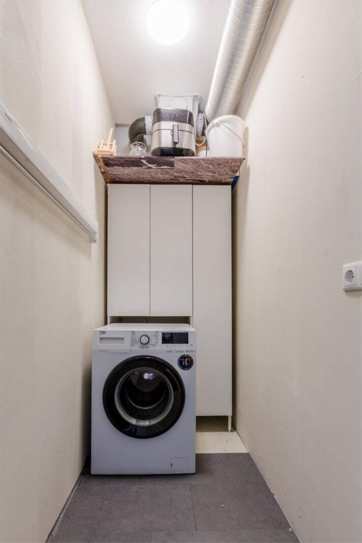 Verdieping: via de galerij met uitzicht op de binnenplaats bereik je de voordeur. De entree leidt naar de hal met garderobe, meterkast, toilet met wandcloset en fonteintje, en een inpandige berging/wasruimte.