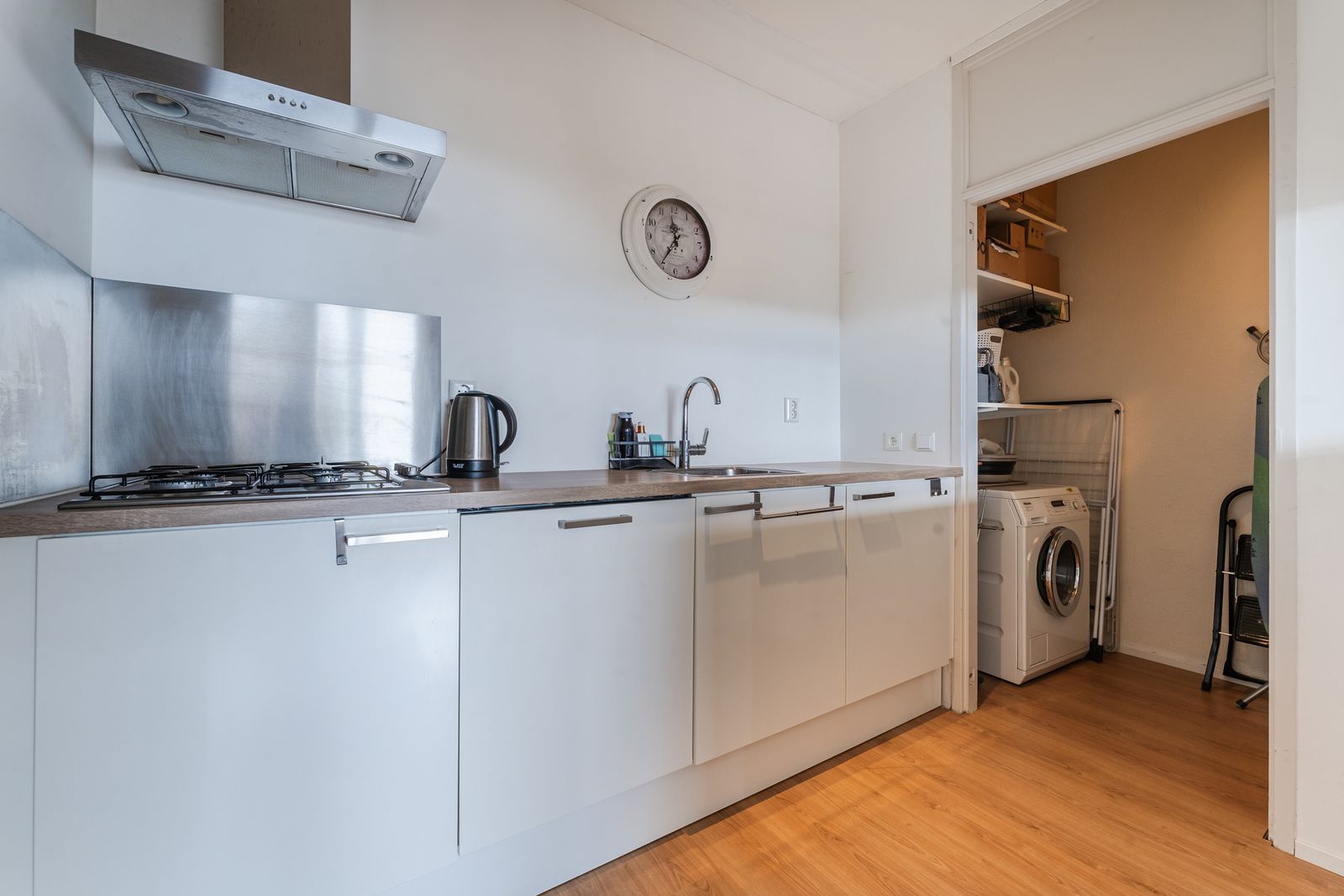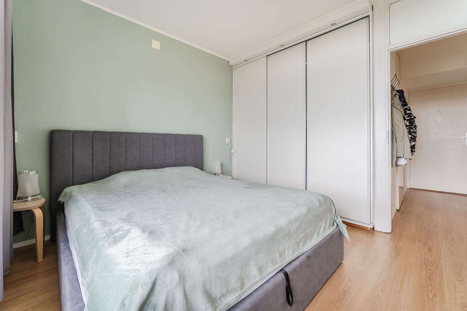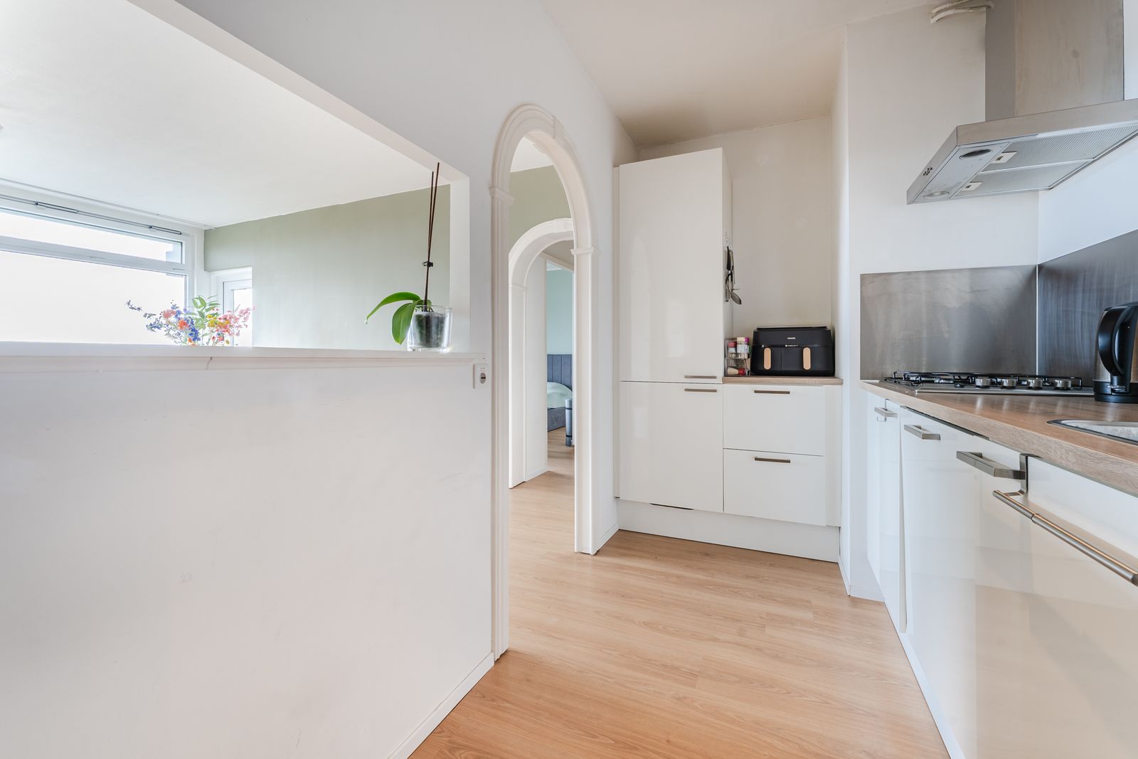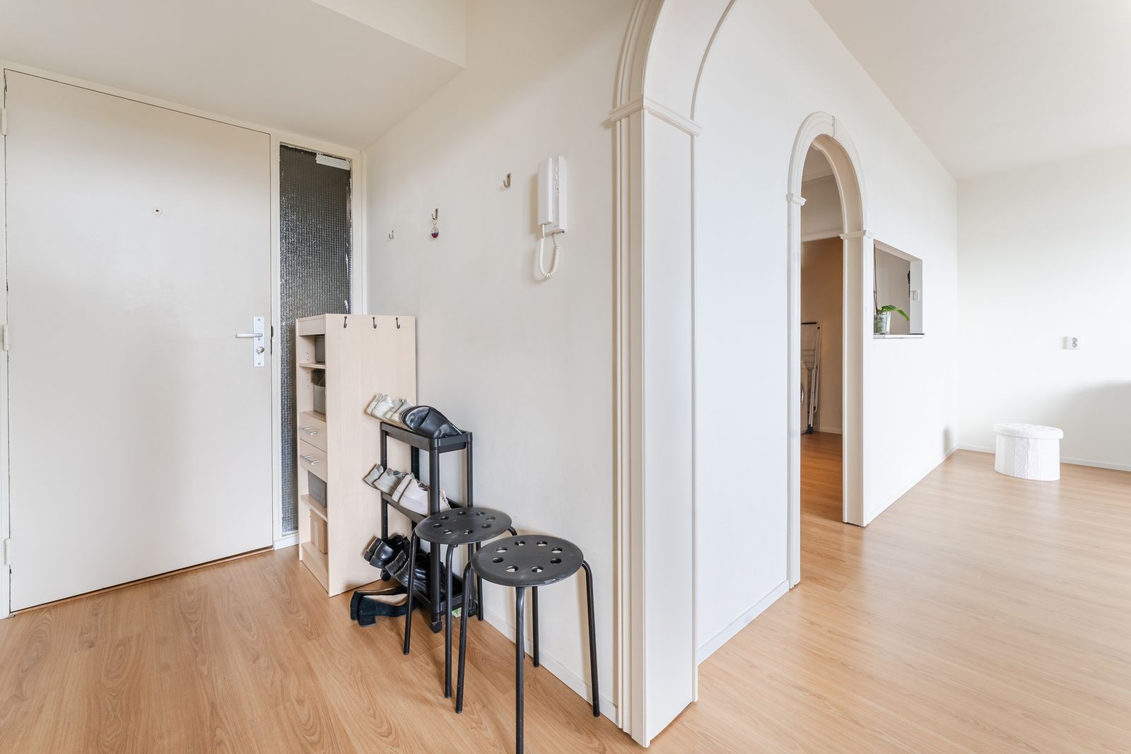 Mooie laminaatvloer en strakke stucwanden. Nette entree op begane grond en brede gemeenschappelijke binnengang op de 9e etage, waaraan het appartement ligt.