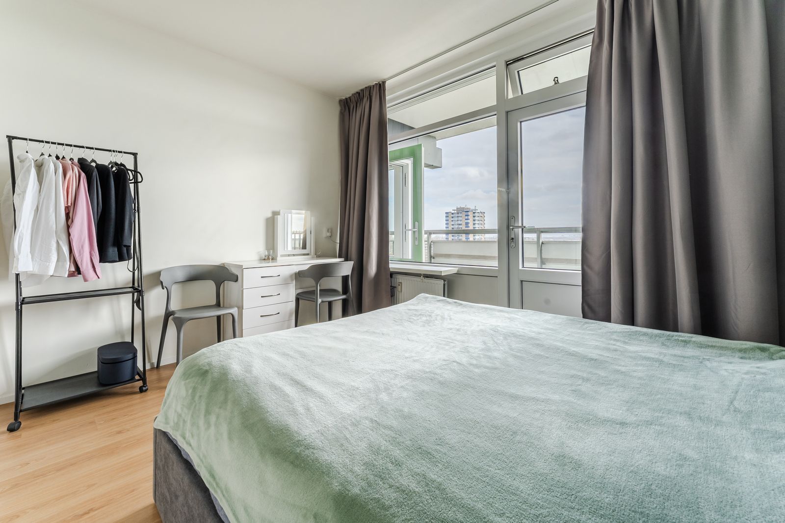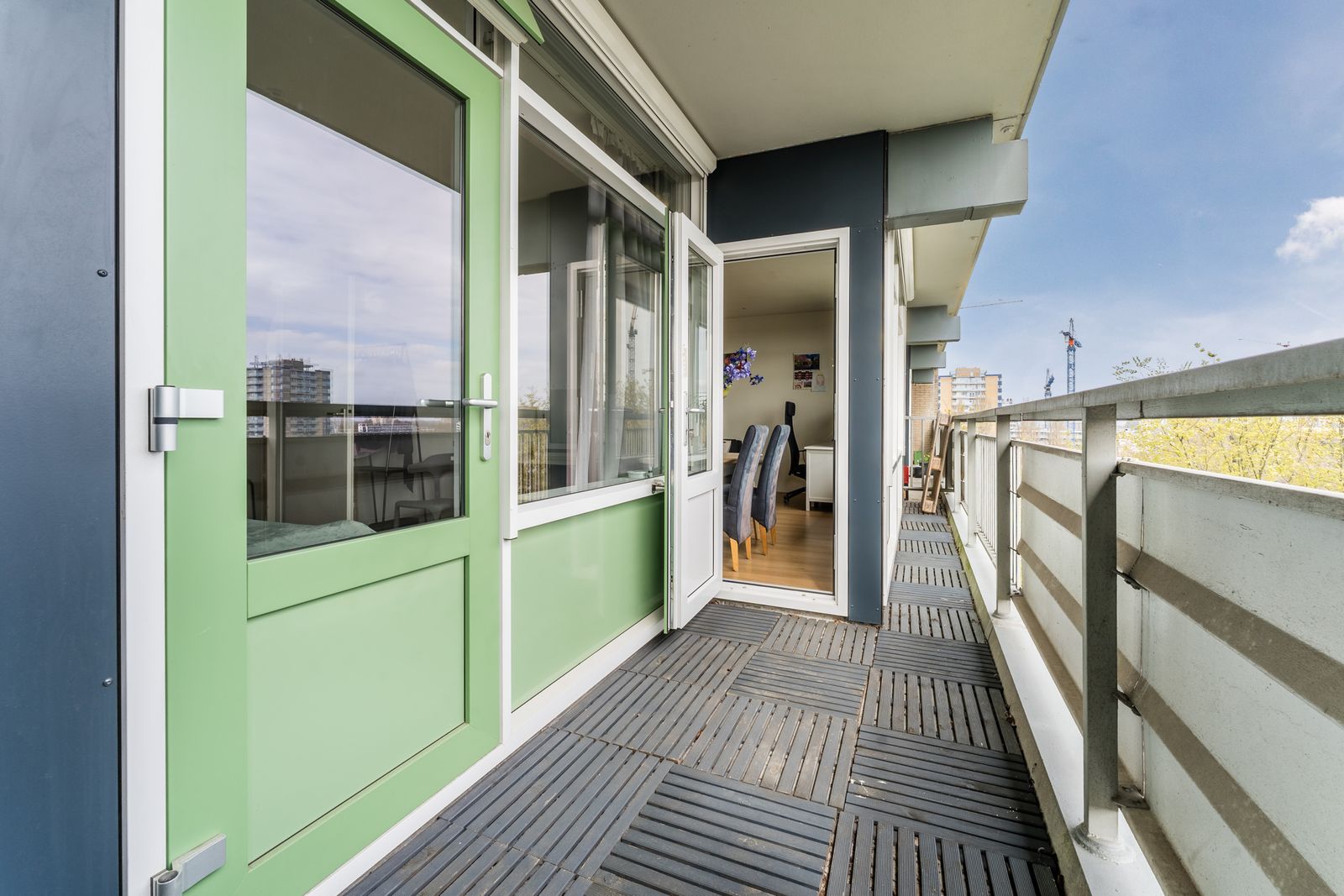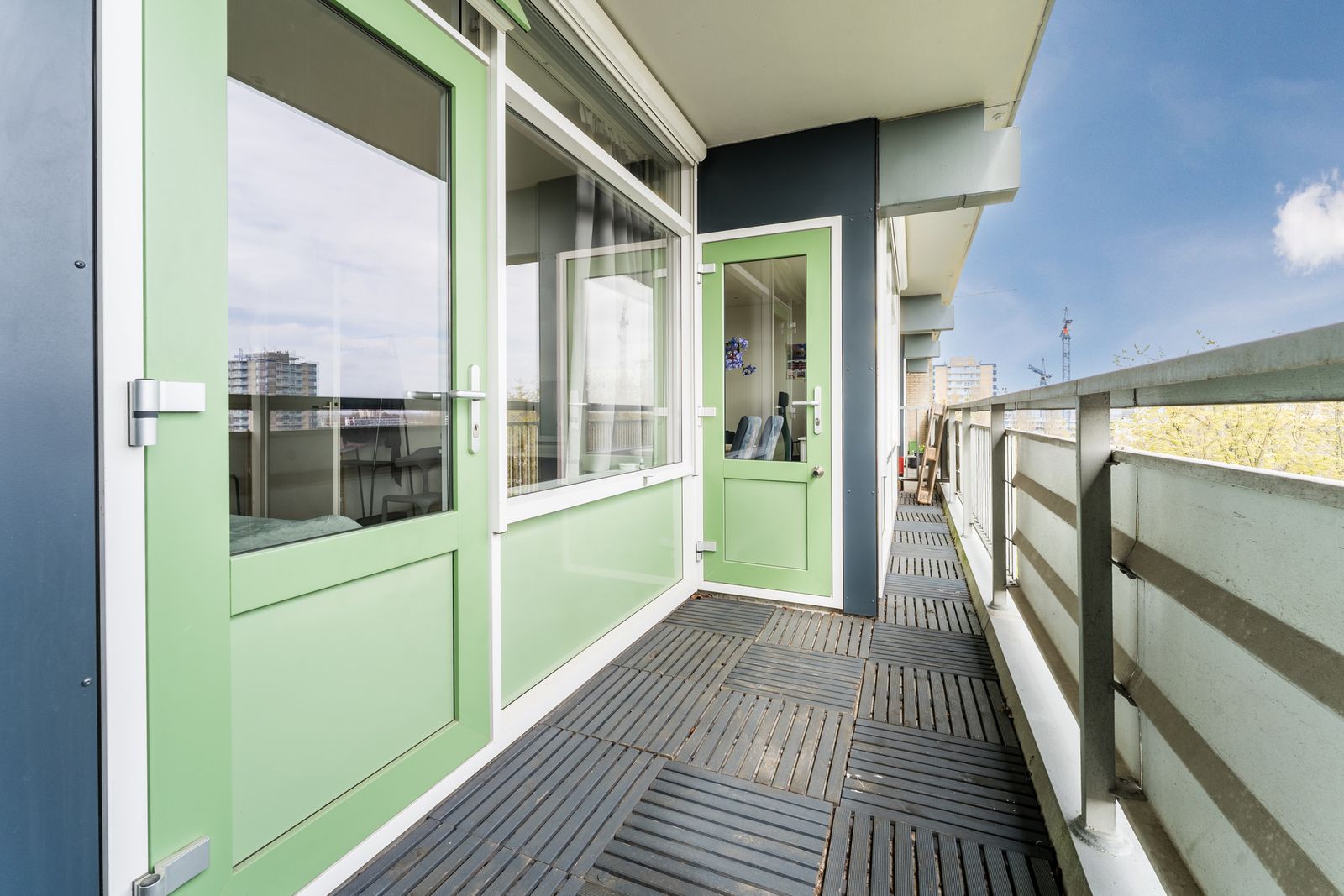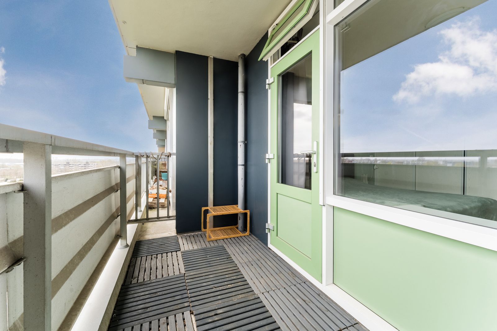 - het balkon voelt snel lekker aan, doordat het uit de wind ligt. Zon tot ca.12.30 uur. Verticale buitenzonwering aanwezig;