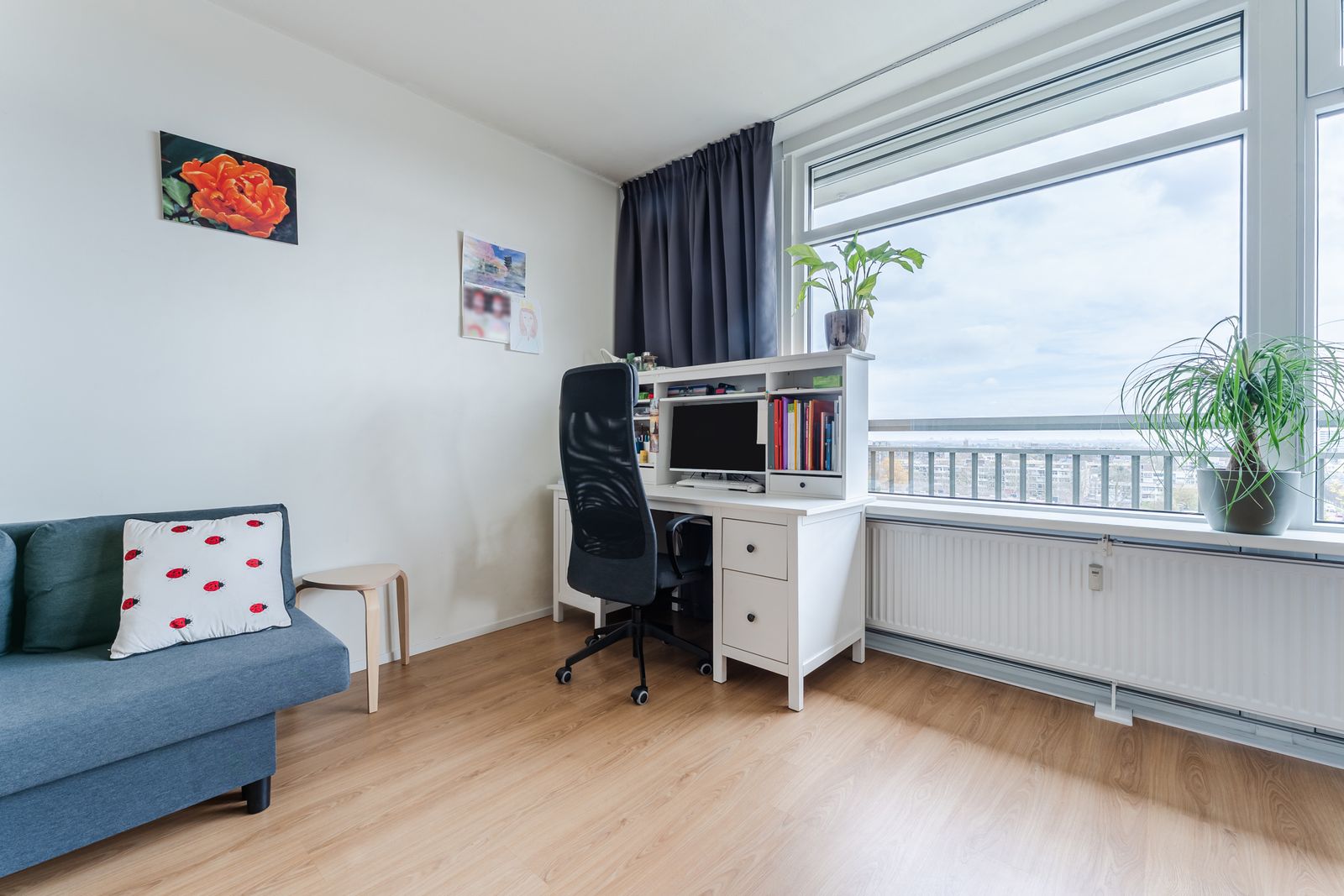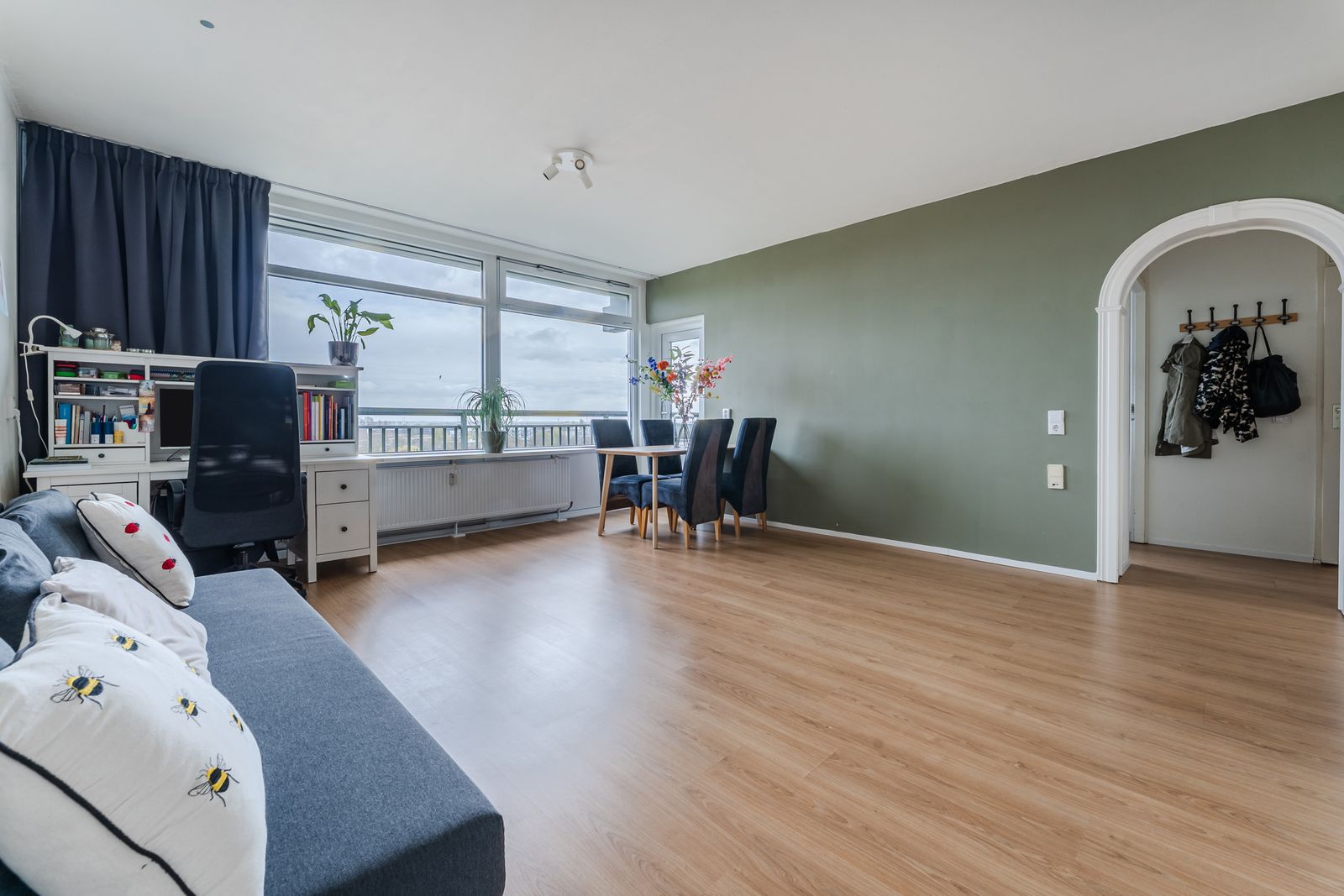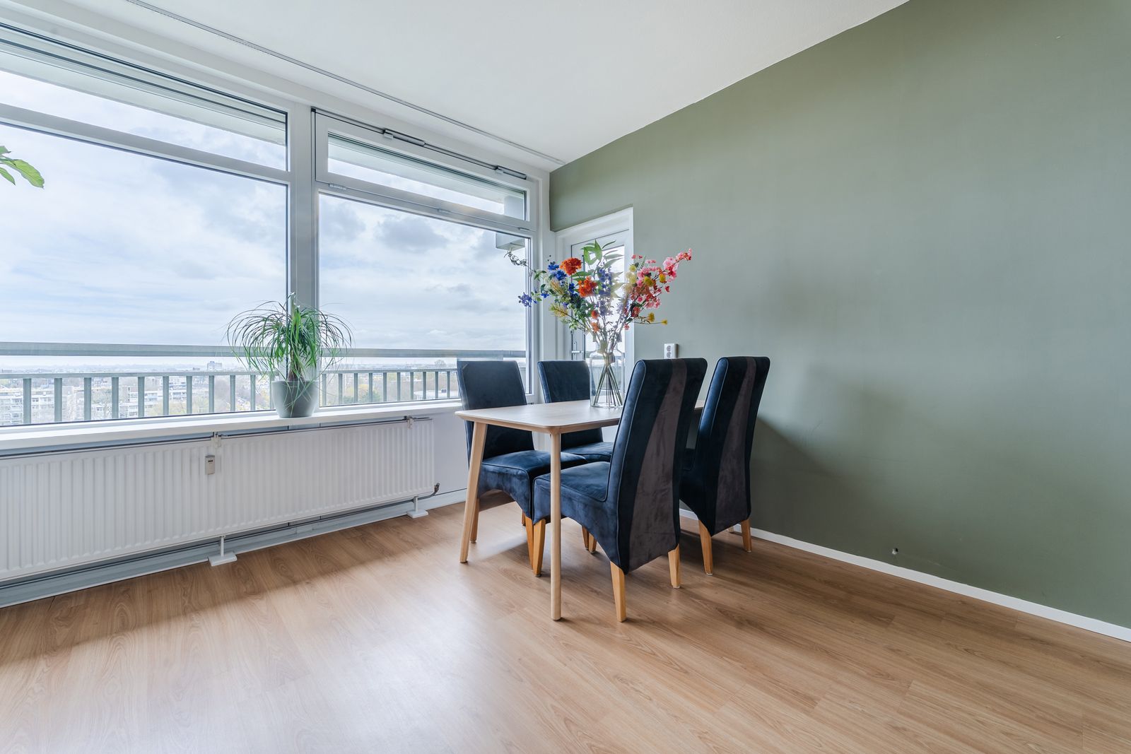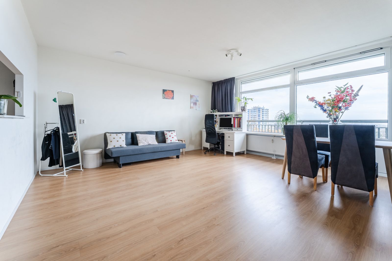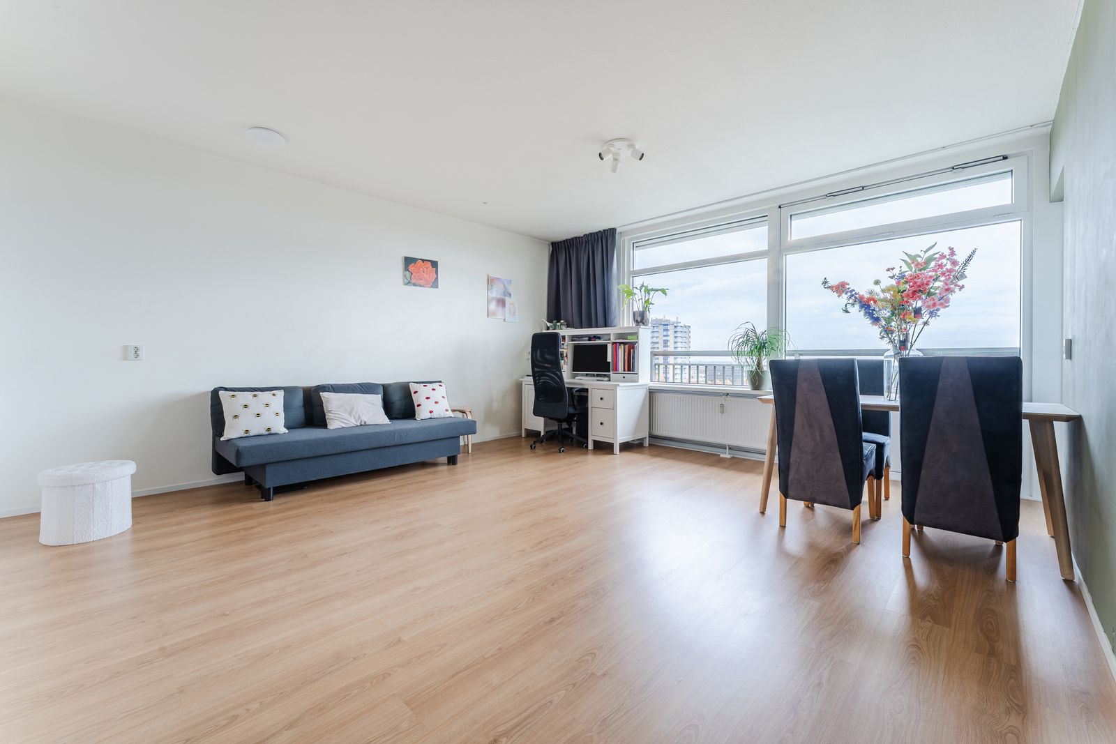 Heerlijk licht 2-kamer appartement met panoramisch uitzicht. Ruime woonkamer, half open keuken en ruime badkamer. Balkon lekker uit de wind. Goed onderhouden appartement in portiekflat.