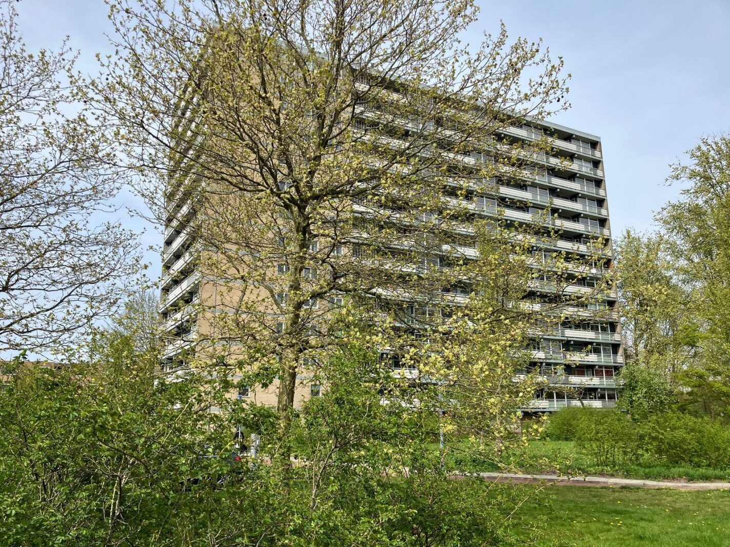 - aan park, aan rustige weg, in woonwijk, vrij uitzicht