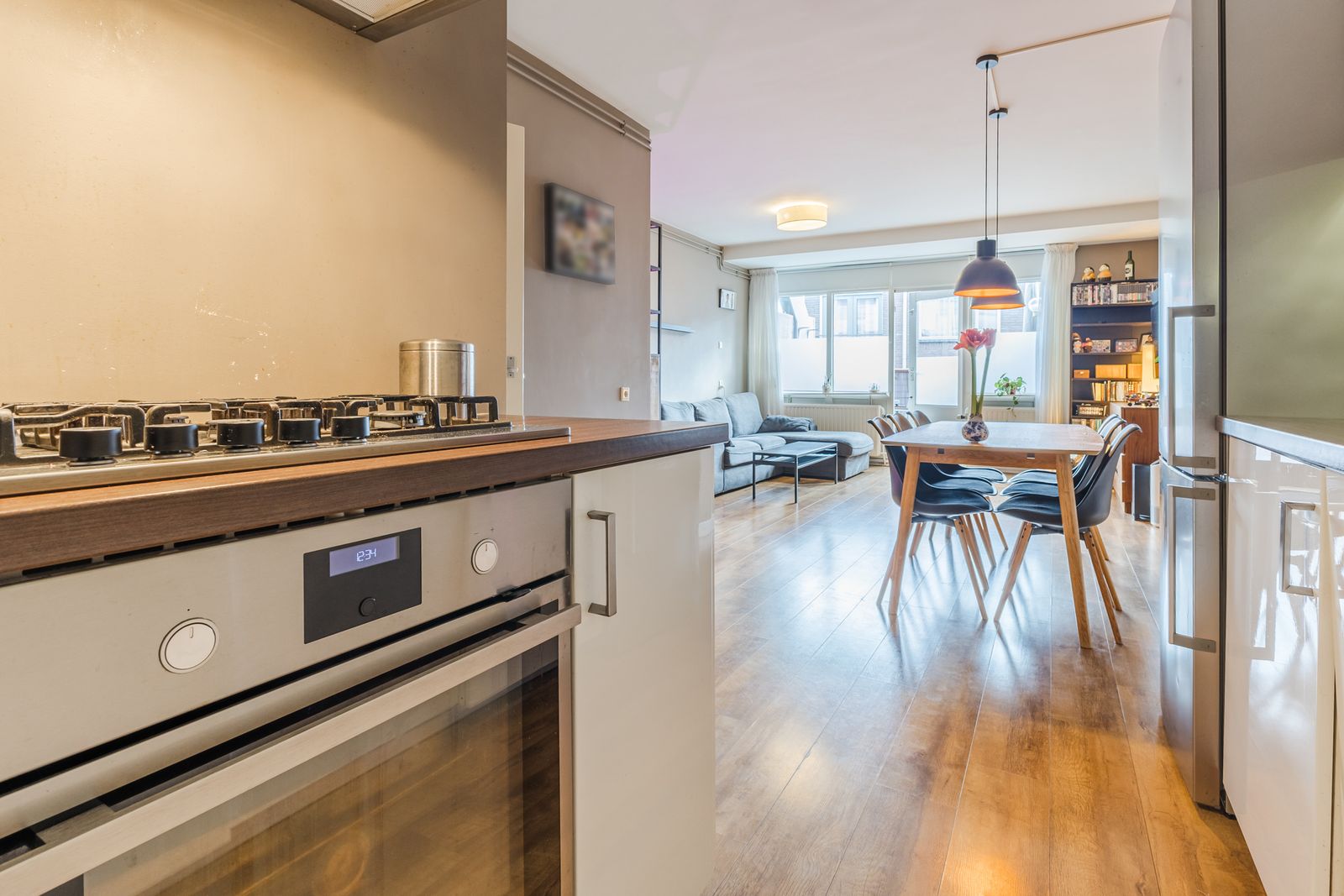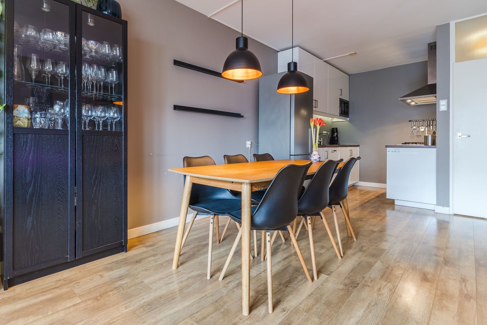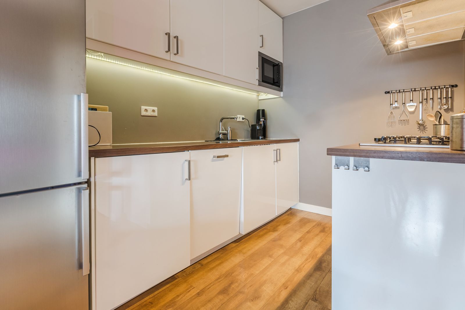 De lichte woonkamer heeft een prettige, open indeling en staat in directe verbinding met de moderne open keuken (2016). Vanuit de woonkamer is er toegang tot het ruime balkon van ruim 9 m², gelegen op het zuidoosten en voorzien van vlondertegels – een heerlijke plek om ’s ochtends en in de vroege middag van de zon te genieten.