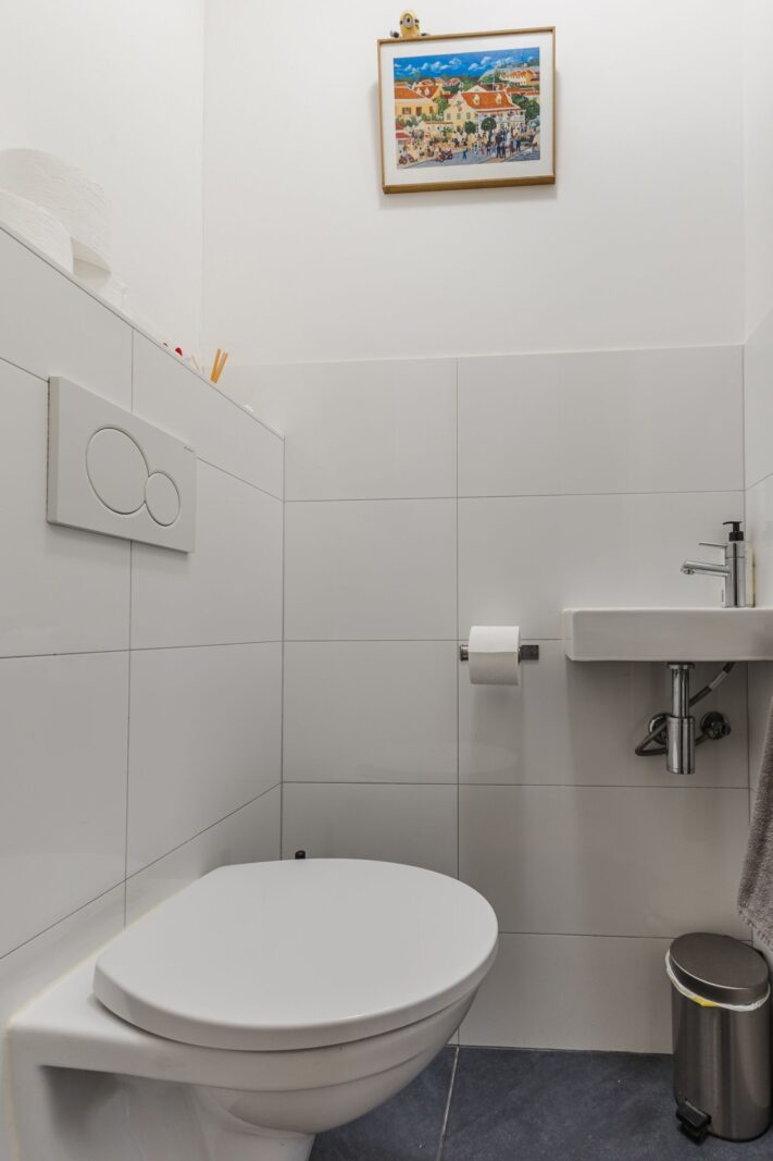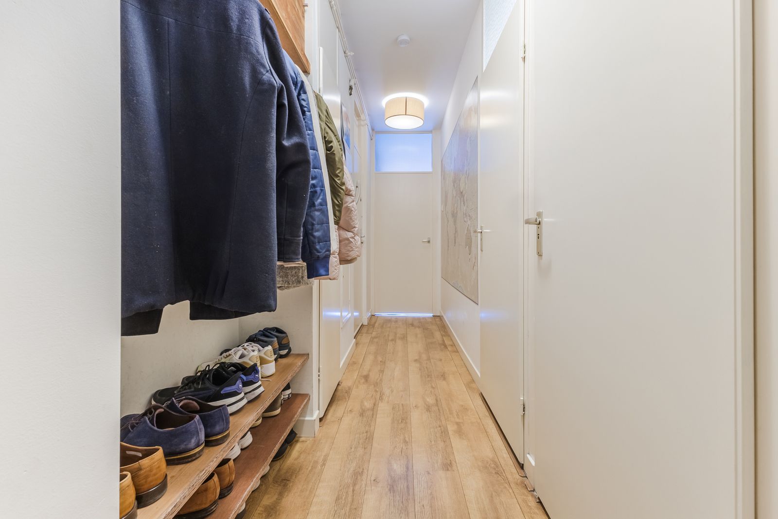 Via de afgesloten entree met bellentableau, lift en trappenhuis bereik je de woning op de derde verdieping. De hal geeft toegang tot alle vertrekken en is voorzien van een meterkast en een modern toilet met zwevend closet en fonteintje.