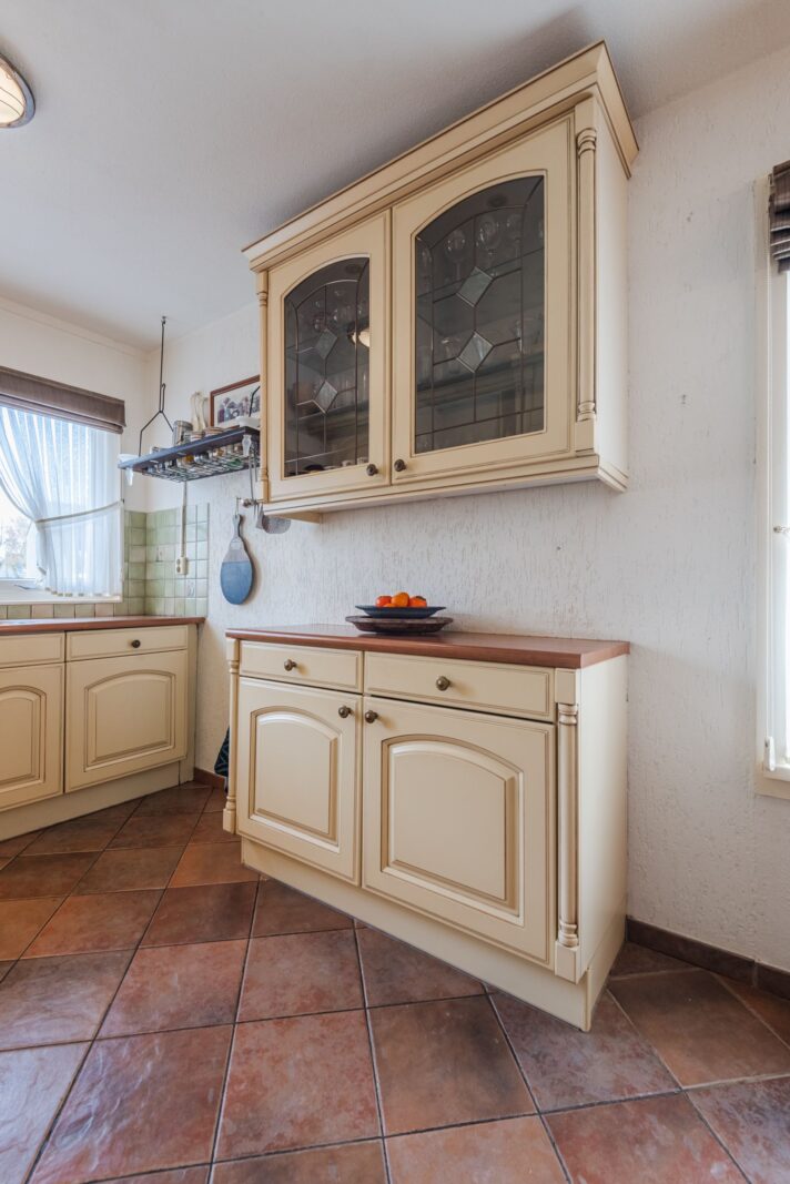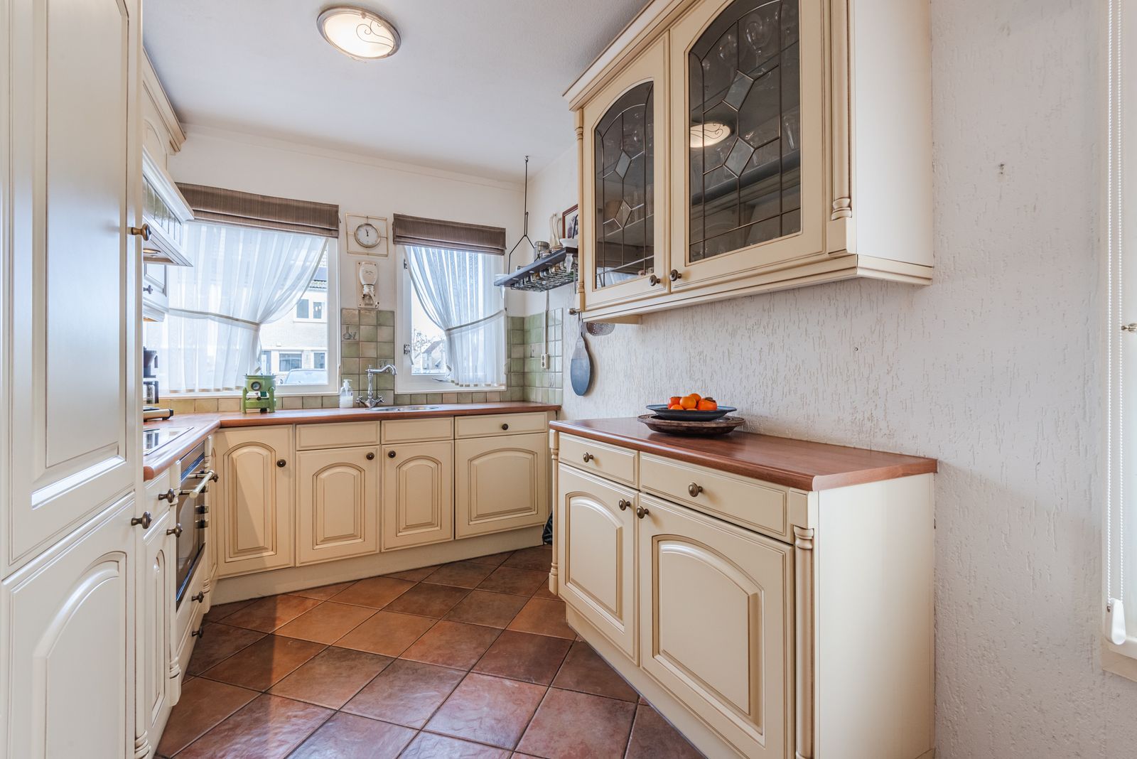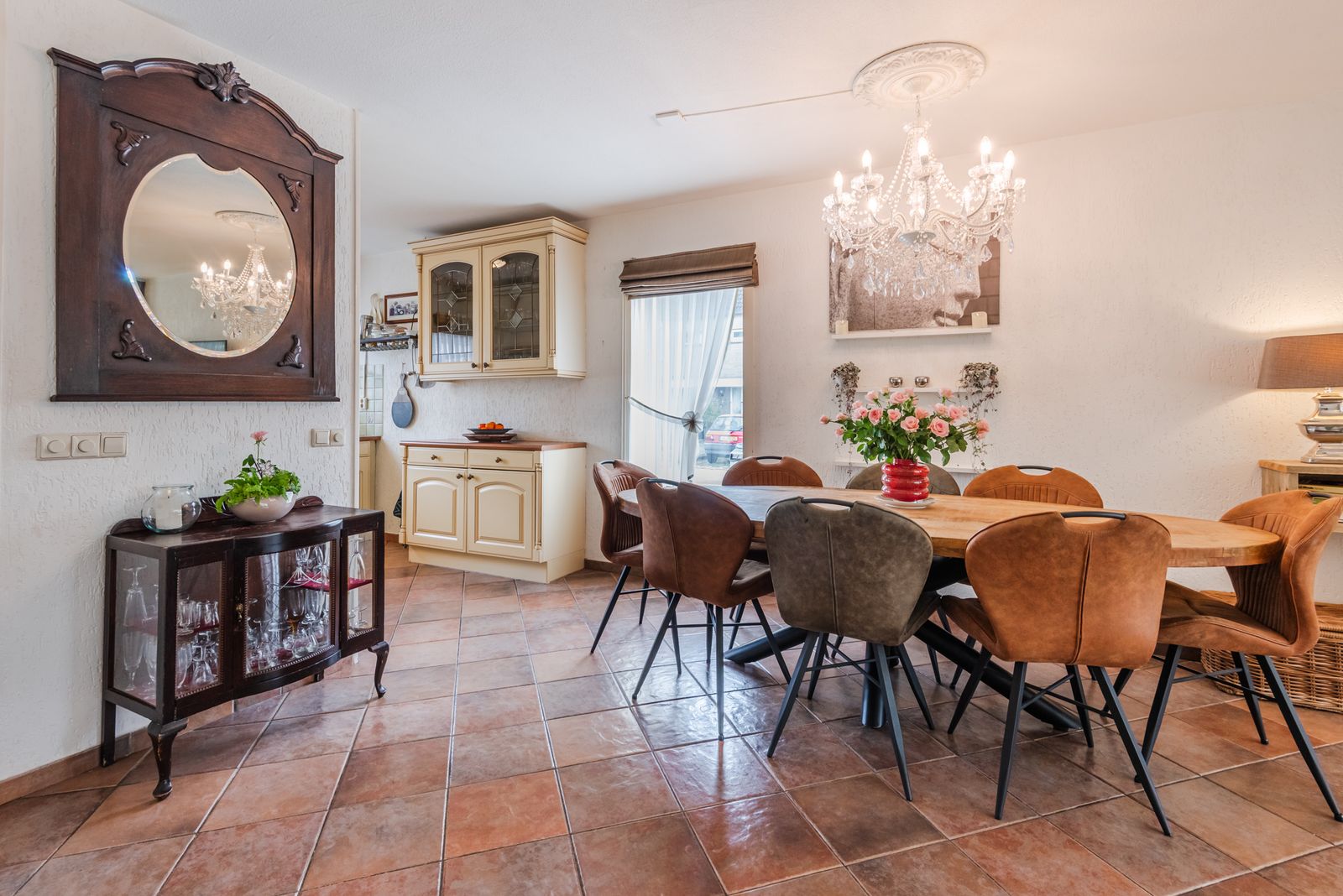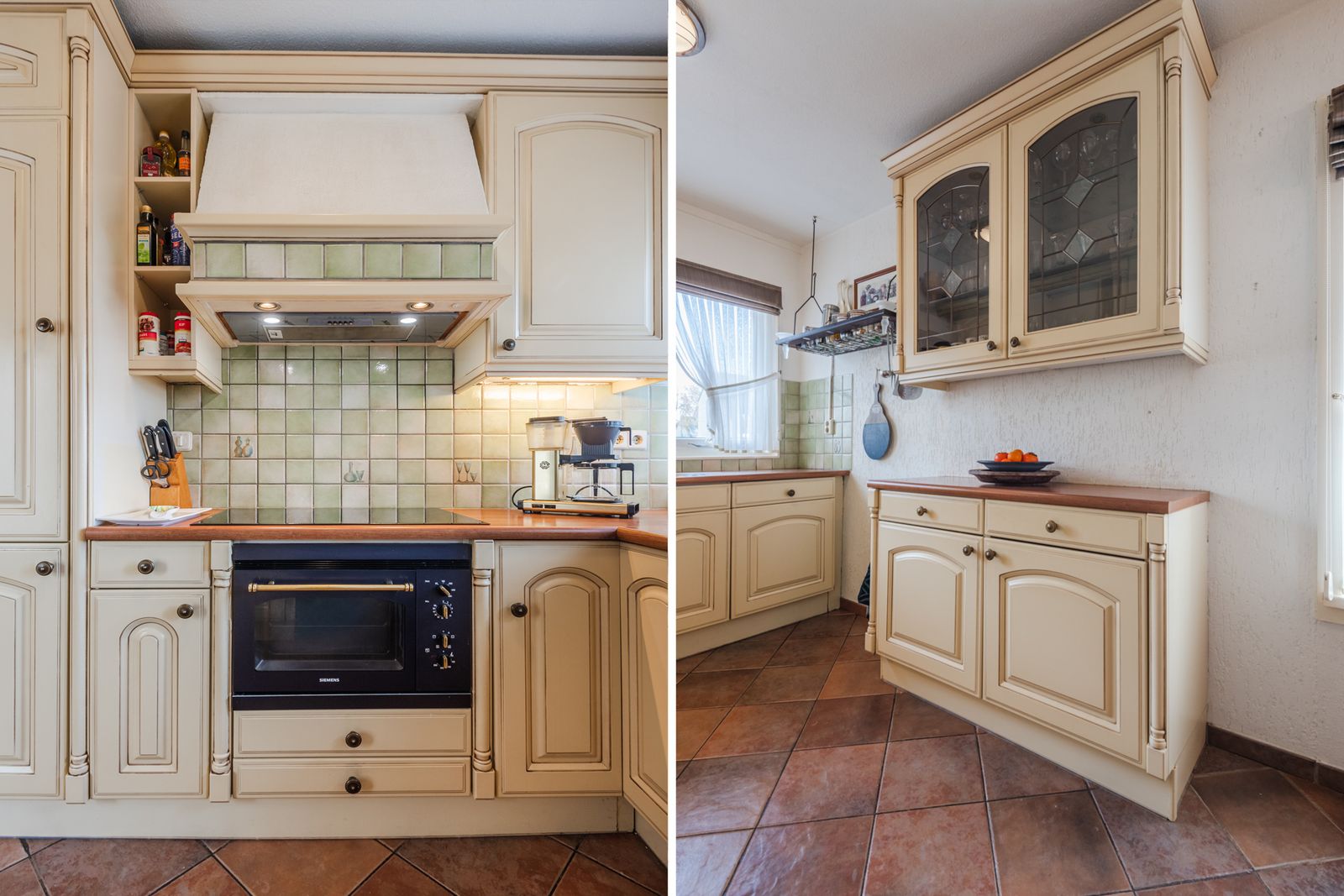 Entree met hal, meterkast en modern vrij hangend toilet. De woonkamer is tuingericht, beschikt over een voorraadkast en een deur naar de zonnige achtertuin. Voorin is de in landelijk gestijlde open keuken gesitueerd, met praktische L-vormige opstelling en voorzien van inductiekookplaat, afzuigkap, vaatwasser (allen uit 2022), combi oven-magnetron, koelkast en vriezer . De begane grond is afgewerkt met een plavuizenvloer (met vloerverwarming) en pleisterwerk op de wanden.