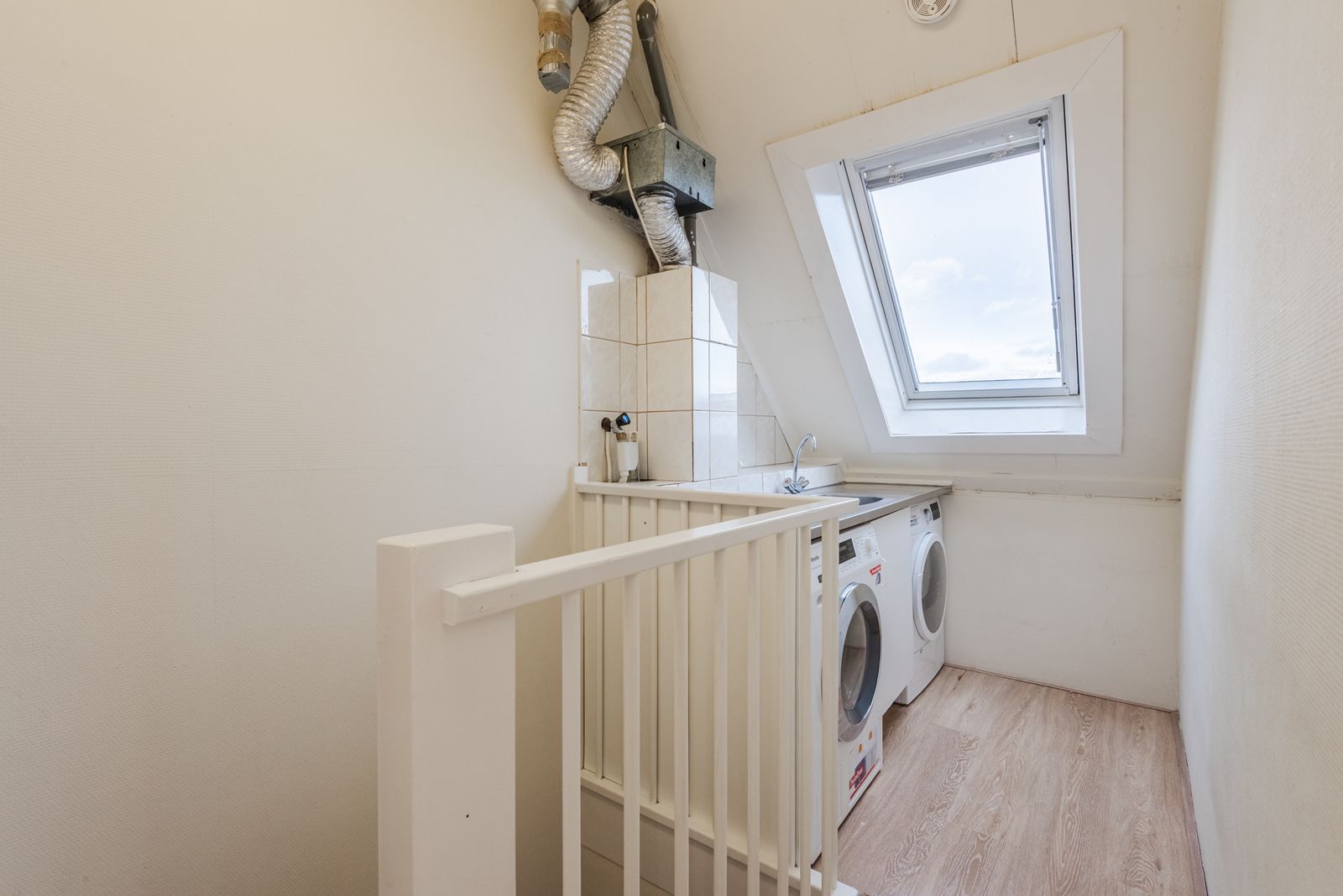Overloop met wasmachineaansluiting en toegang tot een vierde slaapkamer. Net zoals in de rest van het huis is hier dezelfde moderne vloerafwerking en wandafwerking toegepast. Door de grote van het dakkapel, is deze 4e kamer enorm ruim.