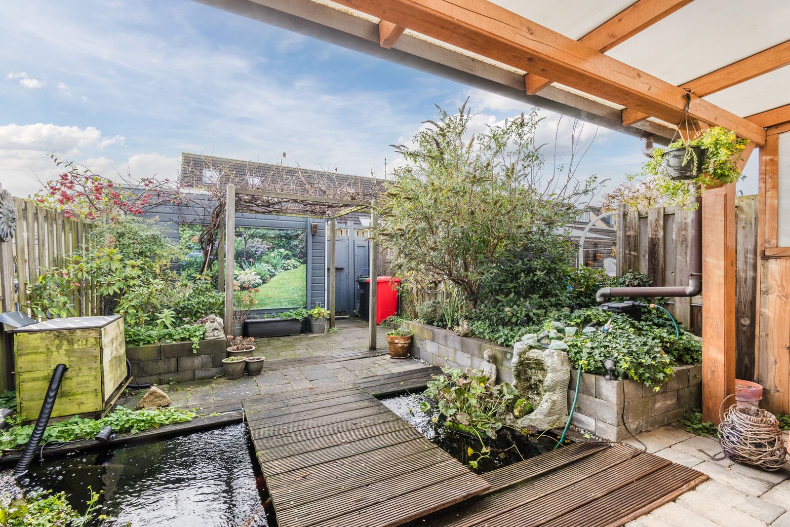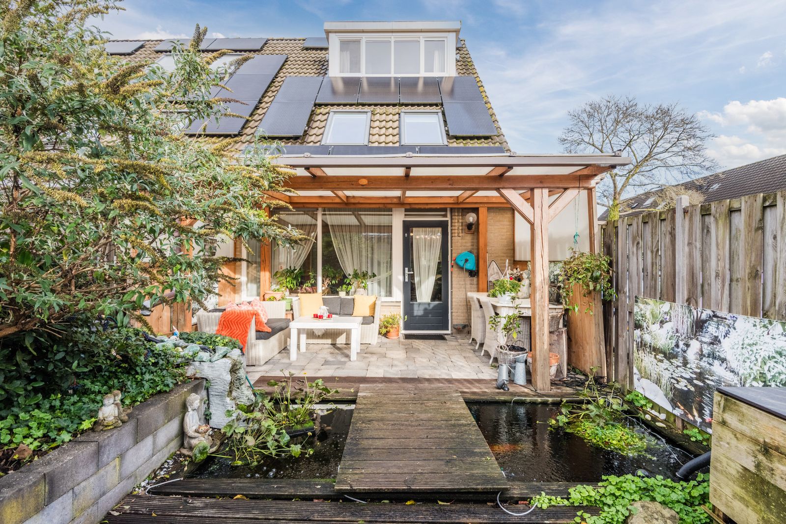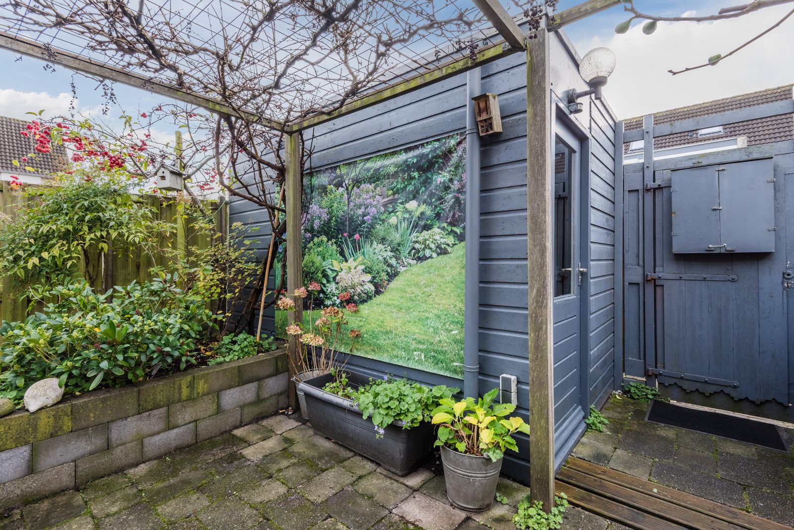 De achtertuin ligt gunstig en heeft door de hoekligging extra ruimte en privacy. In combinatie met de houten veranda biedt dit veel comfort. Achterin staat een berging van circa 6 m². Verder is er parkeergelegenheid direct voor de deur.