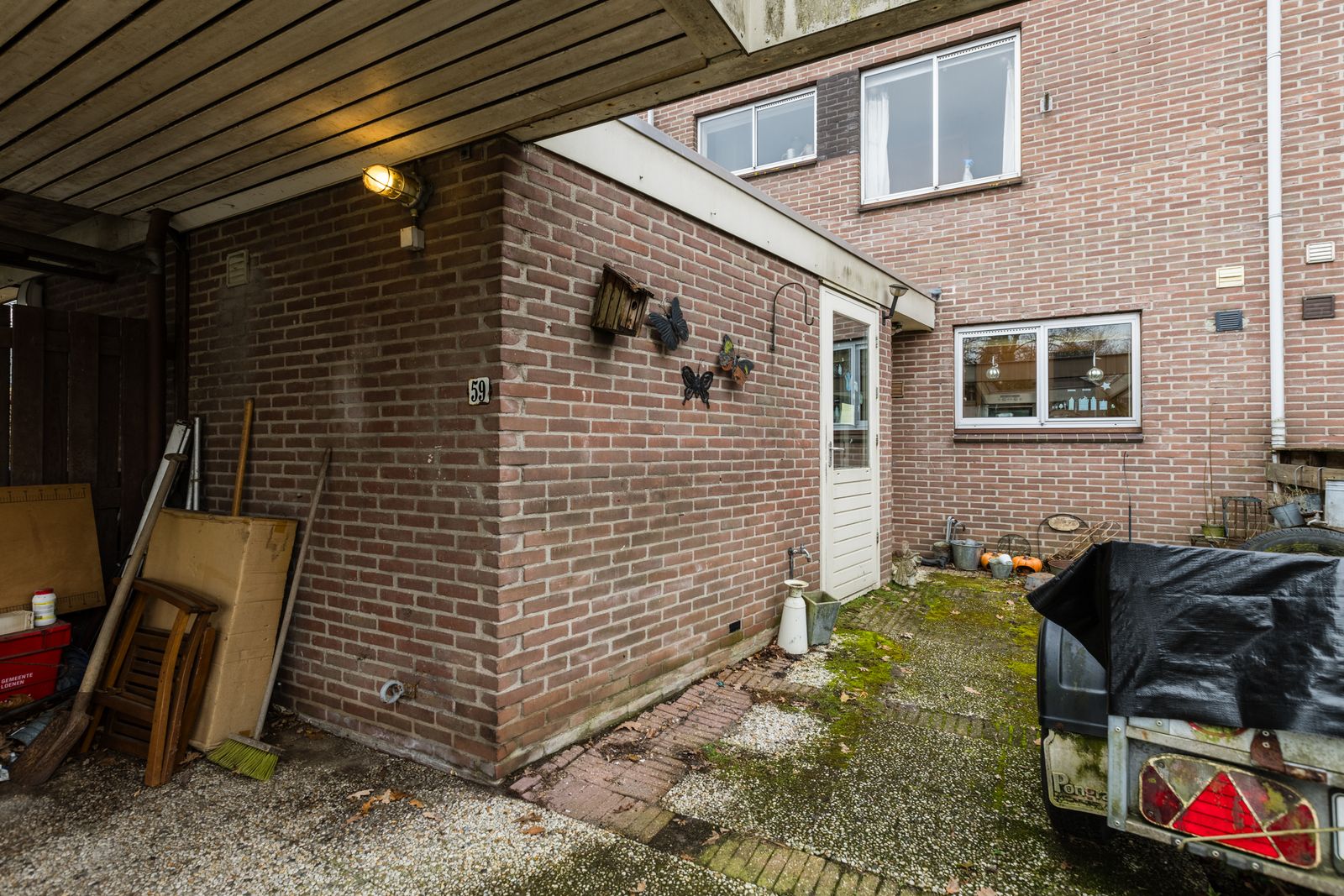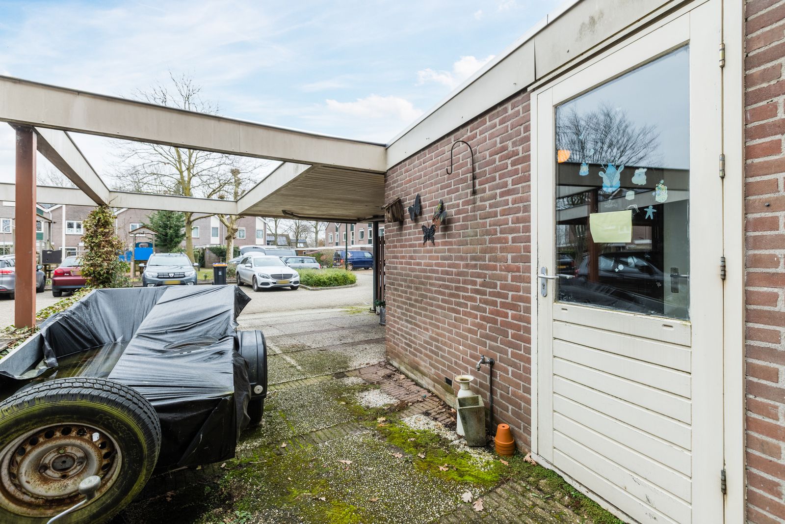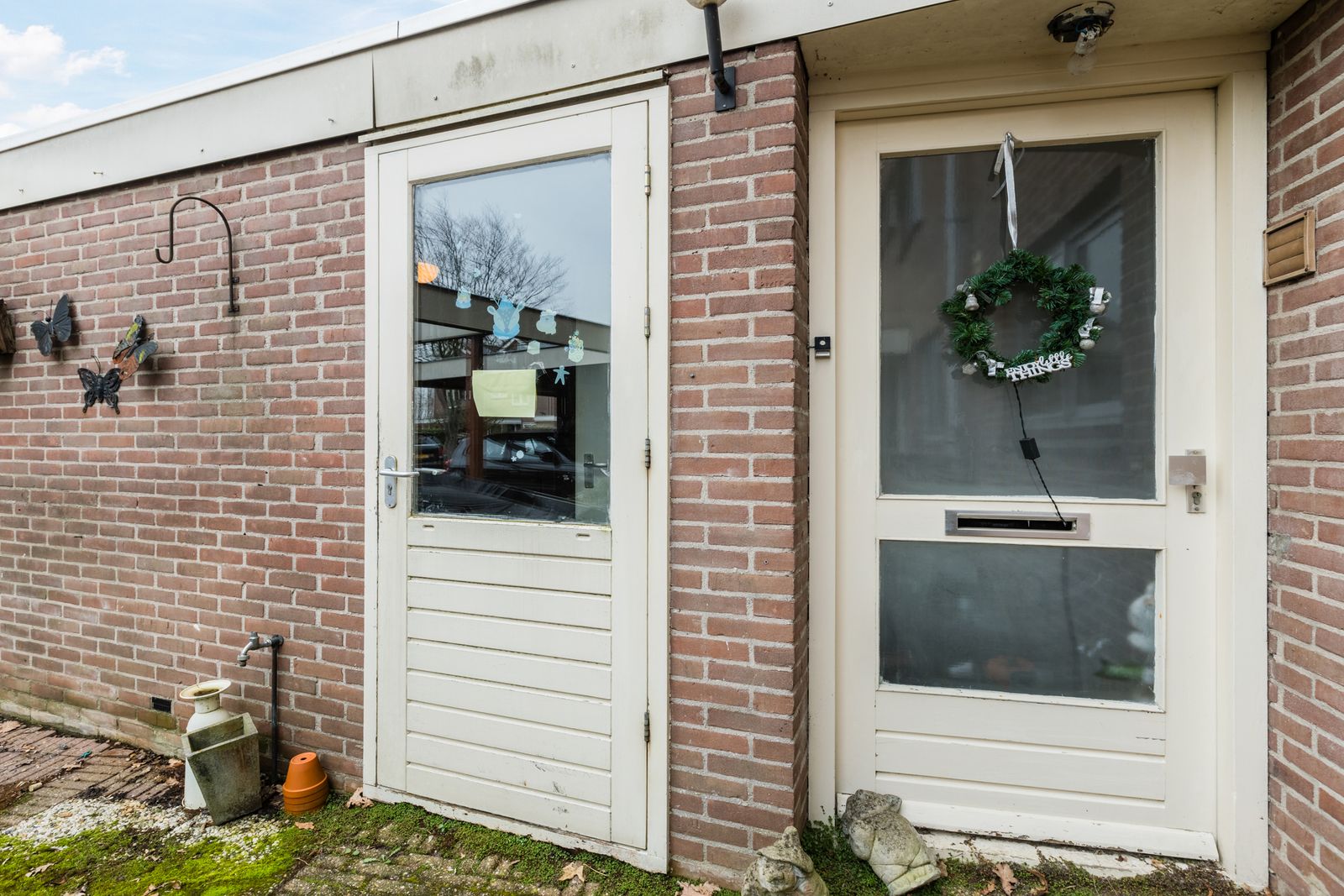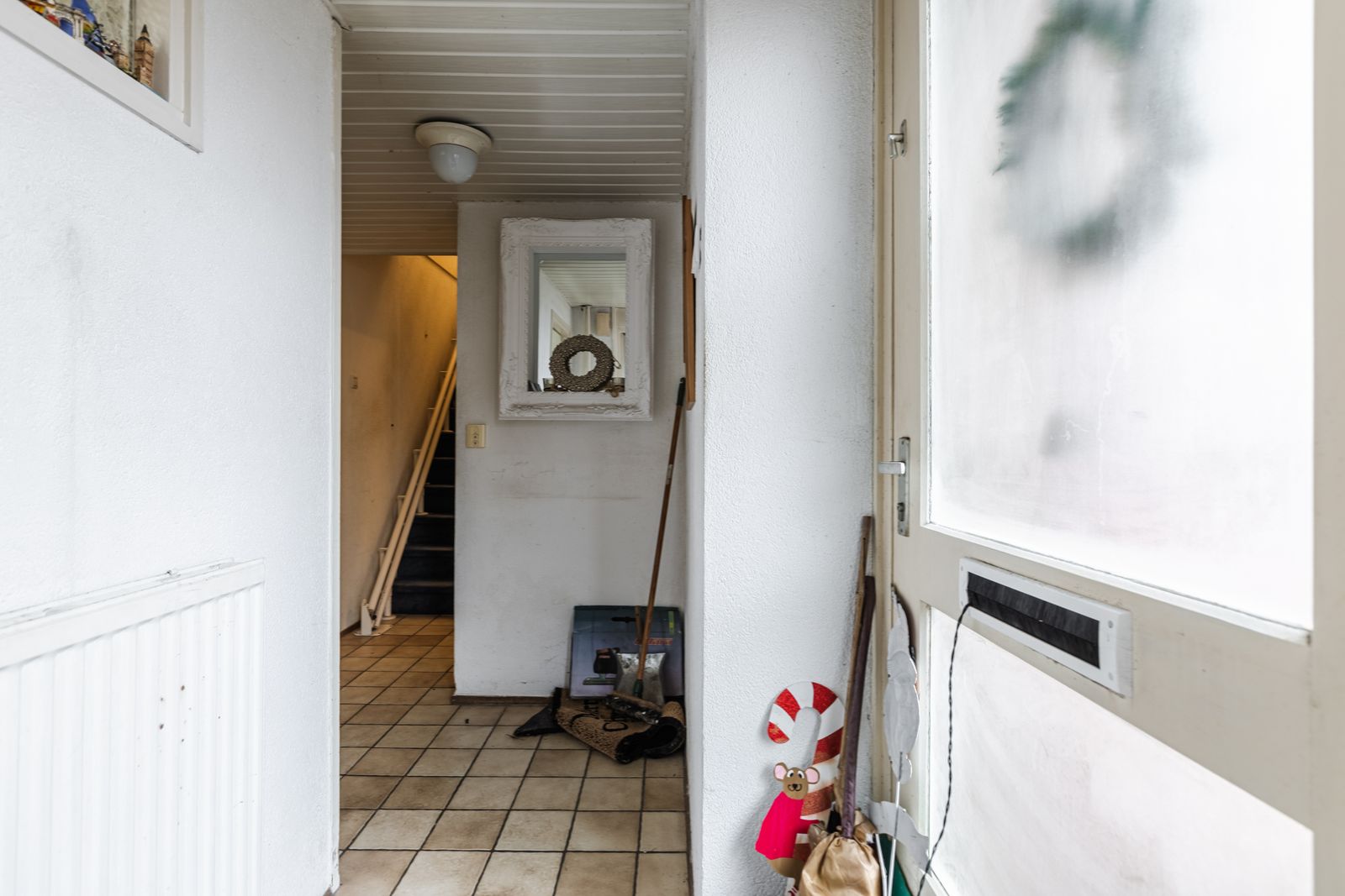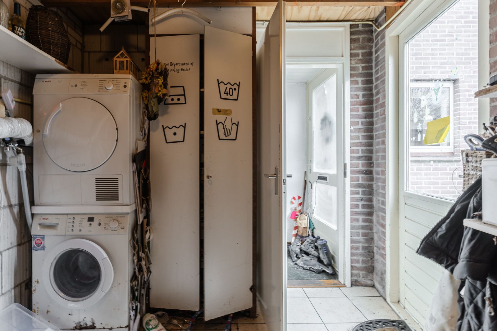 Aan de voorkant vindt u een ruime schuur waarin de meterkast zich bevindt en een aansluiting voor de wasmachine en droger. Daarnaast de hal, een toilet met fontein, ruime woonkamer met open haard en schuifpui die toegang geeft tot de zonnige achtertuin. Aan de voorzijde bevindt zich de halfopen keuken die is onder andere is voorzien van een houten blad, 5 pits kooktoestel, wasemkap, vaatwasser en er is ruimte voor een koelkast.