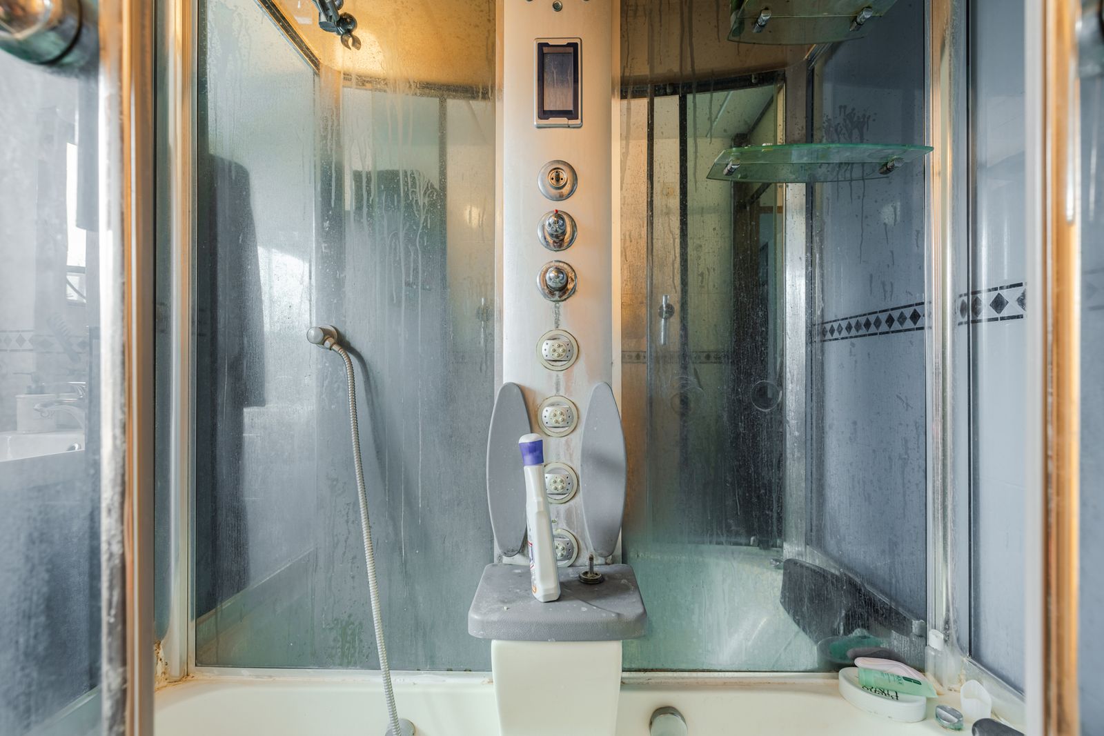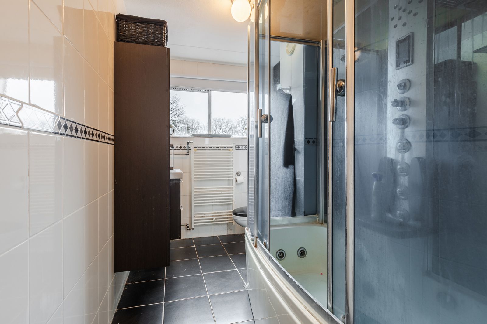Overloop, zeer ruime slaapkamer gelegen aan de achterzijde tweede slaapkamer aan de voorzijde gelegen, ruime badkamer voorzien van stoombad, wastafel en toilet.