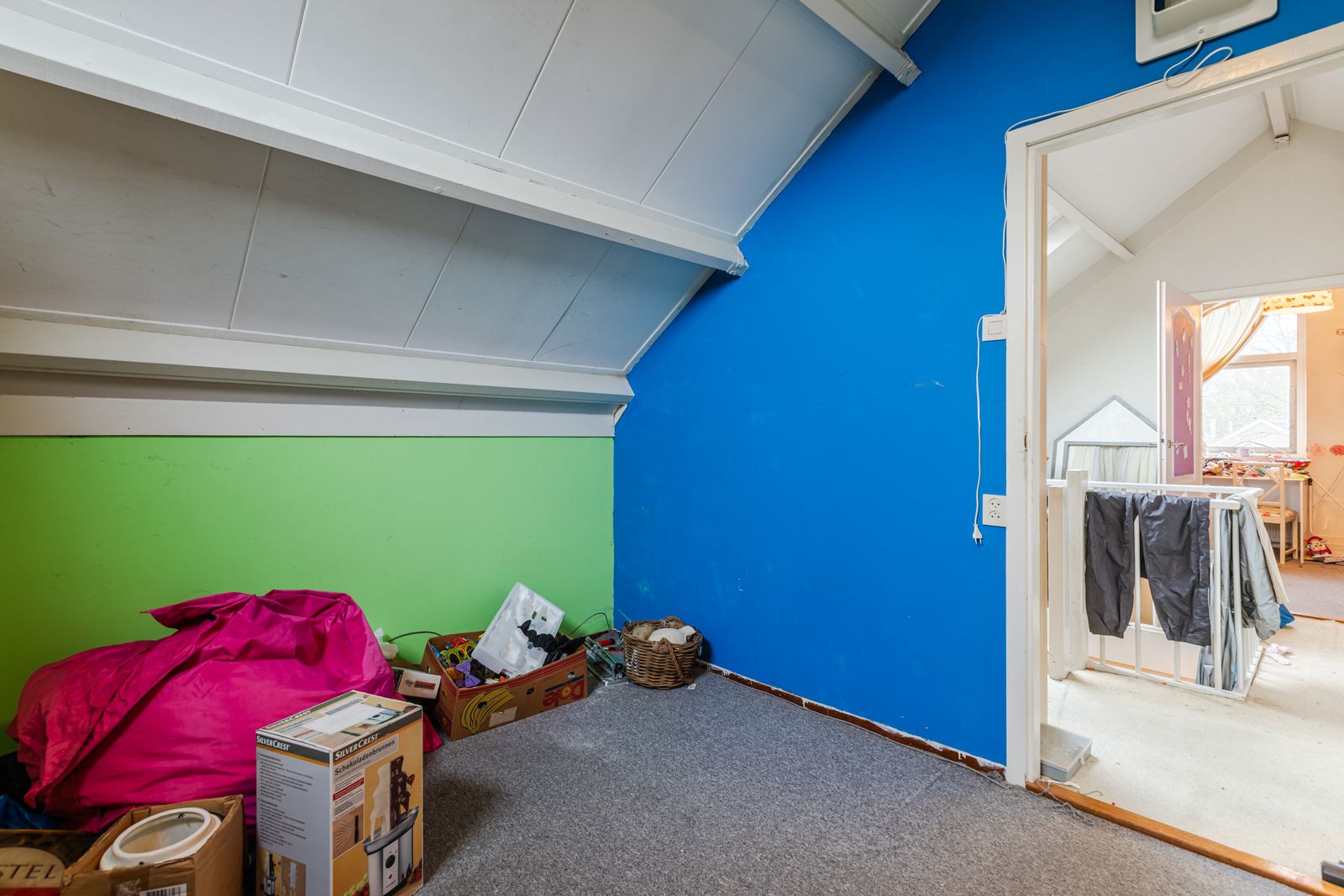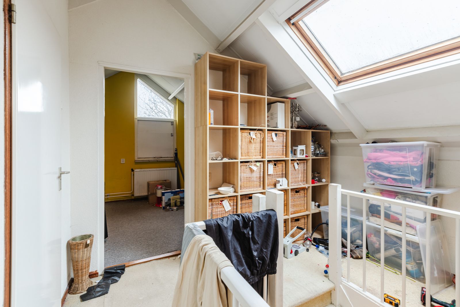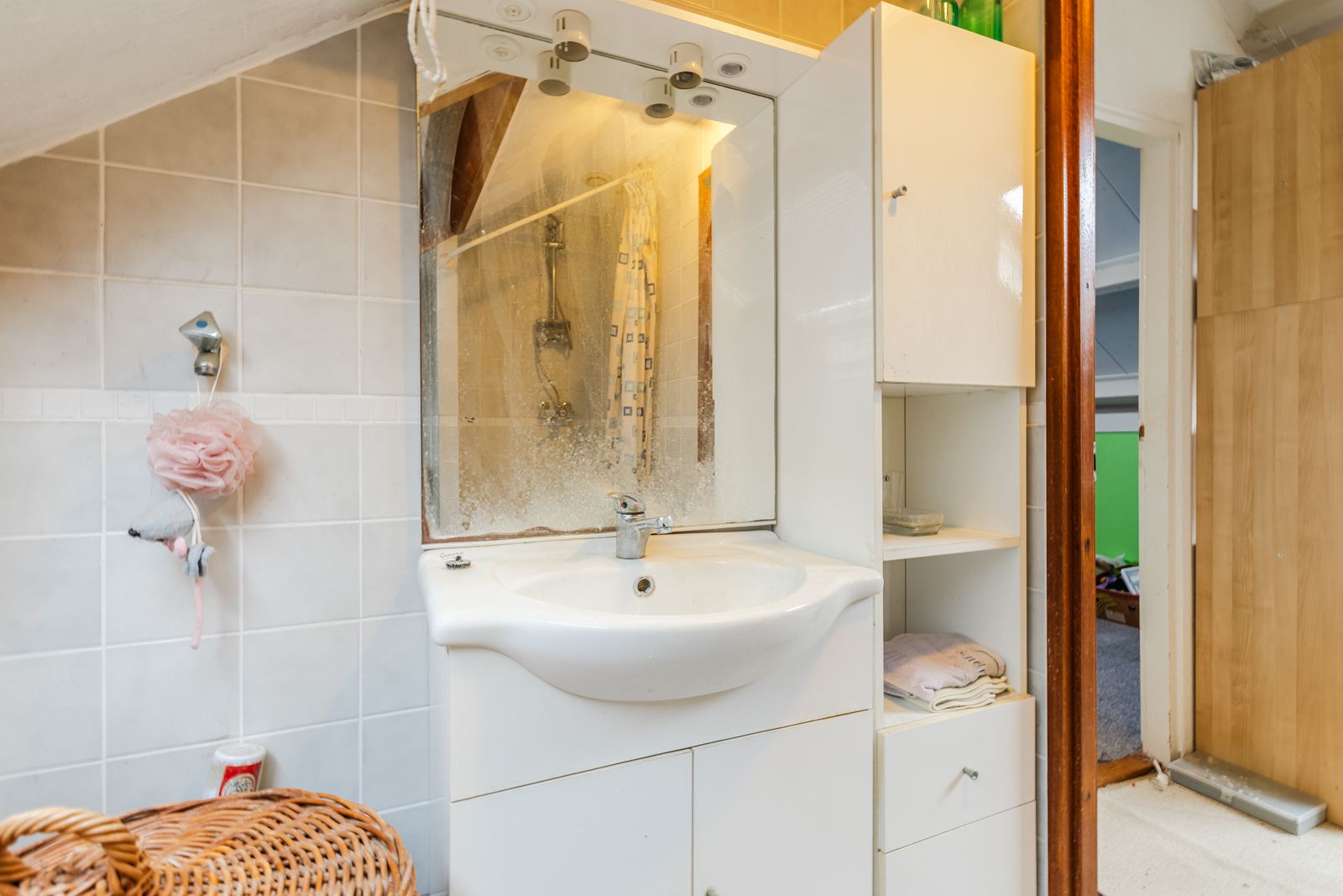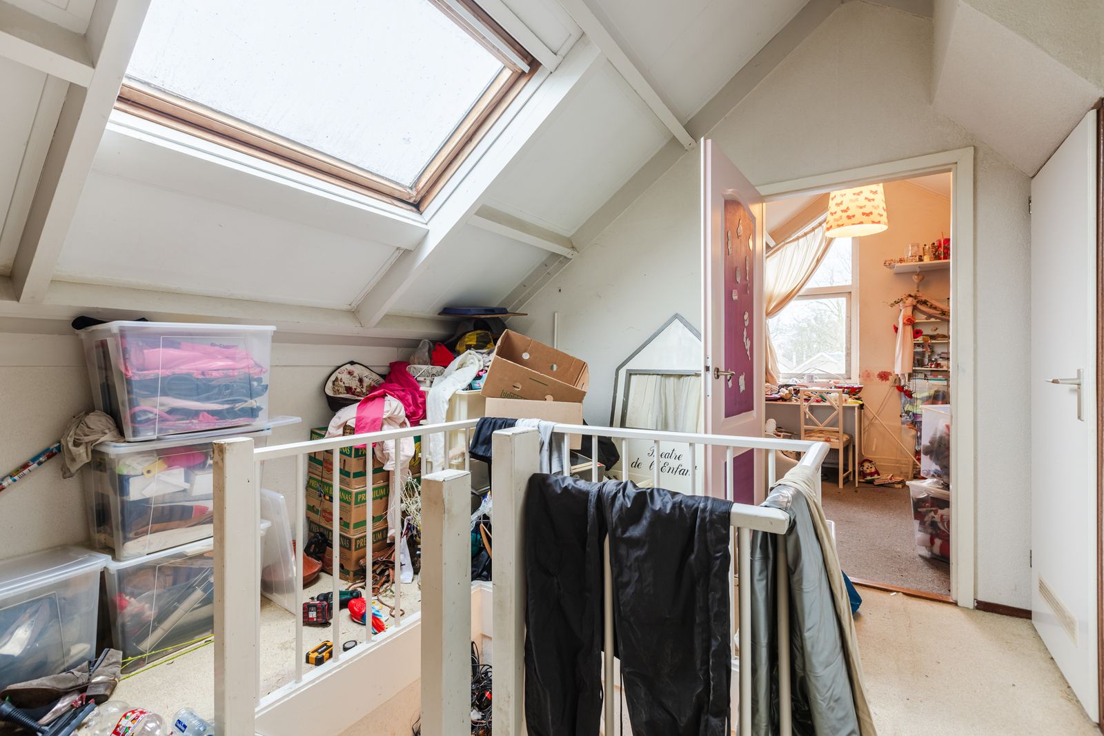 Via een vaste trap bereikt u het middendeel van de zolder waar een kleine ruimte voor de CV-ketel is een badkamer met douche, wastafel en toilet. De zolderverdieping heeft twee Velux dakramen. Op deze verdieping bevinden zich ook twee ruime slaapkamers.