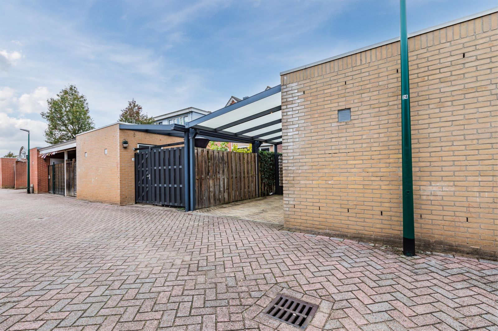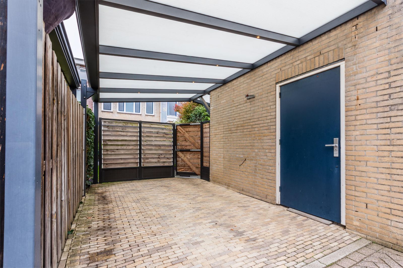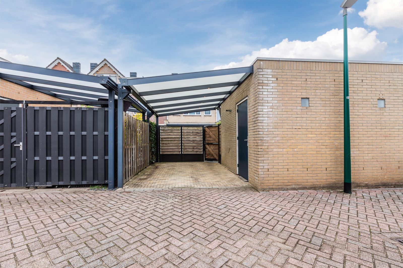 Achterin de tuin bevindt zich de berging en de privéparkeerplaats met carport. Zo parkeer je altijd direct bij huis, droog en veilig.