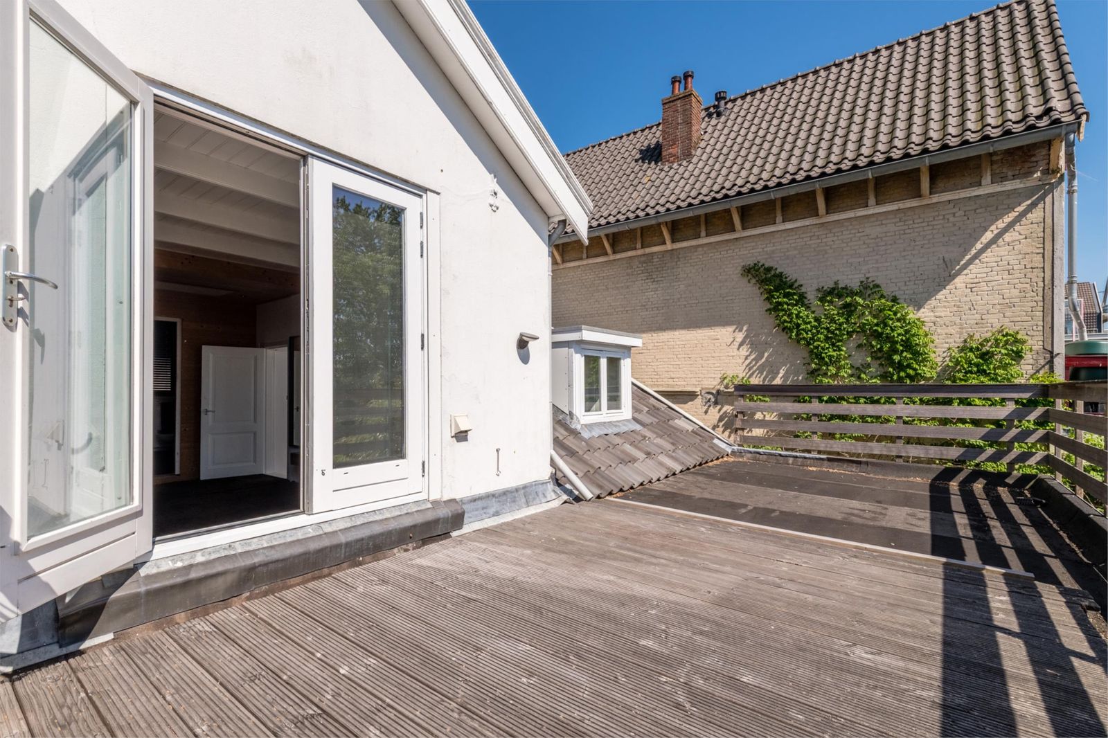 Het grote dakterras is gelegen op het zuiden en heeft een geweldig uitzicht over het natuurgebied.
