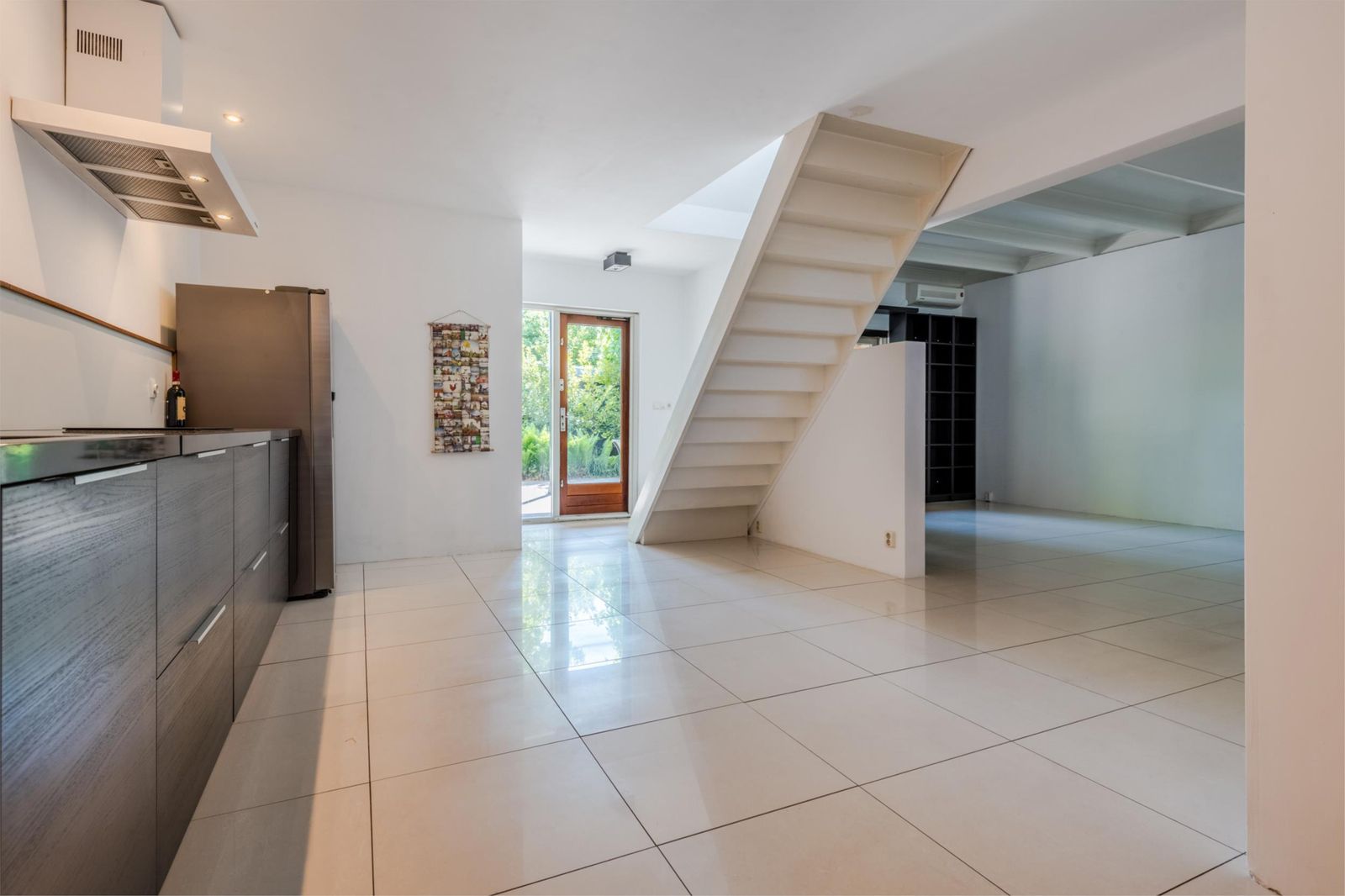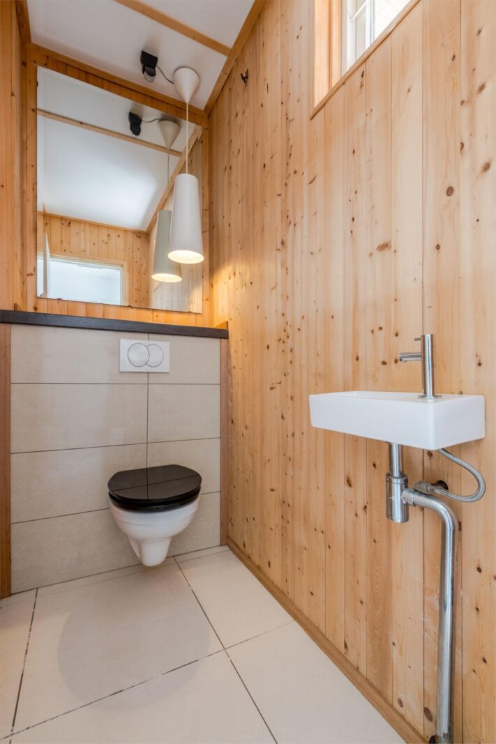 Hier bevindt zich ook een pantry met wasbak, moderne wasmachine en wasdroger met warmtepomp.