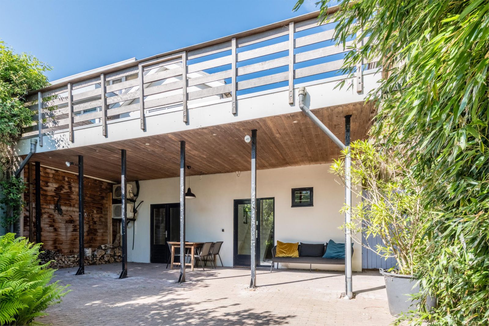 - De gehele voorzijde is voorzien van houten jaloezieën.