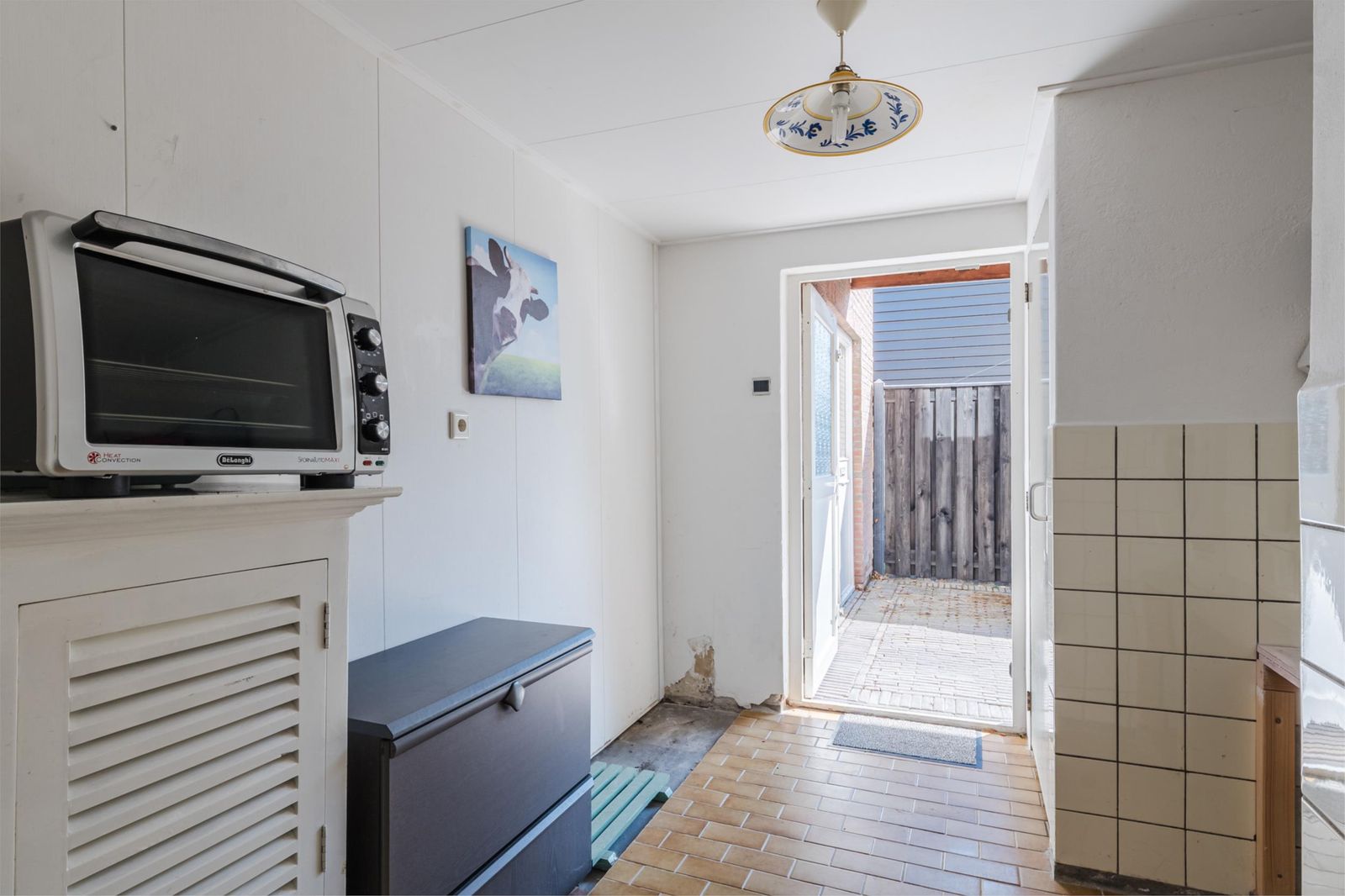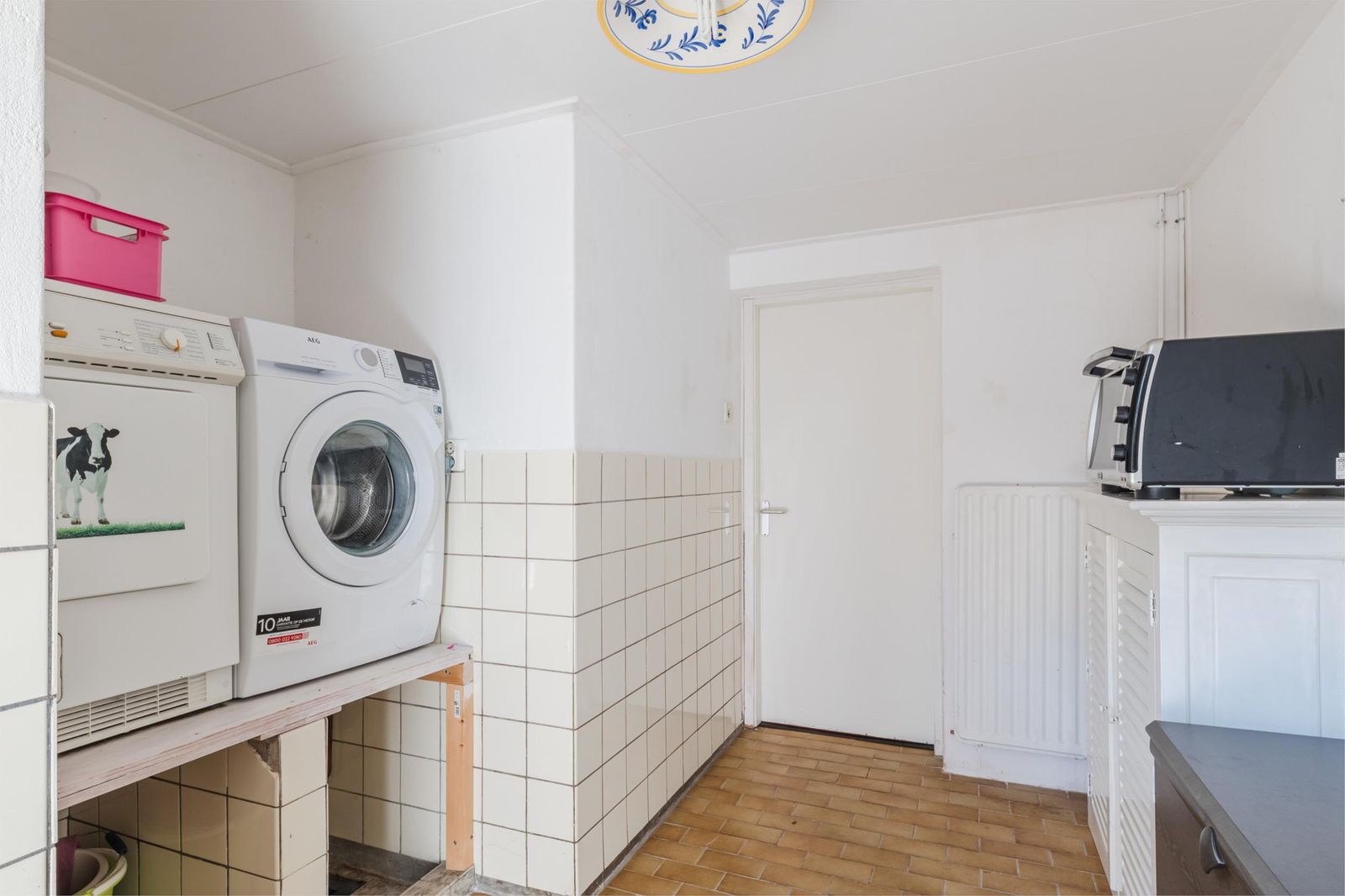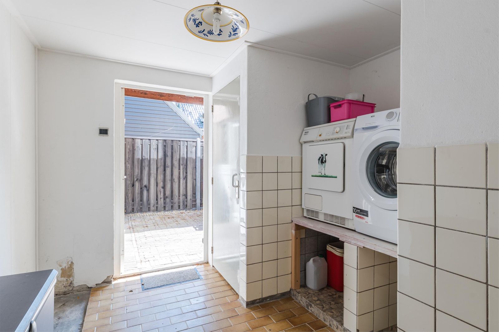 In de bijkeuken vind je de wasmachineaansluiting en de achterdeur naar het terras. Ook is hier de toegang tot een ruime sta hoge kelder, zeer geschikt als extra opslag of provisieruimte.