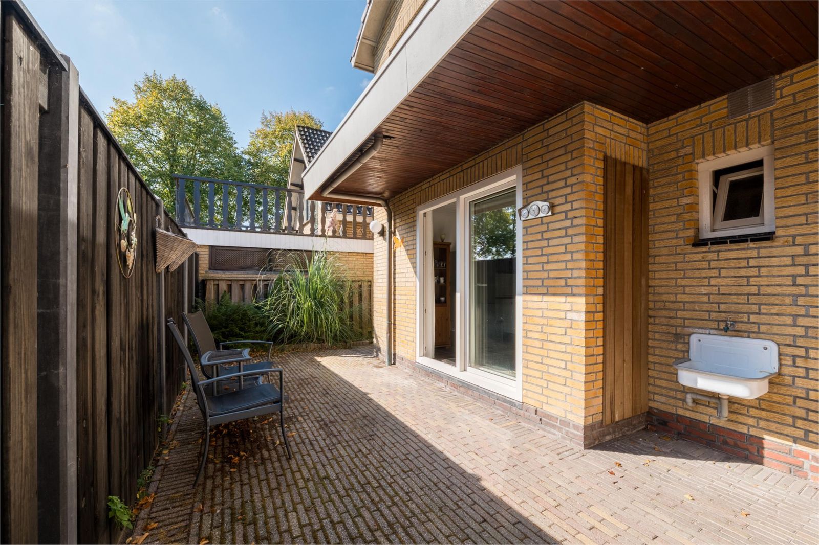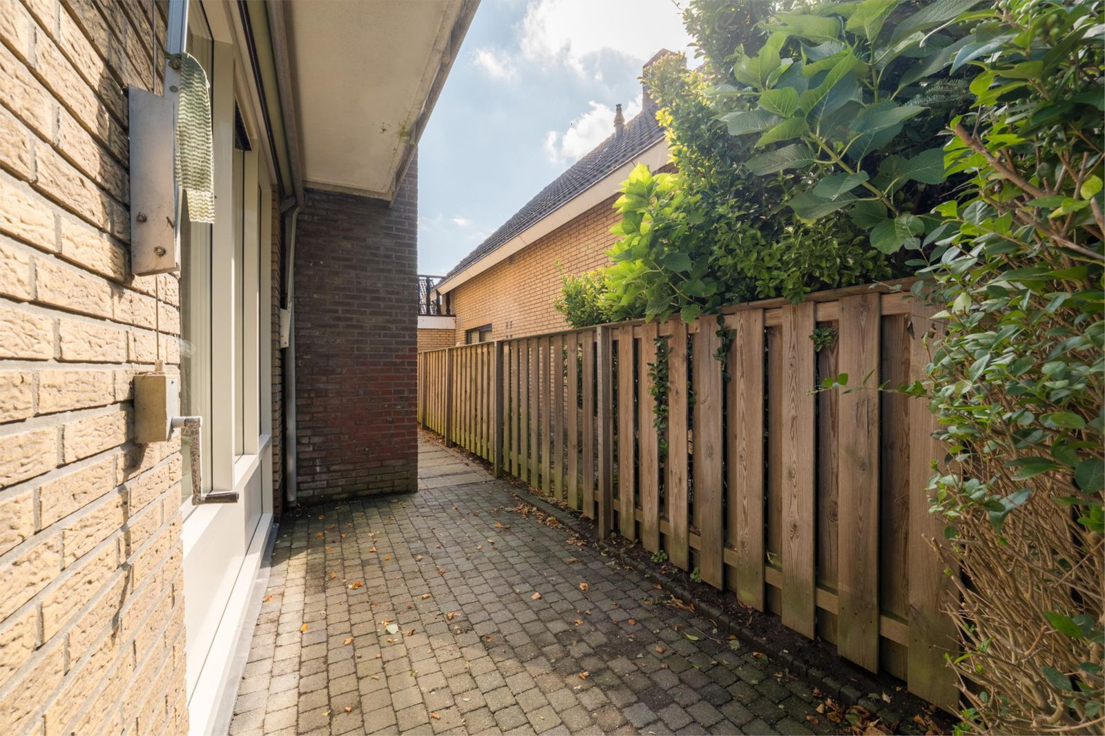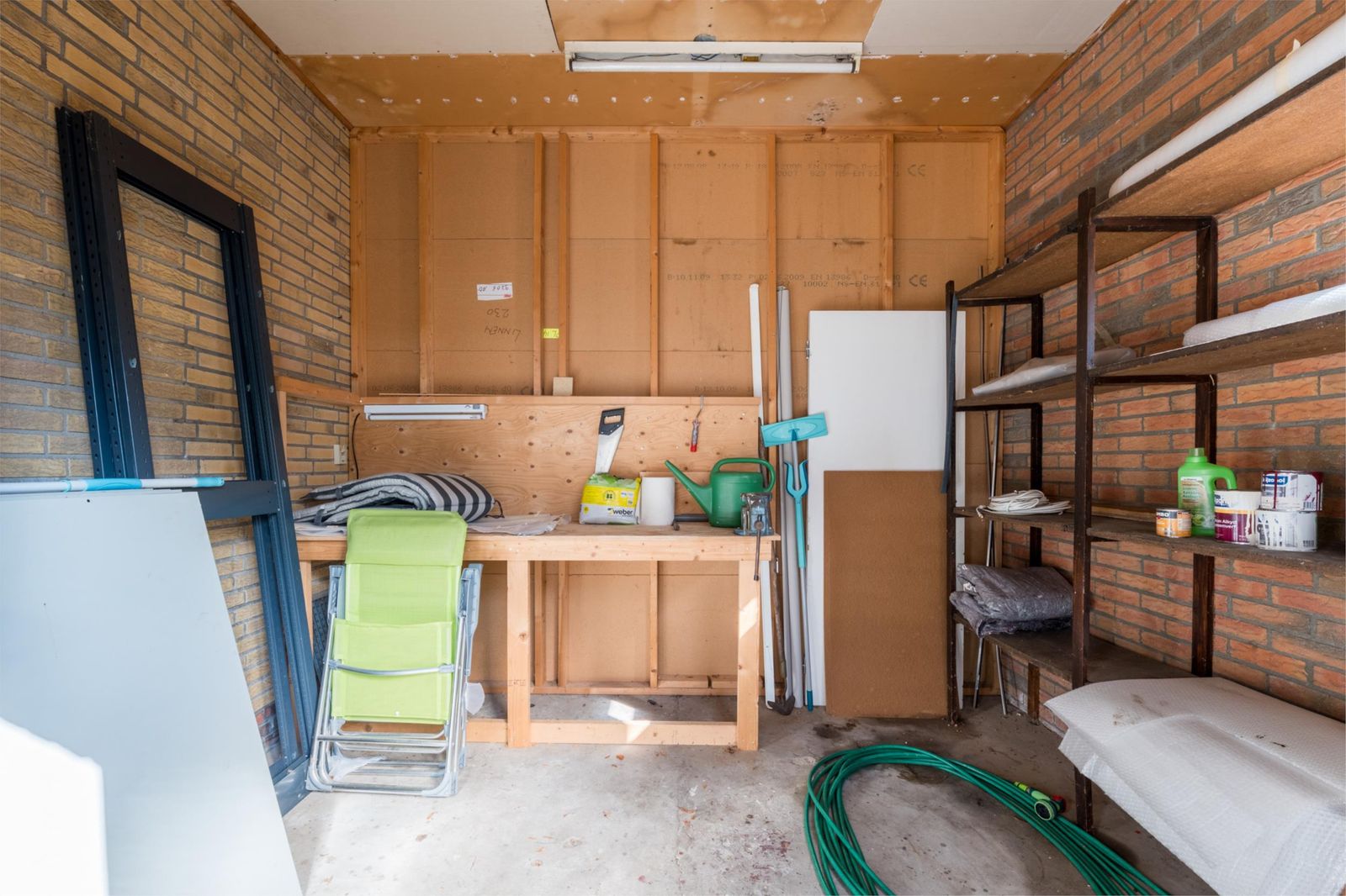 Aan de achterzijde vind je een externe berging van circa 3 x 3,4 meter, handig voor gereedschap, fietsen of te gebruiken als kleine werkruimte. De tuin is grotendeels betegeld en daardoor onderhoudsarm. Aan de voorzijde is een siertuin aangelegd en is er ruimte om op eigen terrein te parkeren.