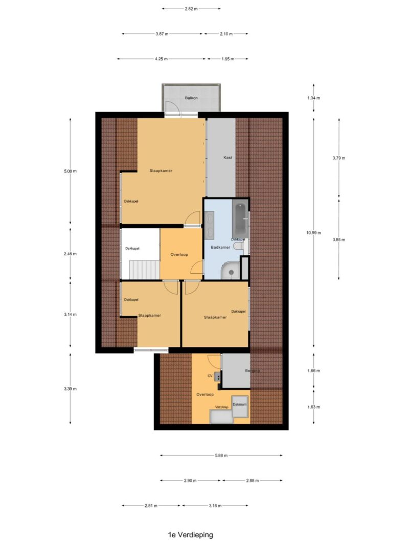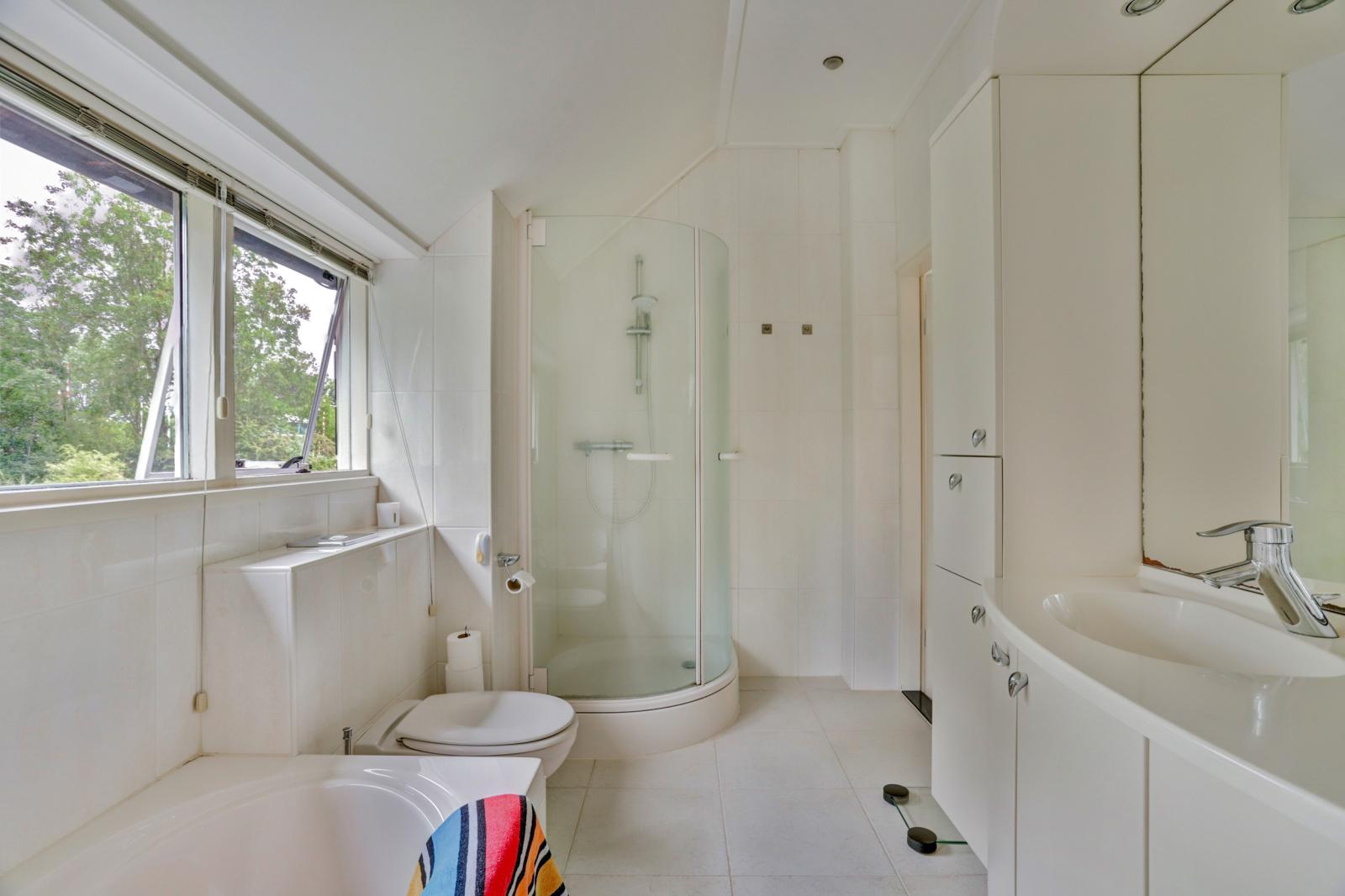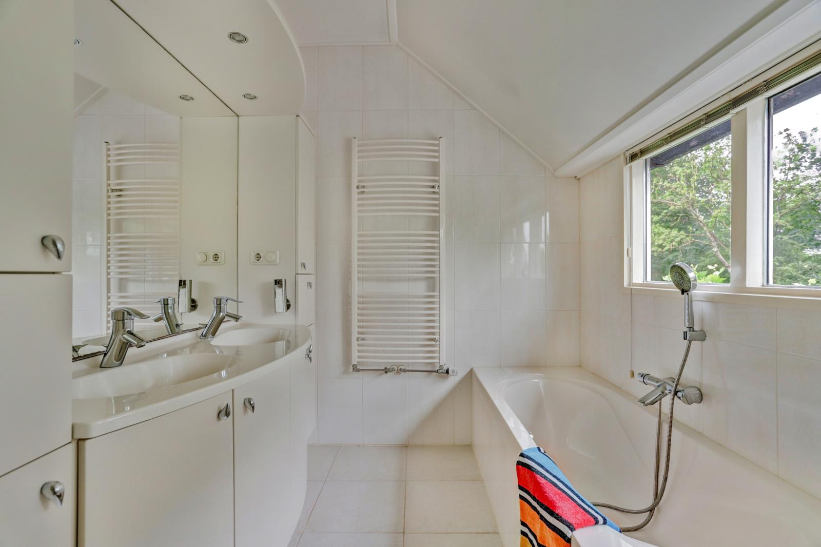 De bovenverdieping is opnieuw ingedeeld, waardoor er nu een ruime overloop met vide is ontstaan. Hier bevinden zich drie slaapkamers, een zeer royale ouderslaapkamer met kastruimte en balkon, en een mooie badkamer met ligbad, aparte douche, dubbele wastafel en toilet.